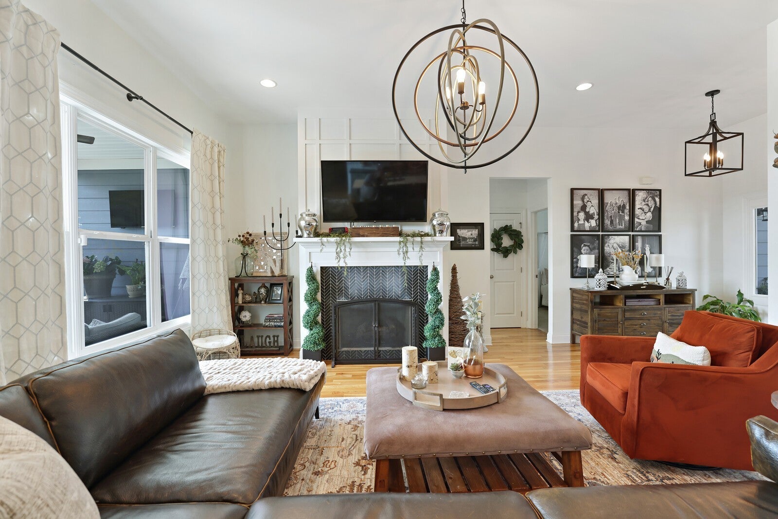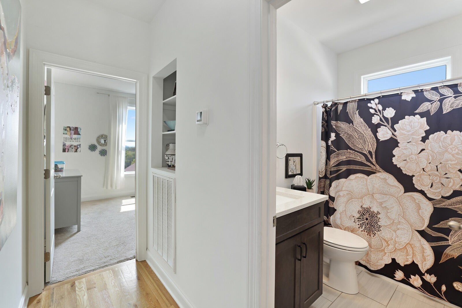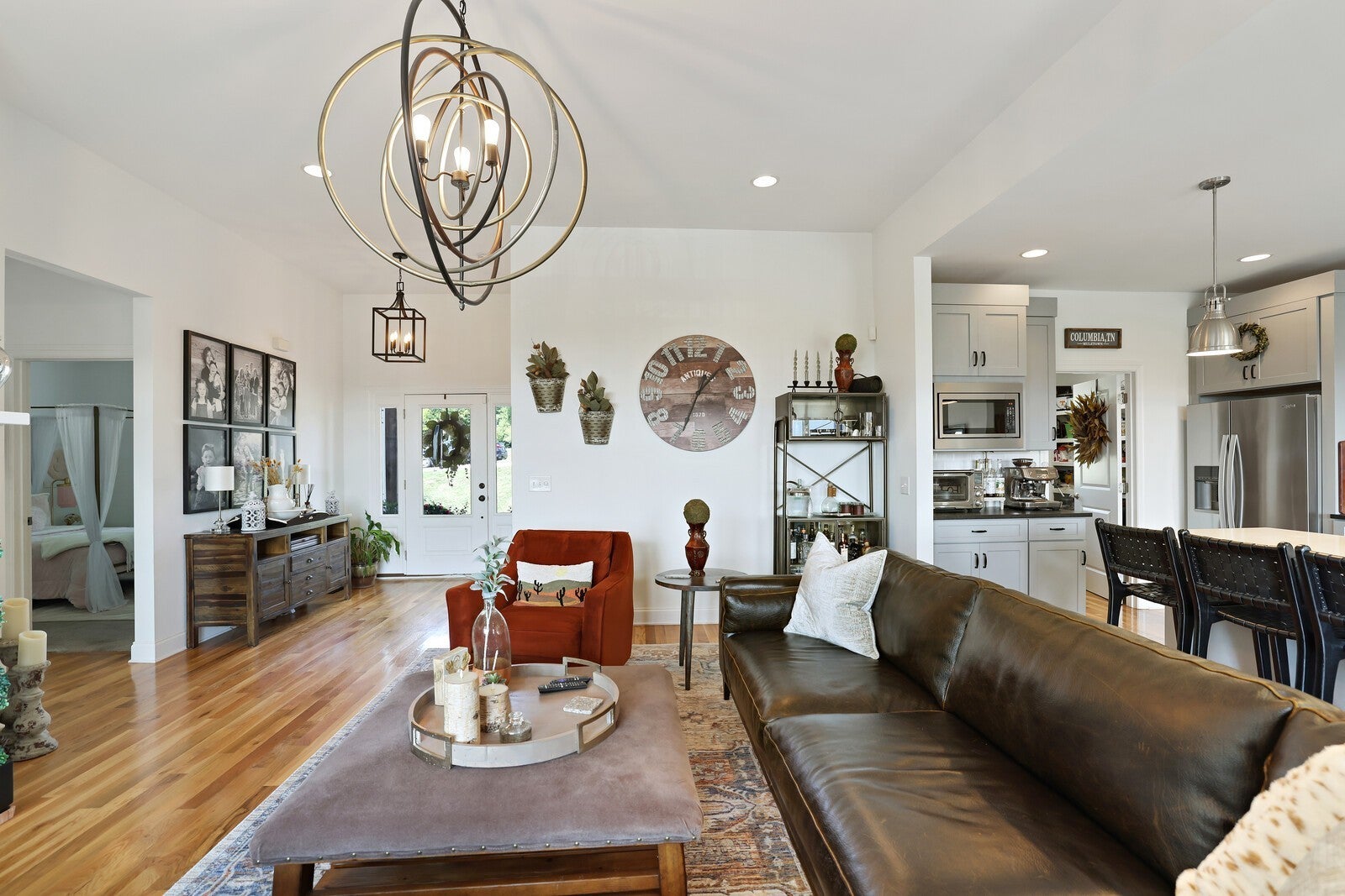 Welcome to this stunning 4-bedroom, 3-bath home offering 2,350 square feet of beautifully designed living space on nearly half an acre. Step inside to gleaming hardwood floors and an inviting open-concept living area filled with natural light, complete with a cozy fireplace for relaxing evenings. The kitchen is a dream, showcasing stylish gray cabinetry, a subway tile backsplash, a large island, and a spacious pantry with custom built-in storage. The attached dining area is accented with a chic black shiplap wall, adding both charm and character. The sunny primary suite features a wood sliding barn door leading to a spa-like en-suite with a soaking tub, glass shower, and generous walk-in closet. Comfortable guest bedrooms provide plenty of space for family or visitors, while the upstairs bonus room with its own en-suite bath offers versatility for a private guest retreat, office, or playroom. Step outside to your personal oasis, an expansive deck overlooking the fenced-in backyard and sparkling saltwater pool, added by the seller. Perfect for entertaining or relaxing, this outdoor retreat is ideal for warm Tennessee days. With its thoughtful upgrades, modern finishes, and prime location, this home has it all. Up to 1% lender credit on the loan amount when buyer uses Seller's Preferred Lender.