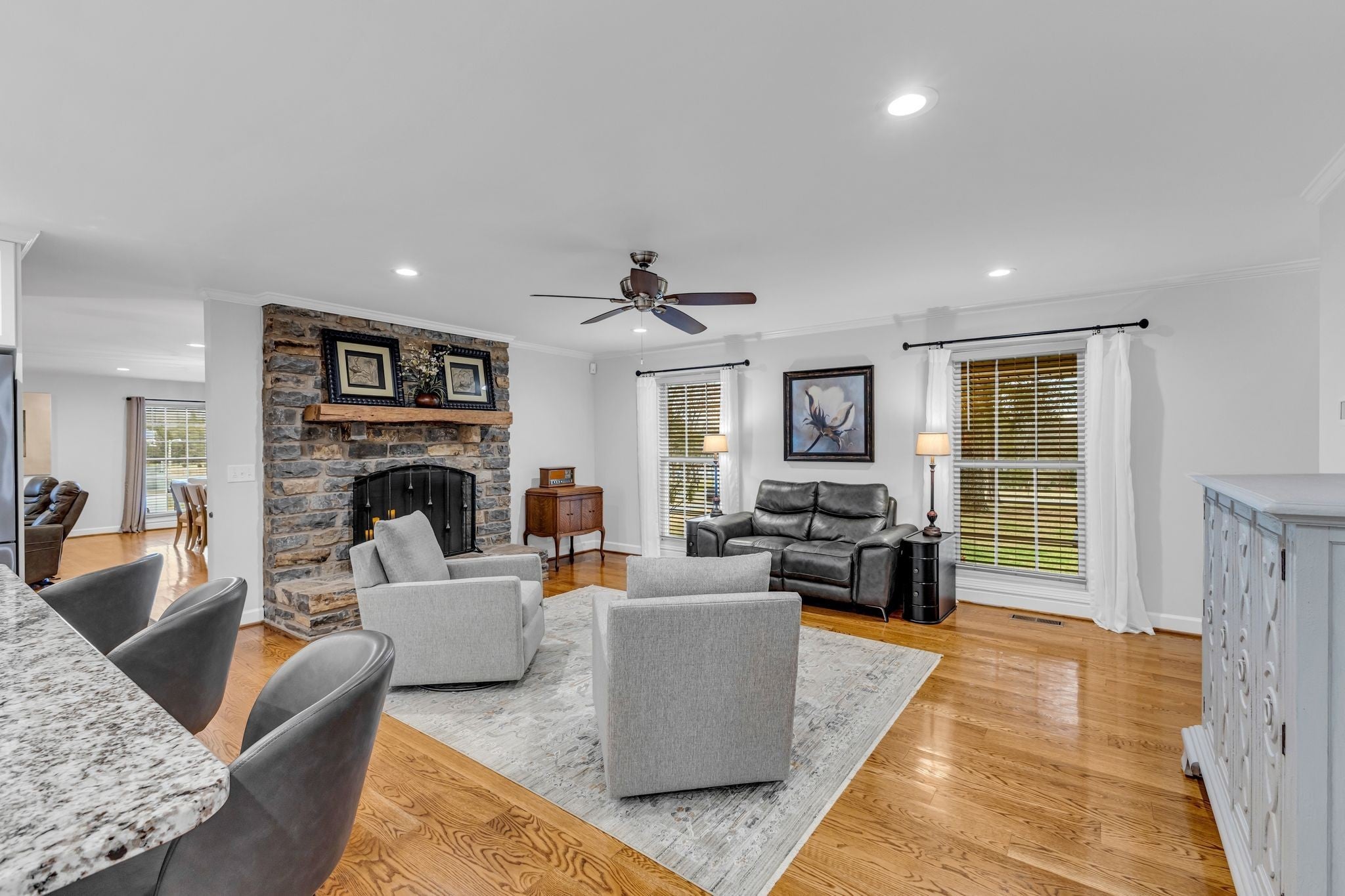 Set on 2.46 private acres in Nolensville city limits, this thoughtfully updated home blends timeless craftsmanship with modern comfort — all within the highly sought-after Williamson County school district. NO HOA! Inside, you’ll find custom kitchen cabinetry, an oversized island designed for gathering, and exceptional storage throughout. The home has been meticulously maintained with major system upgrades including a new HVAC system with all new ductwork, encapsulated crawl space, tankless water heater, main water supply line PEX plumbing, freshly painted interior all throughout, newer roof (2020), and new windows (2019) — delivering both peace of mind and long-term efficiency. The large primary ensuite with vaulted ceilings creates a true private retreat, offering an open, airy feel and generous space designed for comfort and relaxation — all complemented by a beautiful view of the expansive backyard, bringing the outdoors into your everyday living experience. Step outside and experience what truly sets this property apart — a stunning three-level TimberTech composite deck with a screened-in porch just off the kitchen, ideal for entertaining, relaxing, and enjoying quiet Tennessee evenings. The property also includes a metal barn in the back of the property which includes a conditioned workshop, providing flexible space for storage, hobbies, or future projects. Preferred Lender is offering a 1% lower rate for the first year (some restrictions apply so please inquire for full details).
