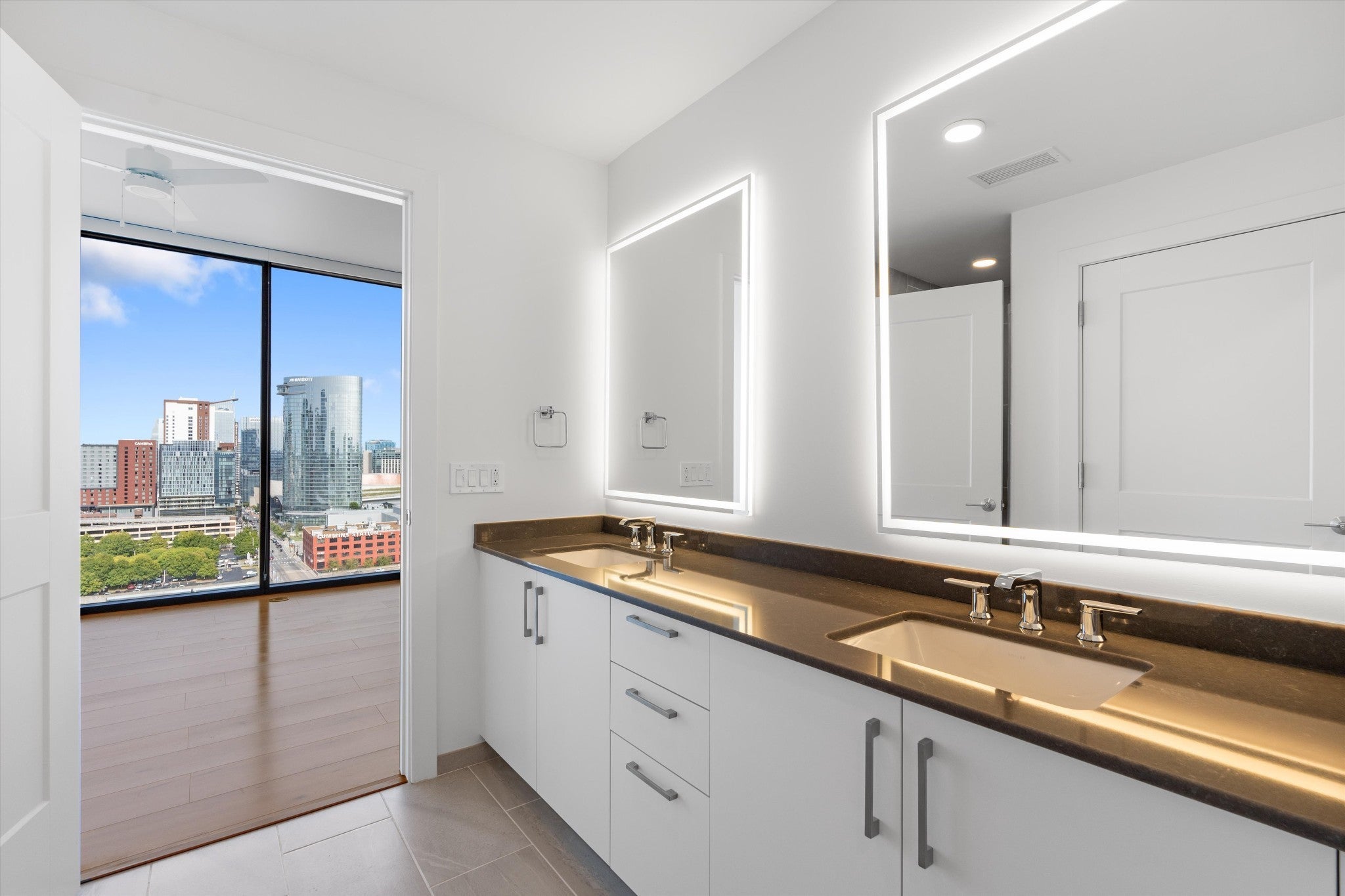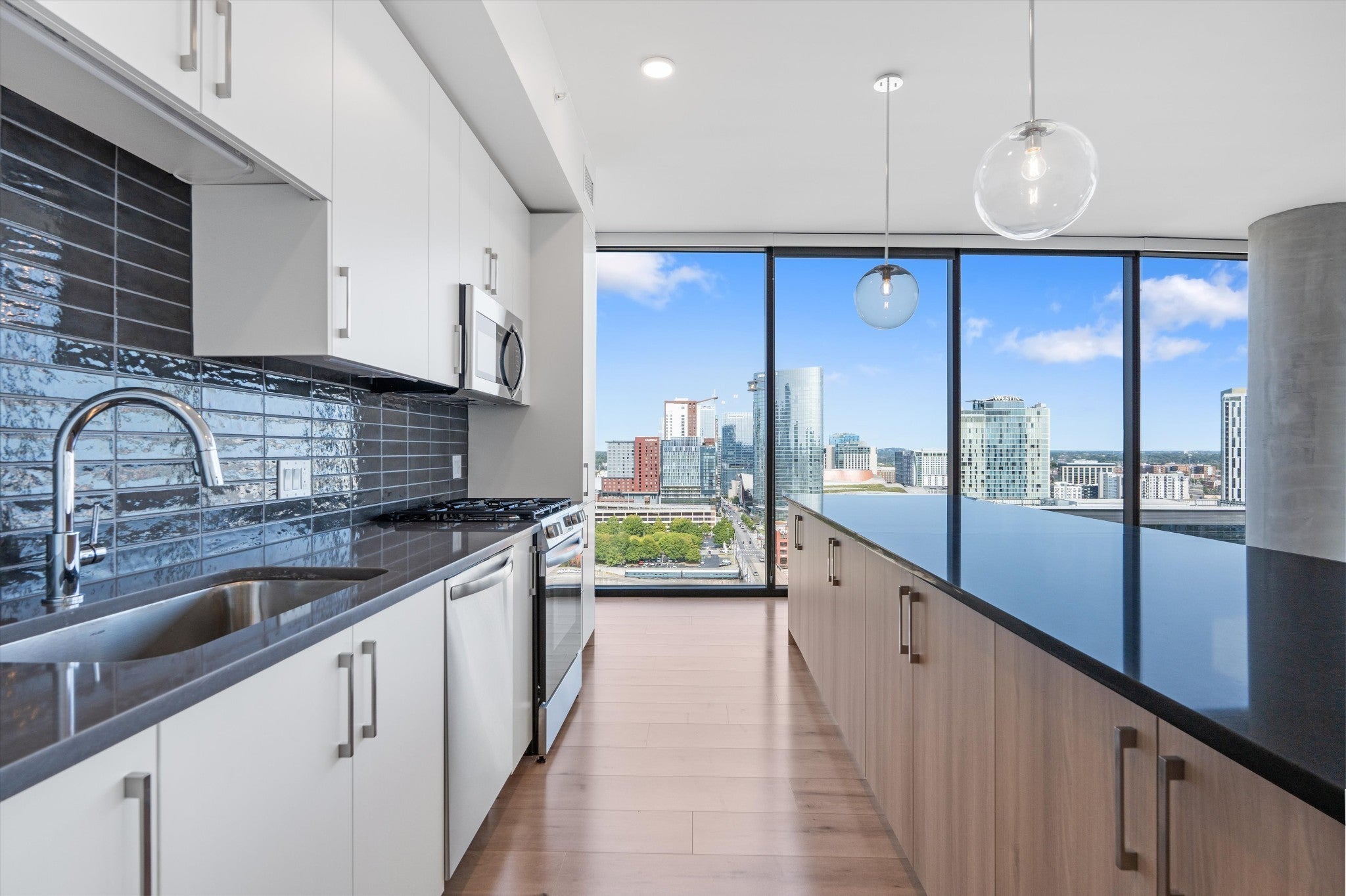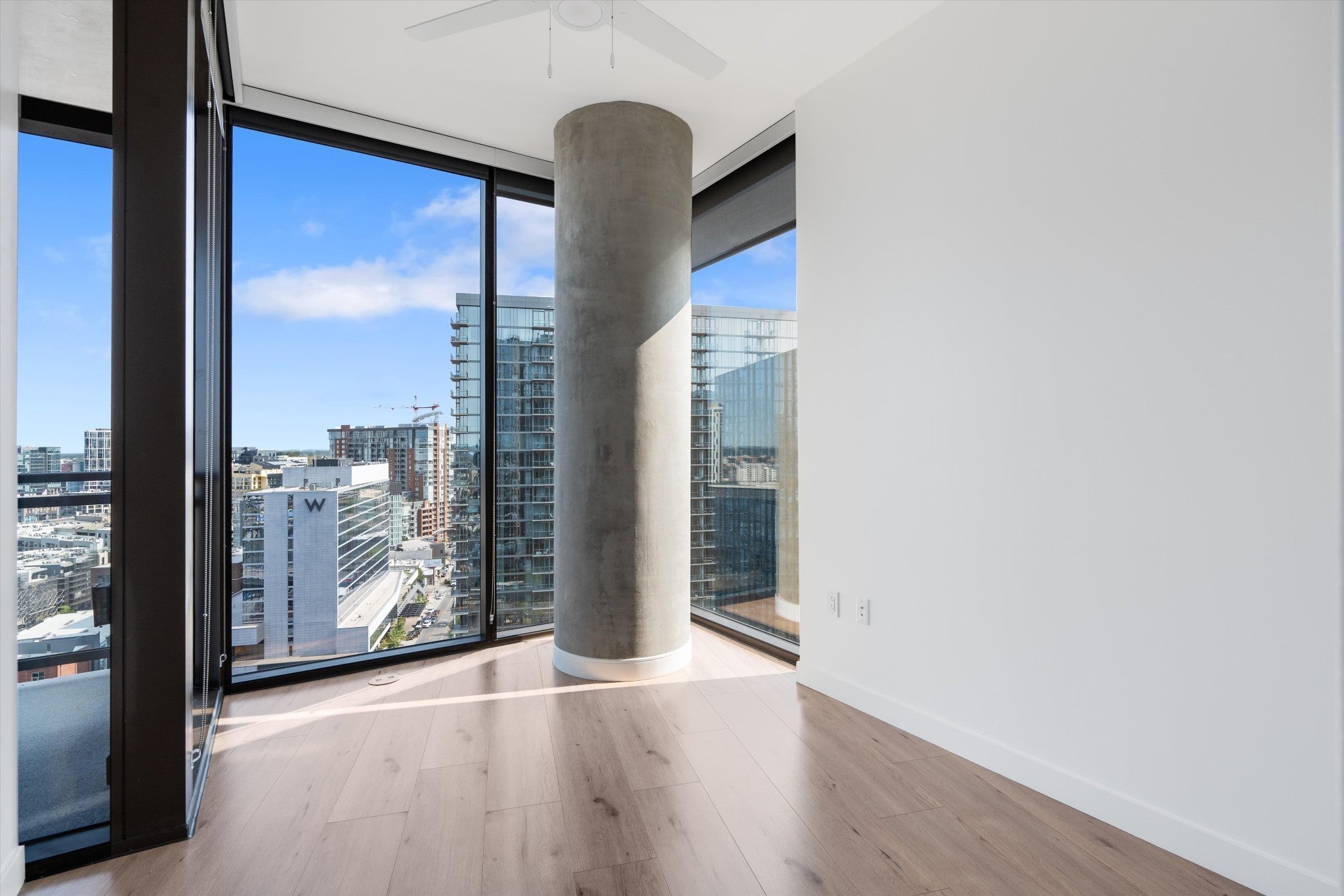 This is a rare 2 bedroom PLUS DEN floor plan at Pullman. The den could be used as a bedroom. Be one of the first to live in this brand new high rise in the center of the city! The amenities are next level, including rooftop pool, owners lounge, co-working space with ability to reserve a rooftop office with stunning views at no charge. Pickleball courts, workout facility, grilling area and jumbotron to watch games, all free for you to use! Concierge is at the front desk 24/7, with secure access from garage and entry doors. The cafe in lobby offers coffee and food at your fingertips, one parking space included with easy visitor parking in attached garage.