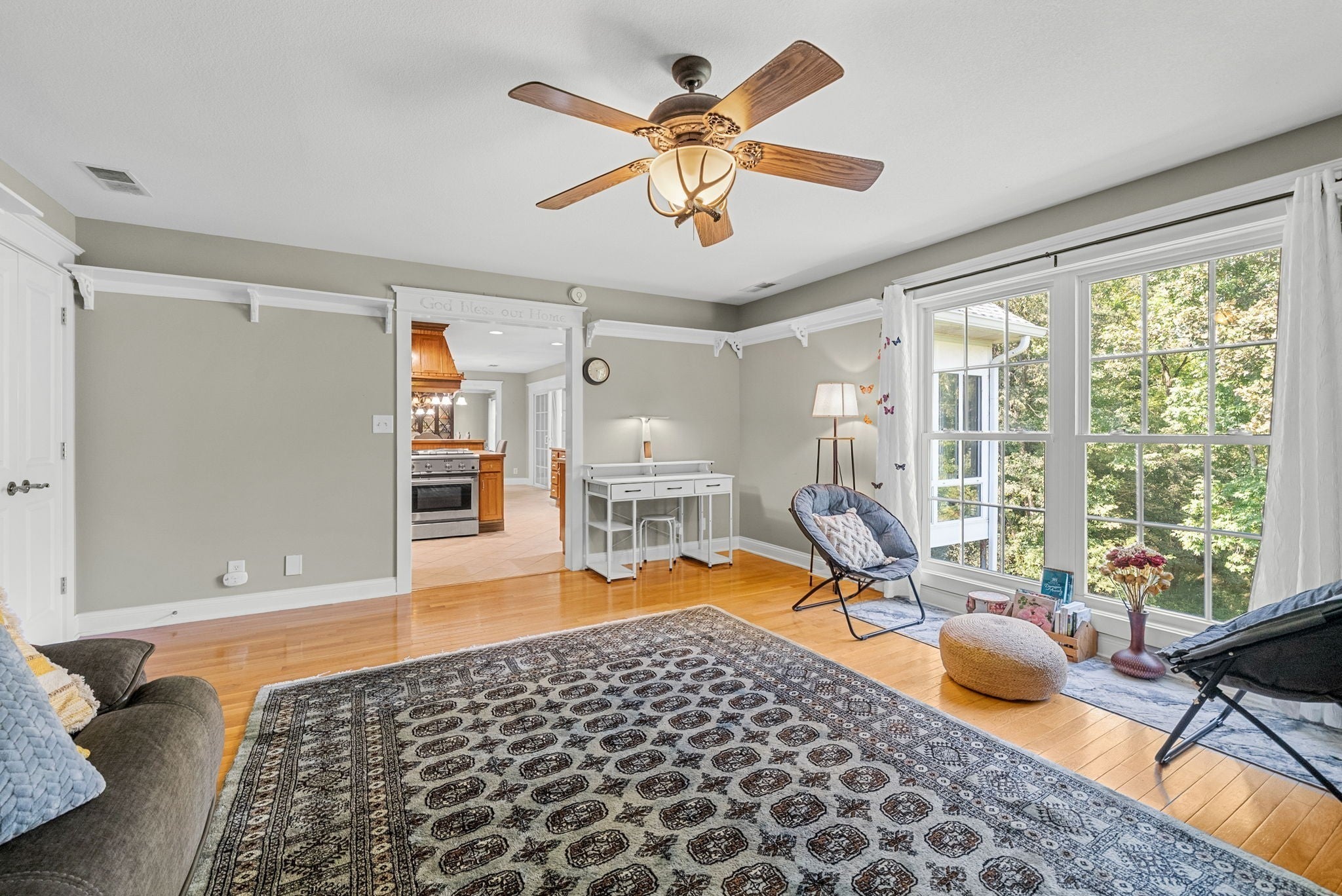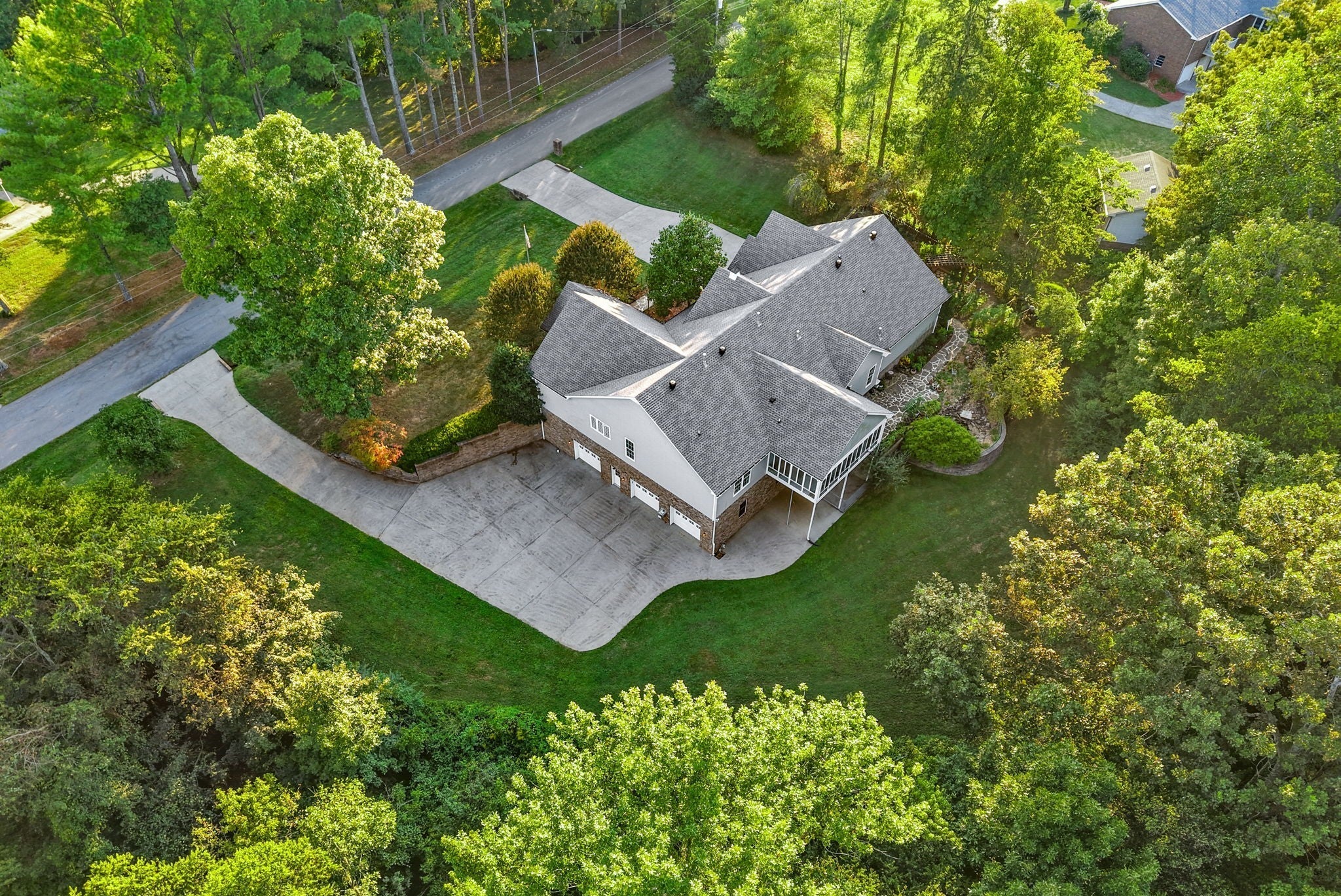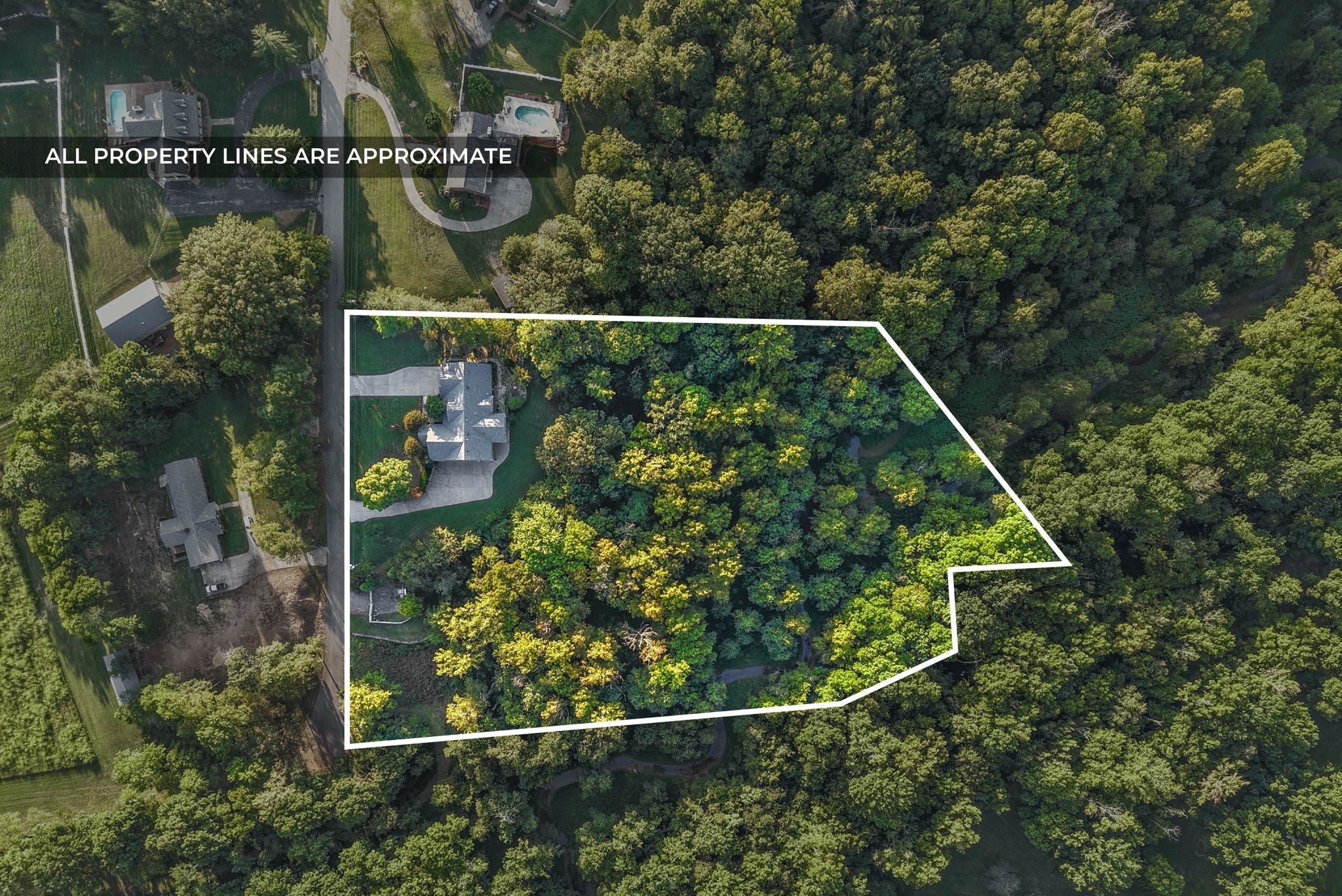 TOTALLY CUSTOM & EXTREMELY RARE RANCH style home on nearly 5 ACRES nestled at the end of a quiet cul de sac with no HOA and no thru traffic. The expansive 3,500 sq/ft main level offers 4 bdrms, lg den, formal dining rm, a 1/2 bath off the kitchen, and 6 CEILING FANS!! Hardwood oak floors throughout living, dining, and bdrms. Spacious living rm features vaulted ceilings. The massive tiled kitchen includes a walk-in pantry, abundant cabinets, lg island with high-end gas stove/range, and excellent storage. An incredible oversized tiled FLORIDA ROOM offers full heating & cooling with 360° views of the forest and wildlife. The primary suite features vaulted ceiling w/beams, dual walk-in closets, oversized tub, separate shower room, and dbl vanities. Two guest bdrms share a Jack & Jill bath with oversized tub. Upstairs includes a bonus rm with full bath, 2 bdrms (one ideal as office), 3 lg closets, and walk-in attic access. Lg main-level laundry rm w/washer & dryer space, built-in wash sink, and storage. Custom windows & frames throughout. GARAGE SPACE FOR 5 VEHICLES: front driveway leads to 2 upstairs bays w/new garage motors; 2nd driveway leads to 3 oversized bsmnt bays with tall doors, high ceilings, and storage—ideal for trucks, boats, RVs, or workshop use. Walk-in crawlspace, handicap accessible entry from garage w/no steps, and multiple storage areas throughout. Tankless water heater installed in 2024. $45,000 invested in roof, gutters, and soffit replacement in 2024 plus new fence in 2024. Outdoor features include koi pond, rose bushes, organic garden, dog run off bsmt, and private backyard. City sewer connection (not septic). Prestigious neighborhood near Dunbar Cave and Swan Lake Golf Course. Immaculately maintained. RECENT PRE MARKET HOME INSPECTION ON FILE—no surprises!