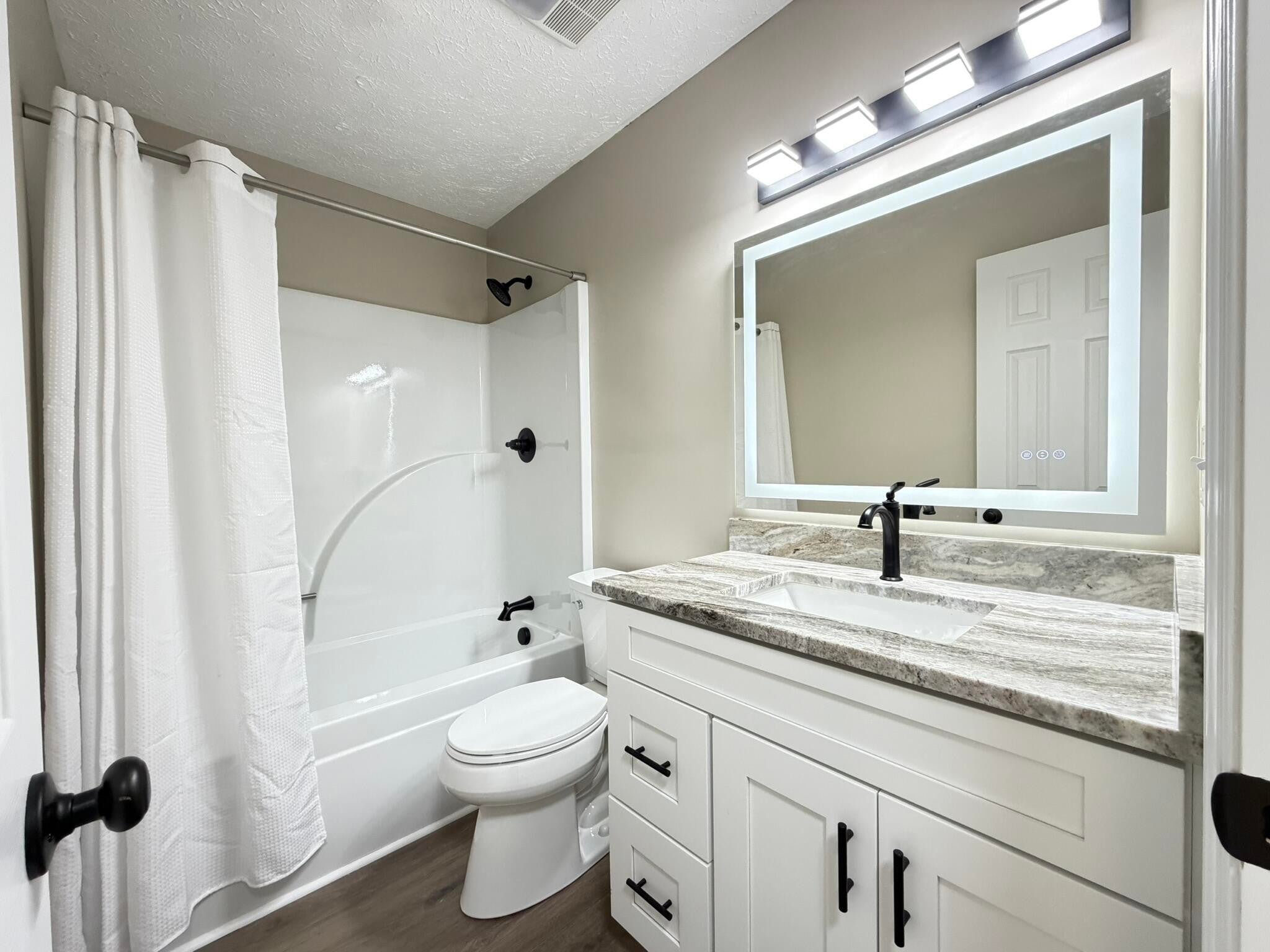 Completely remodeled and thoughtfully upgraded, this beautifully refined 3 BR / 2 BA home offers quality craftsmanship, modern finishes, and peaceful surroundings on 1.24± acres with a fenced backyard. With the look and feel of new construction, every detail has been carefully considered for both style and long-term durability. Quality Exterior & Structural Improvements The home features Westlake board and batten vinyl siding accented with Versetta stone trim, custom shutters, and tailored exterior details for timeless curb appeal. Beneath it all, Diamond Kote superior house wrap adds an additional layer of protection and performance. A premium architectural asphalt shingle roof installed 6/9/2023 provides lasting value, while the new concrete drive and sidewalk have been sealed and coated for a clean, finished appearance. Professional landscaping enhances the setting, and outdoor living is easy with a welcoming covered front porch and a spacious 10x24 pressure-treated deck, sealed with Thompson Water Seal and complete with post lights, handrails, and steps. Major System Upgrades This home offers peace of mind with extensive mechanical updates, including: Bryant 2.5-ton gas package heating and cooling system (12/9/2024) AO Smith Signature 100 Series 50-gal hot water heater All new PEX plumbing installed by a master plumber The climate-controlled 2-car attached garage is equally impressive, featuring a professionally finished epoxy floor, Amarr Lincoln Series insulated 16-gauge steel garage door, and Chamberlain opener. Clean, Updated Interior Finishes Inside, the open floor plan feels bright and welcoming with: Custom Sherwin-Williams interior and exterior paint Custom interior trim and crown molding New interior and exterior doors with updated hardware Durable luxury vinyl flooring throughout The kitchen is both stylish and functional, offering stone countertops and brand-new Whirlpool stainless steel appliances, includi