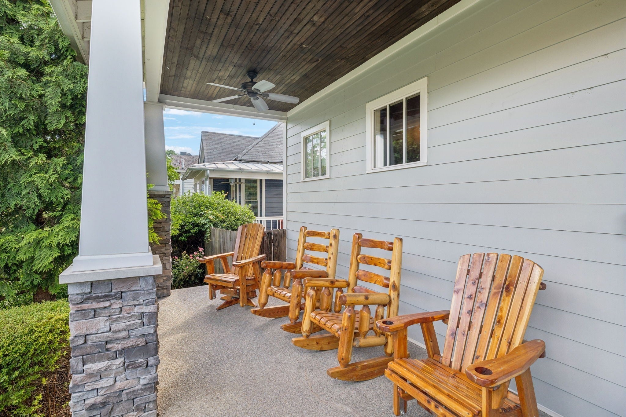 Easy walking distance to all things 12 South, Vanderbilt, and Belmont; this immaculate nearly 3,600 sq ft 5 bedroom 4 full bathroom home blends classic charm with modern updates and feels! Inside, you’ll find rich hardwood floors, a cozy fireplace, and elegant coffered and trey ceilings throughout. Recent updates include full interior paint, kitchen upgrades, upgraded lighting throughout, and a state of the art full size golf simulator. The chef’s kitchen is a showstopper! Complete with stone countertops, stainless steel appliances, a 5 burner gas stove with double ovens, walk-in pantry, and a covered porch perfect for morning coffee or entertaining. The main level primary suite includes a luxurious spa bath with a tiled shower, soaking tub, double vanities, walk-in closet, and its own laundry area with stackable W/D. Upstairs offers three additional bedrooms, two full baths, a second laundry room, and a bonus room ideal for a playroom or home office. Downstairs, the terrace level features a private in-law suite with its own entrance (no steps!), full bath, bedroom, the golf simulator, and access to an exterior grilling porch and deck. Full turf in the front yard makes this a very low maintenance home. The oversized 3-car garage offers plenty of storage. This home is walkable to some of Nashville’s best dining, shopping, and entertainment. This one has it all—style, space, and location. Come see it for yourself!