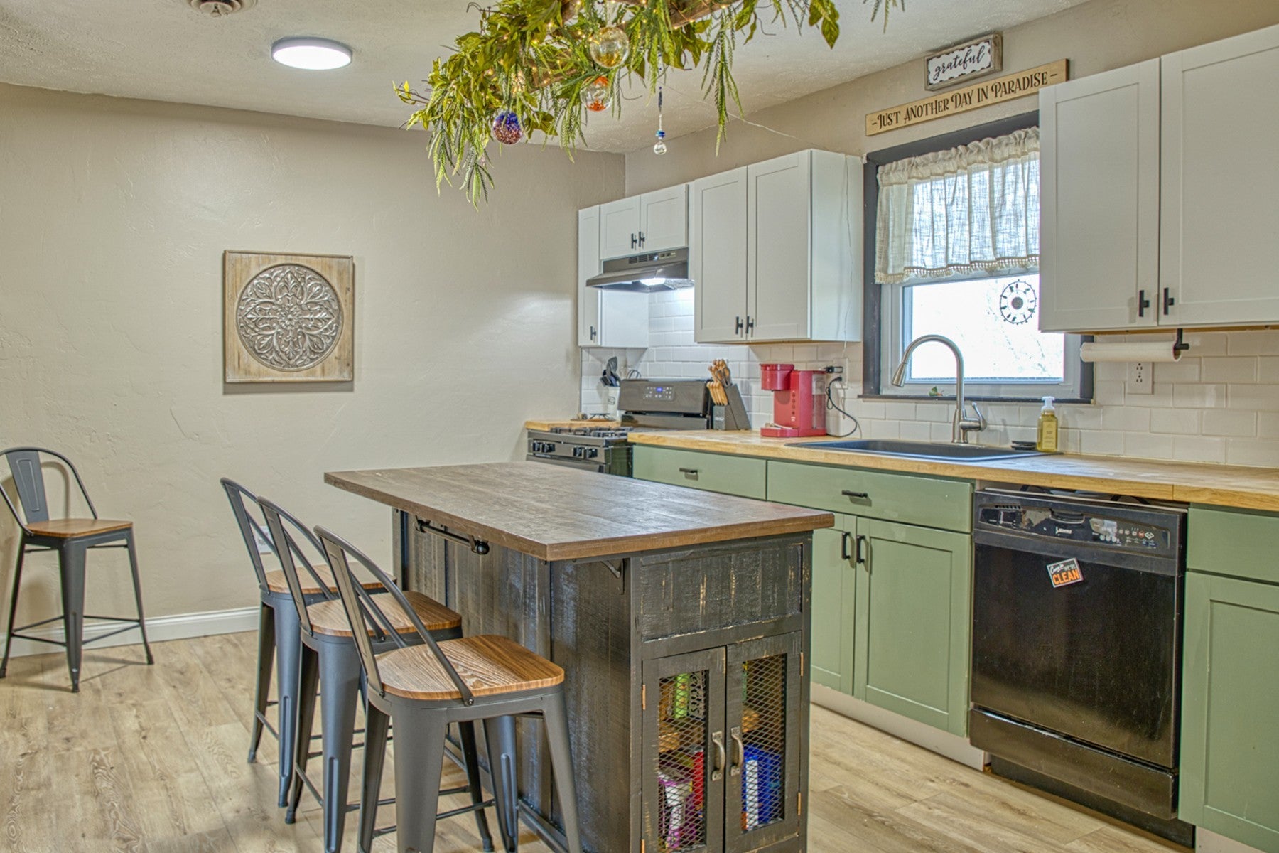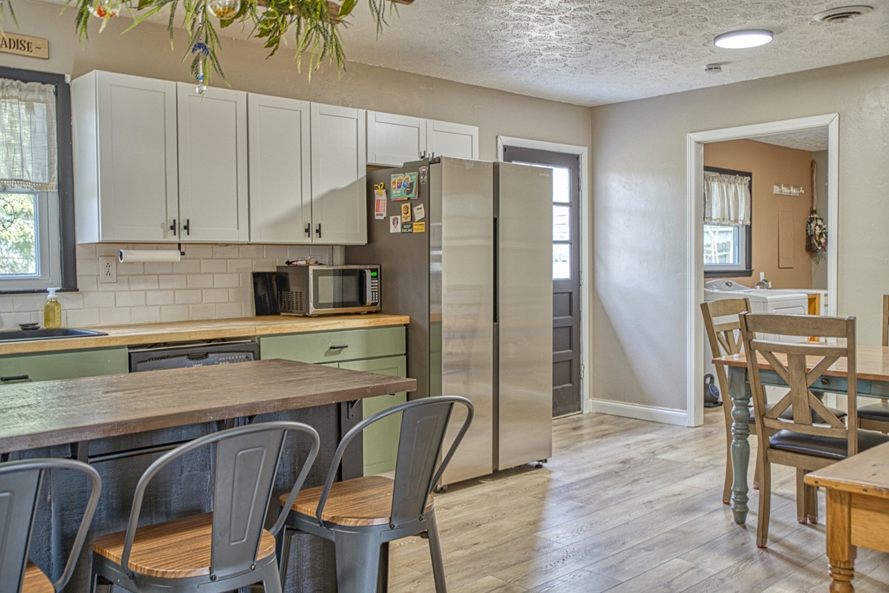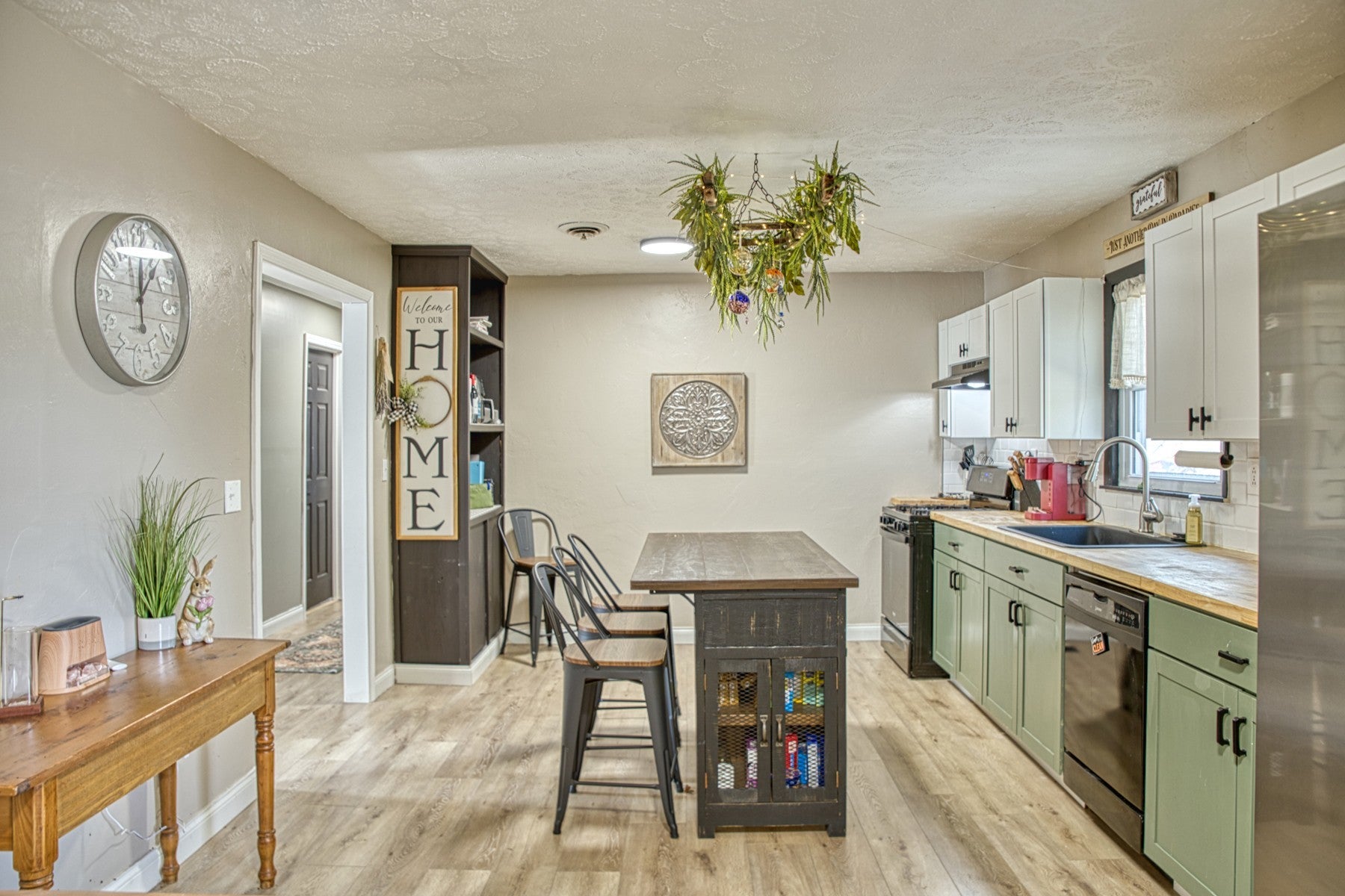 This three-bedroom, two-bath home offers 1390 square feet of single-level living in a charming and affordable package. The residence has been updated, including the installation of a new roof just a year ago. The expansive kitchen features butcher block countertops, a spacious breakfast bar island and ample cabinetry space. The generously sized walk-in laundry room is noteworthy, offering additional storage opportunities plus comes with the washer and dryer. Each bedroom is equipped with generous closet space. The exterior boasts a fenced backyard, storage building and a carport with handicap access, ensuring ease of entry into the home. Call today for your appointment, as this home presents a cost-effective alternative to renting. (The living room couch and loveseat that is fairly newer can stay with the purchase of the home, as well as the living room mounted TV. Island bar stools also convey with home).