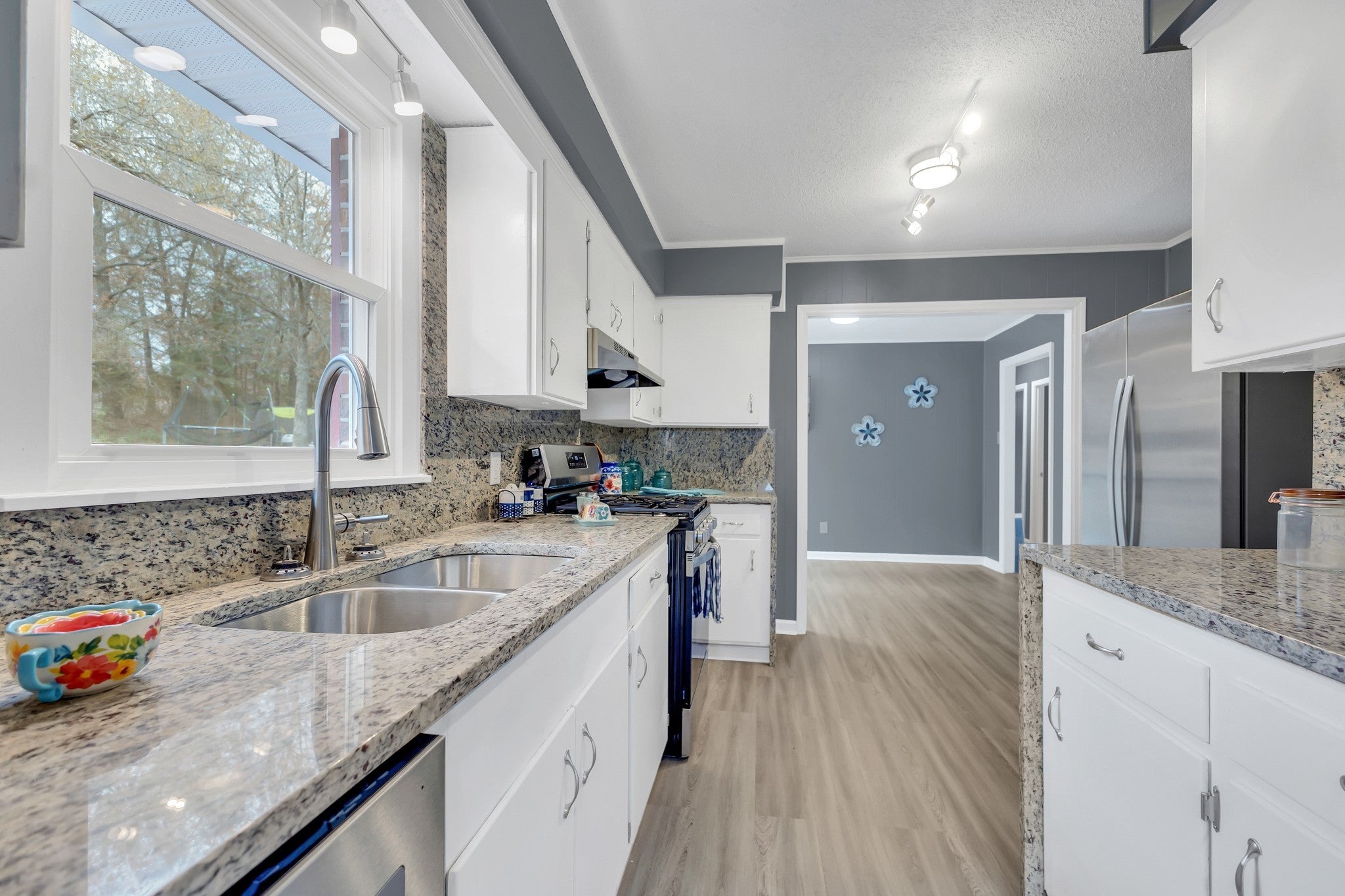 Beautiful and completely renovated ❤️, 1,344 square feet, 3 bedroom/1 bath house. Large living room with sunken den. New windows and floors throughout. Updated bathroom, modern kitchen with deep sink, stainless steel appliances (refrigerator, dishwasher, range/oven), granite countertops with full backsplash. All modern plumbing and brand new central heat and air! Deck in back and storage shed as well! Super location! Pets okay with pet deposit and there is NO application fee.