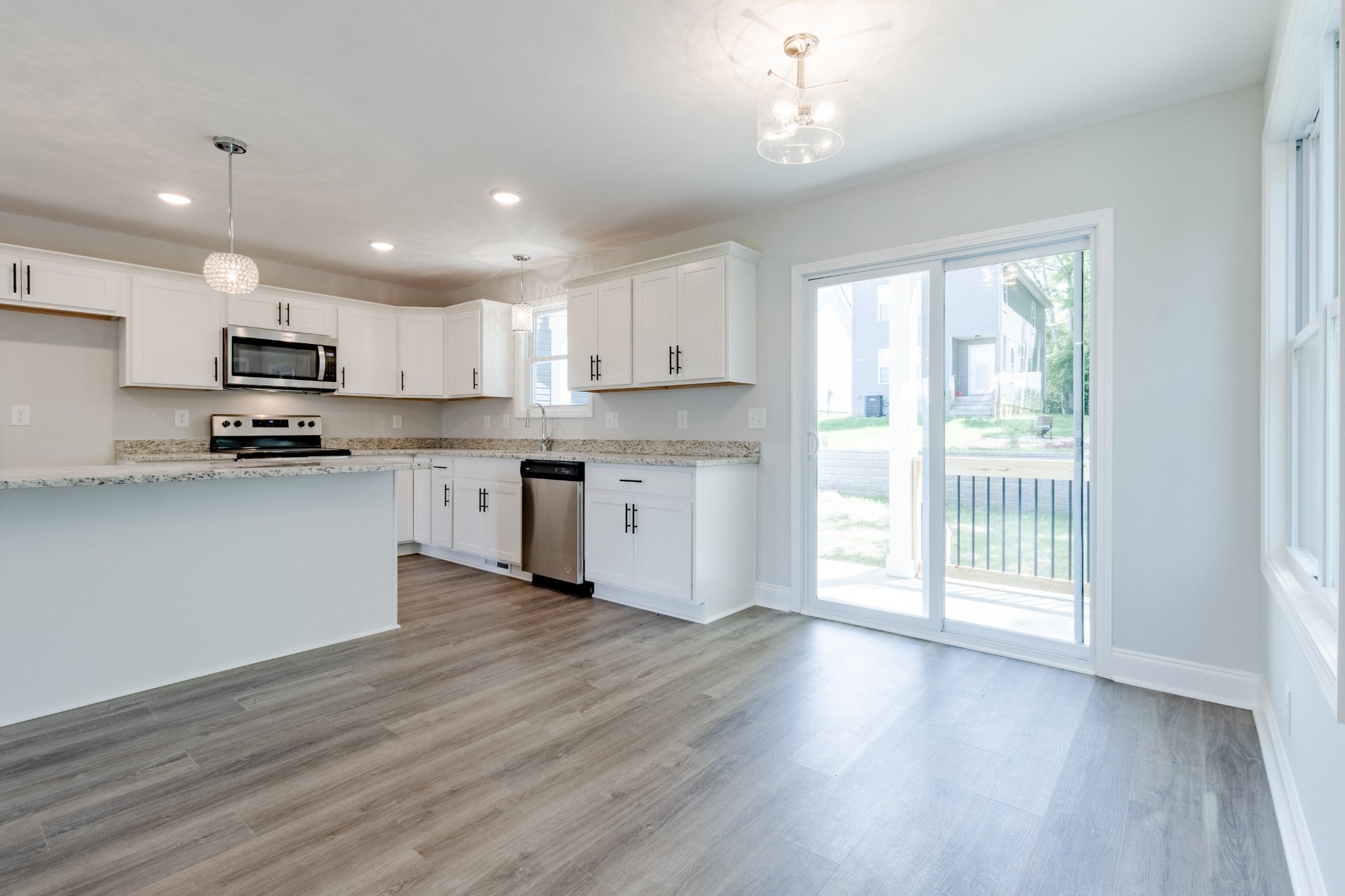 - Oven, Range, Dishwasher, Disposal, Microwave, Refrigerator, Stainless Steel Appliance(s)
