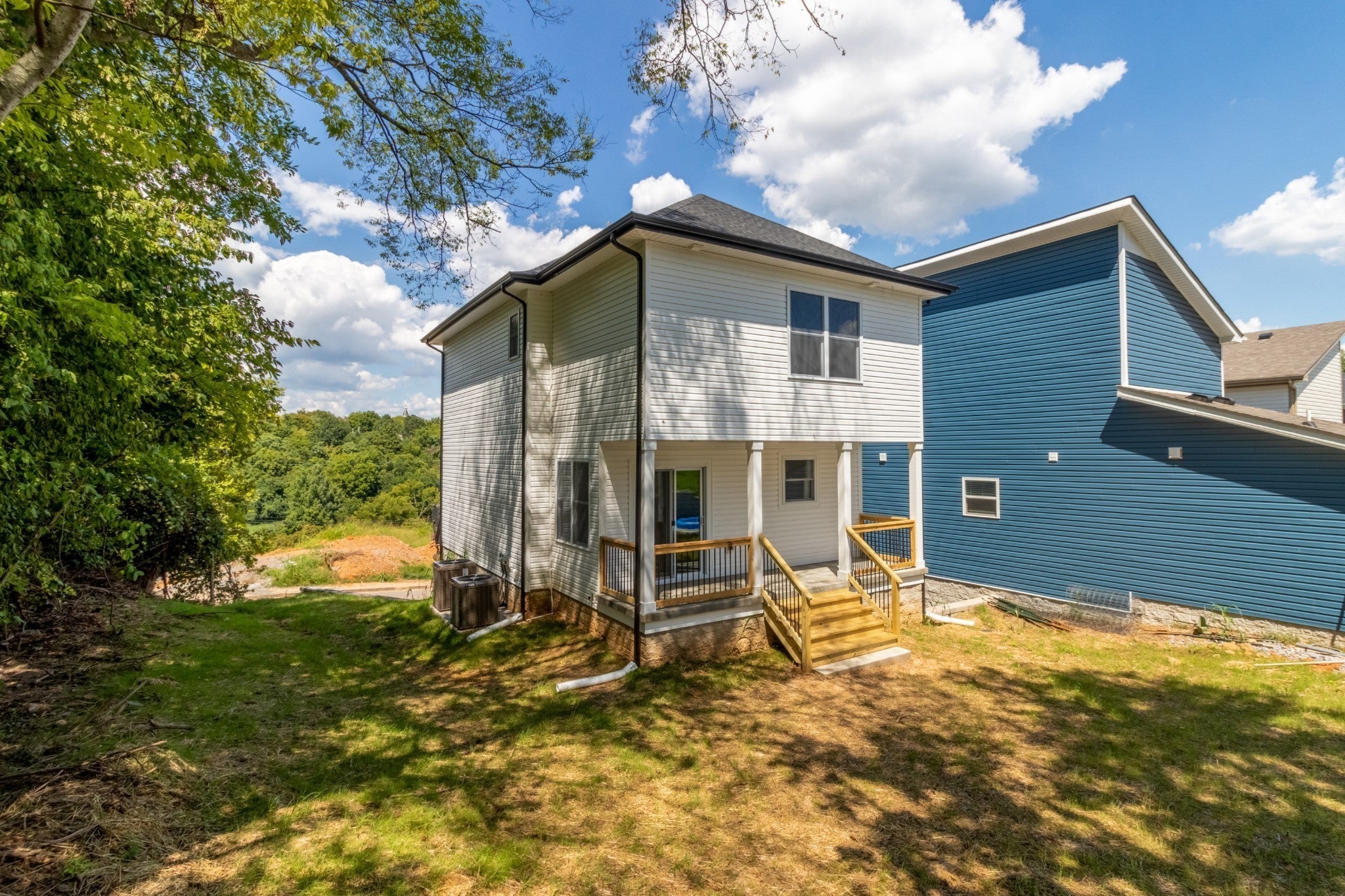Enjoy spectacular skyline views of Downtown Clarksville from either of the Juliet balconies off the primary bedroom. This one-of-a-kind custom home features a basement-level bedroom with a full bath, perfect for guests or a private retreat. The main level offers an open layout with a spacious kitchen and large island, living room, and dining area, with a covered porch just off the kitchen—ideal for outdoor entertaining. Upstairs, you’ll find two generously sized suites, each with its own private bathroom. Every bedroom in the home includes its own bathroom for ultimate comfort and privacy. Located close enough to walk to Downtown Clarksville! This can make an excellent investment property as a by-the-room rental or STR/Airbnb! (Stainless steel fridge included but not pictured).