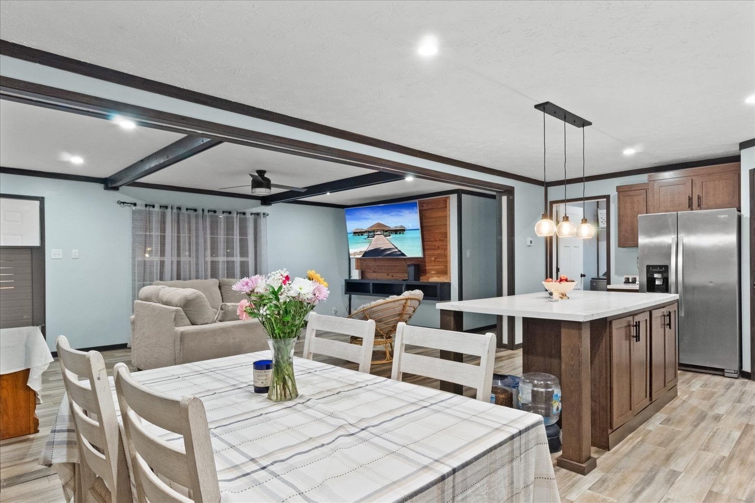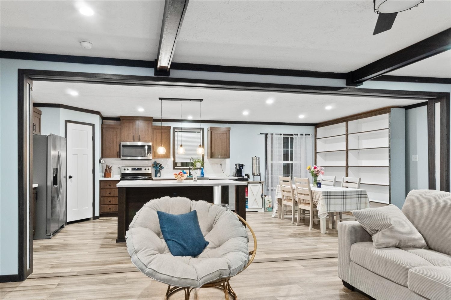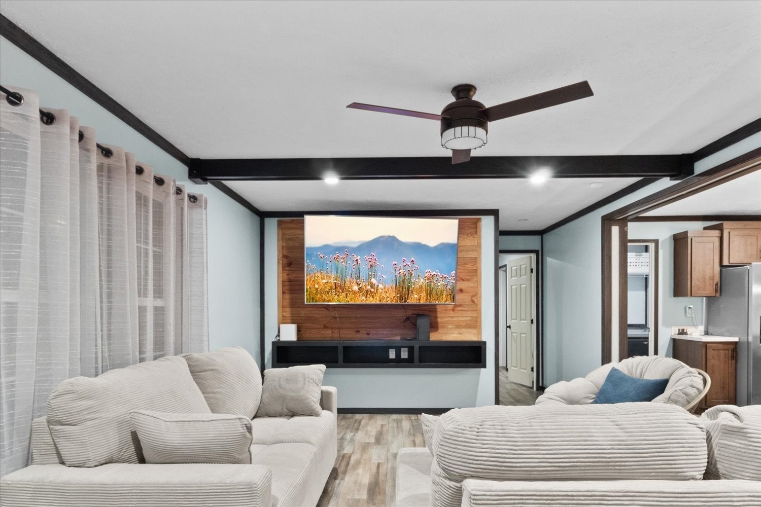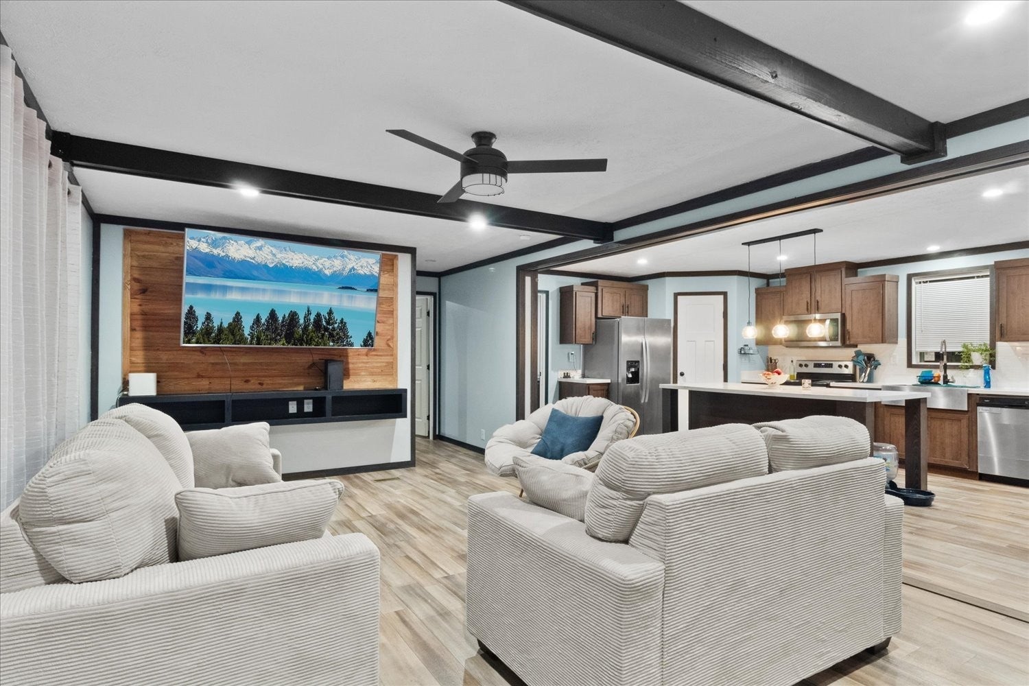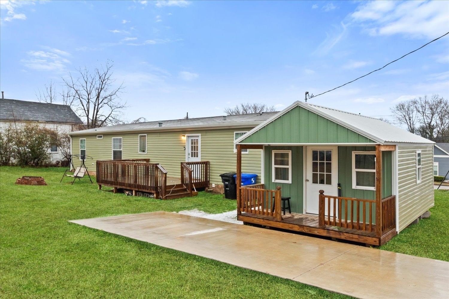 Home is less than 3 years old, Located on a large corner lot, prime location near downtown, close to Arts District, perfect to enjoy dining, events and everything downtown has to offer. Step inside to an amazing open-concept with a spacious kitchen flowing seamlessly into the dining and living room--ideal for entertaining or relaxing at home. This property features 3 Bedrooms, 2 full baths, plus a den/office for remote work, hobbies or a flex space. Primary suite is a true retreat with a large bath, soaking tub, separate shower, walk-in closet. You will love that all the kitchen appliances remain including Washer & Dryer, plus a large TV in Living room and TV in the primary bedroom making this home truly move in ready. Large bookshelf unit in dining area can stay or be removed, it is not attached so could easily be relocated to the den. Outside there's even more to appreciate: a 12x20 finished outbuilding/office with a 4' porch--a great setup for a studio, workspace, or extra storage. Parking is easy with 4 car parking on two paved driveways. Also a small storage building stays. Enjoy outdoor living with a (8x8) front porch and a (10x16) back deck. Homes with this combination of newer construction, corner-lot and close to-town convenience won't last-especially near the courthouse and Arts District. Schedule your showing ASAP and come see why this one stands out.