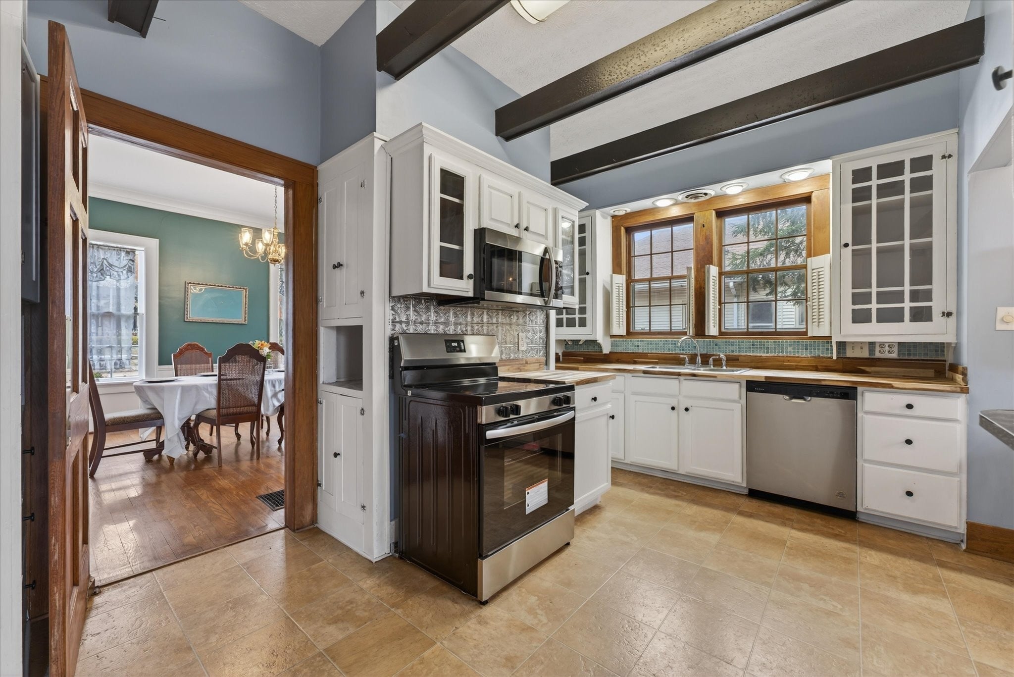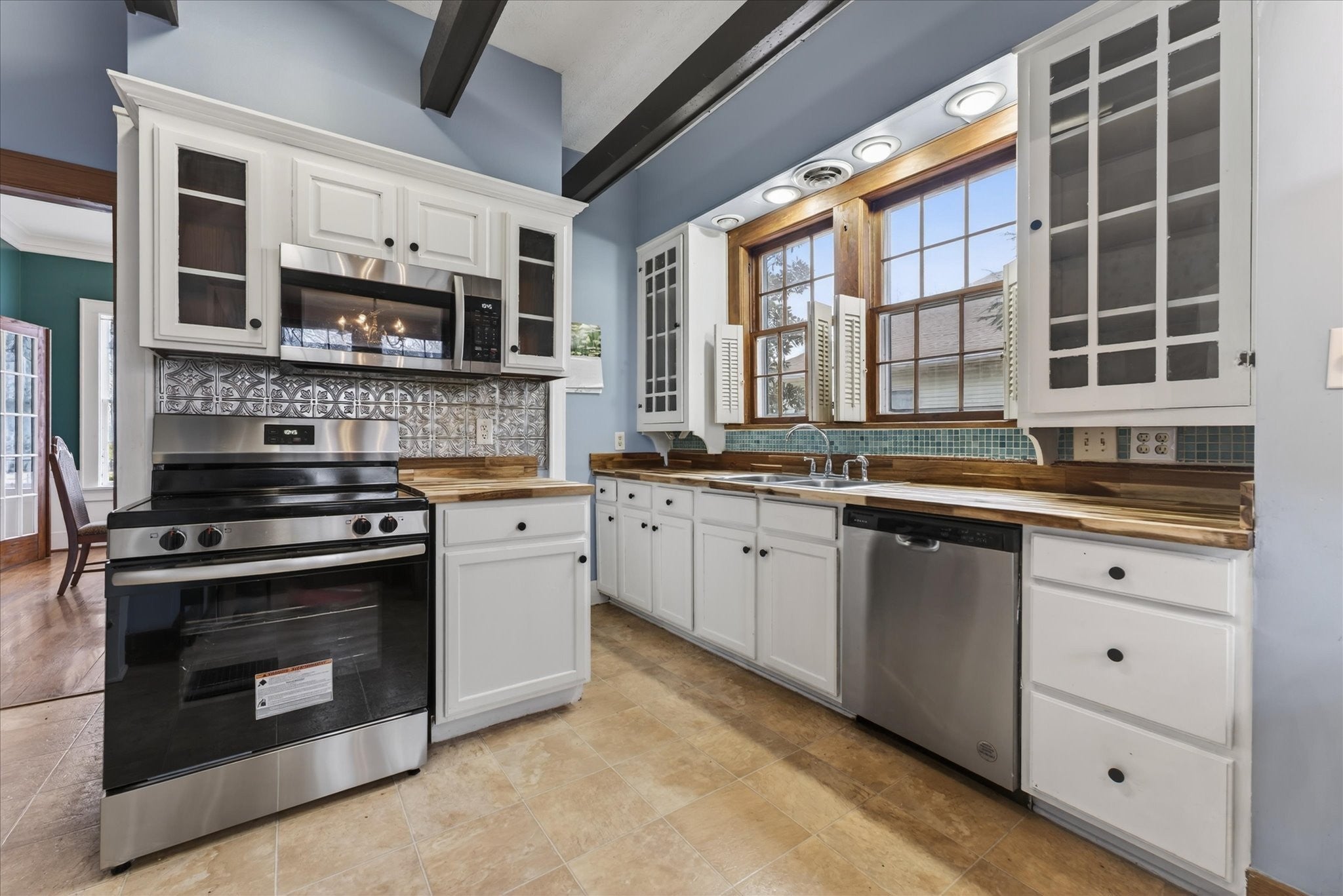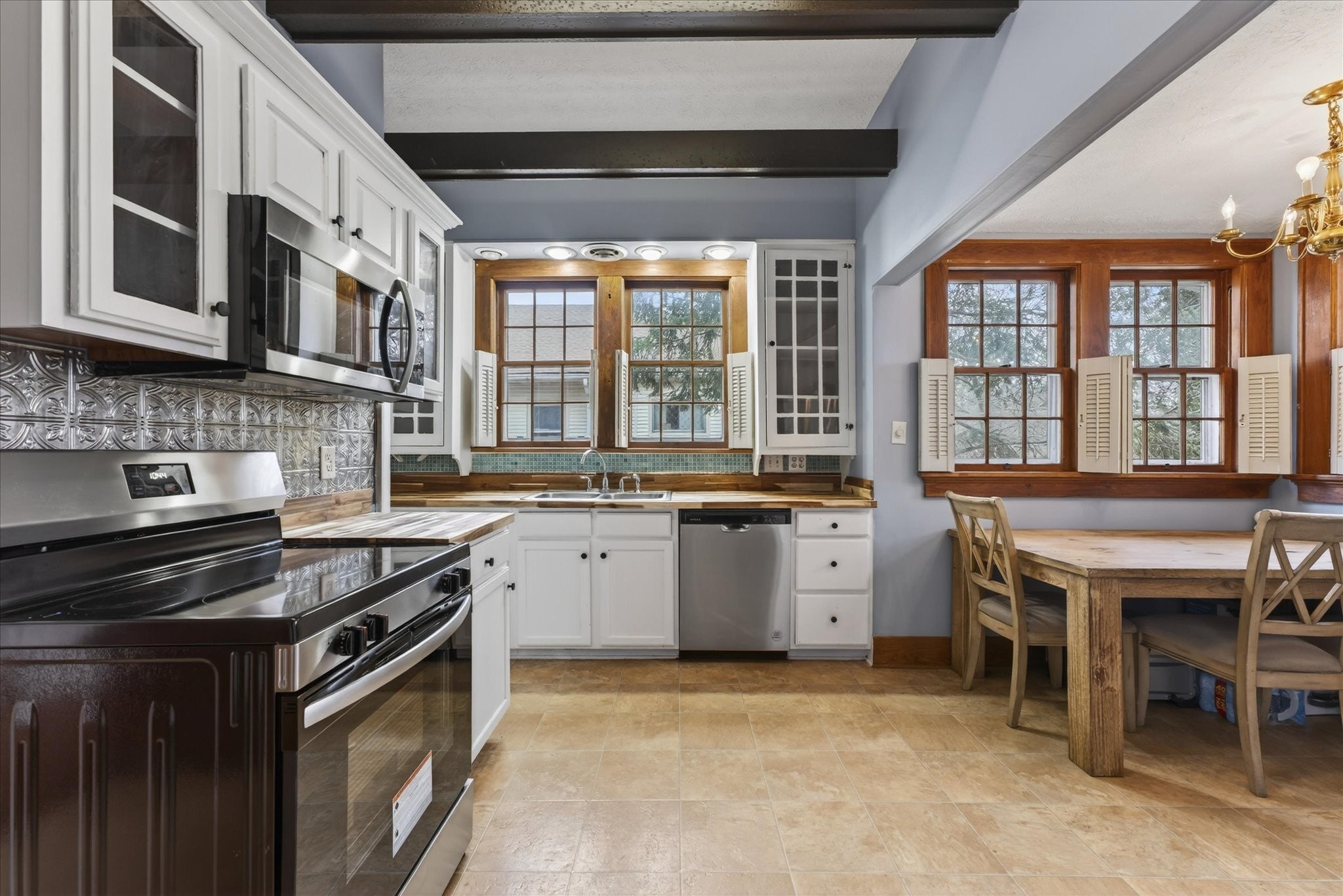 - Electric Oven, Range, Dishwasher, Disposal, Microwave, Refrigerator, Stainless Steel Appliance(s)