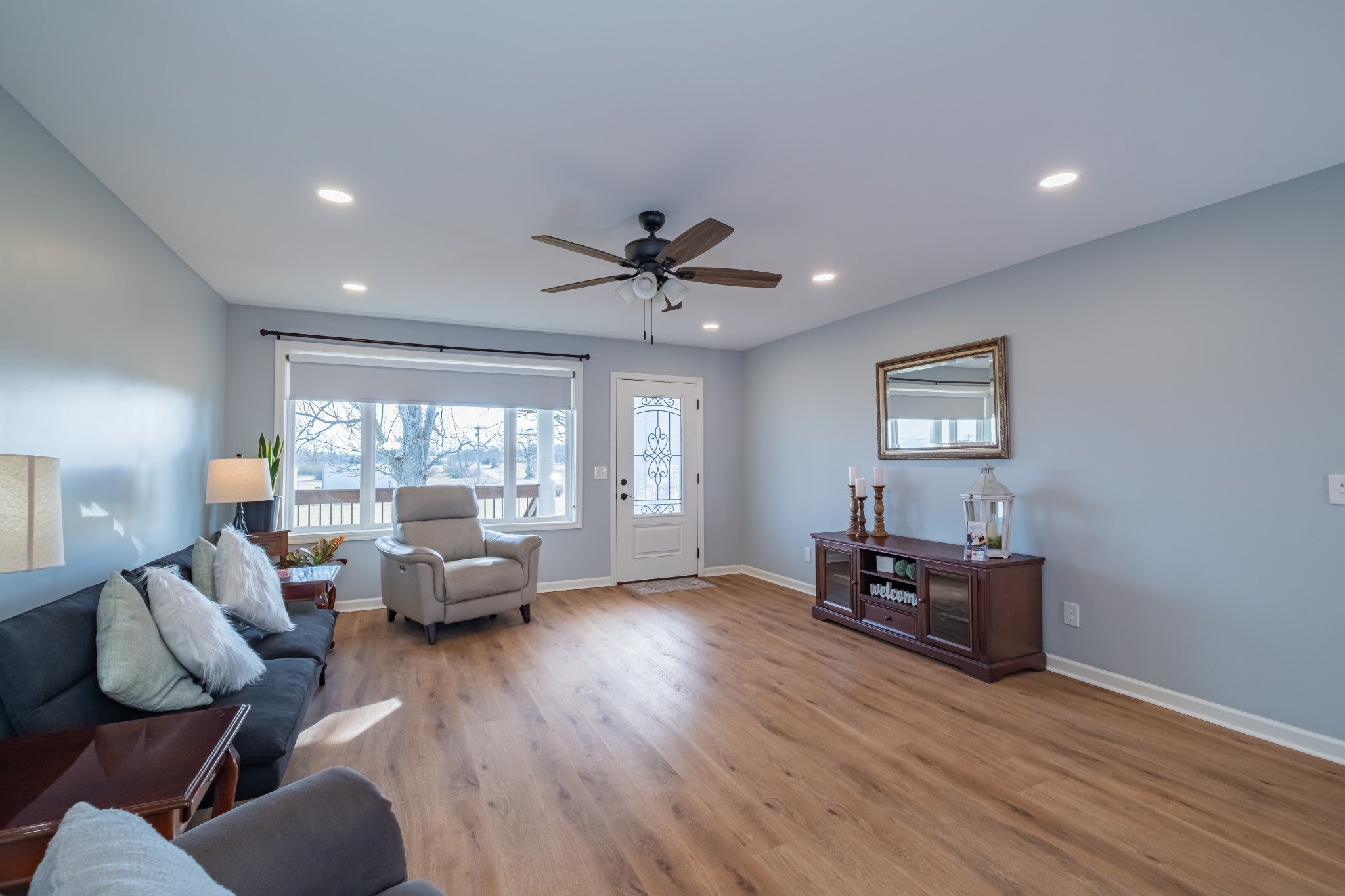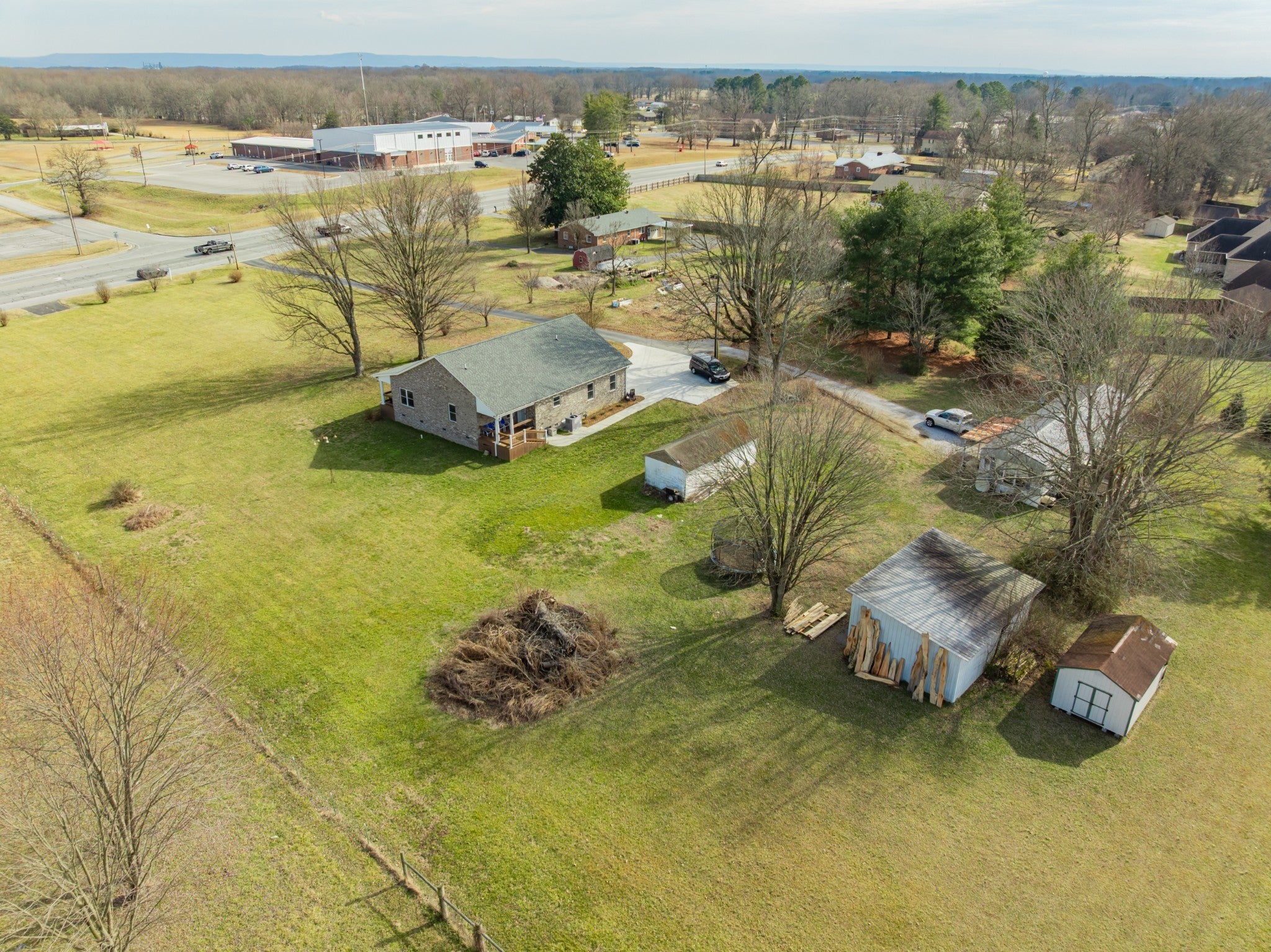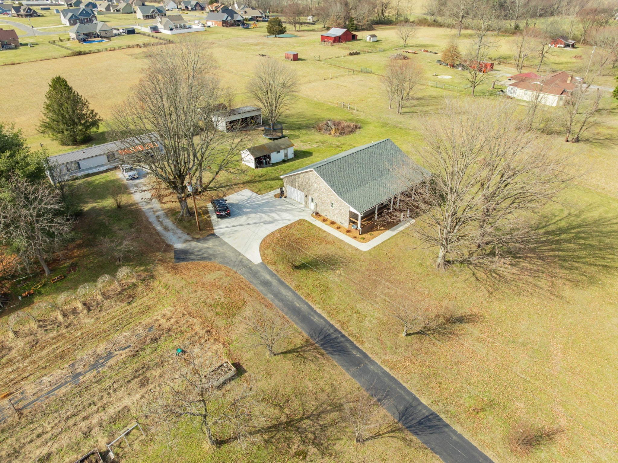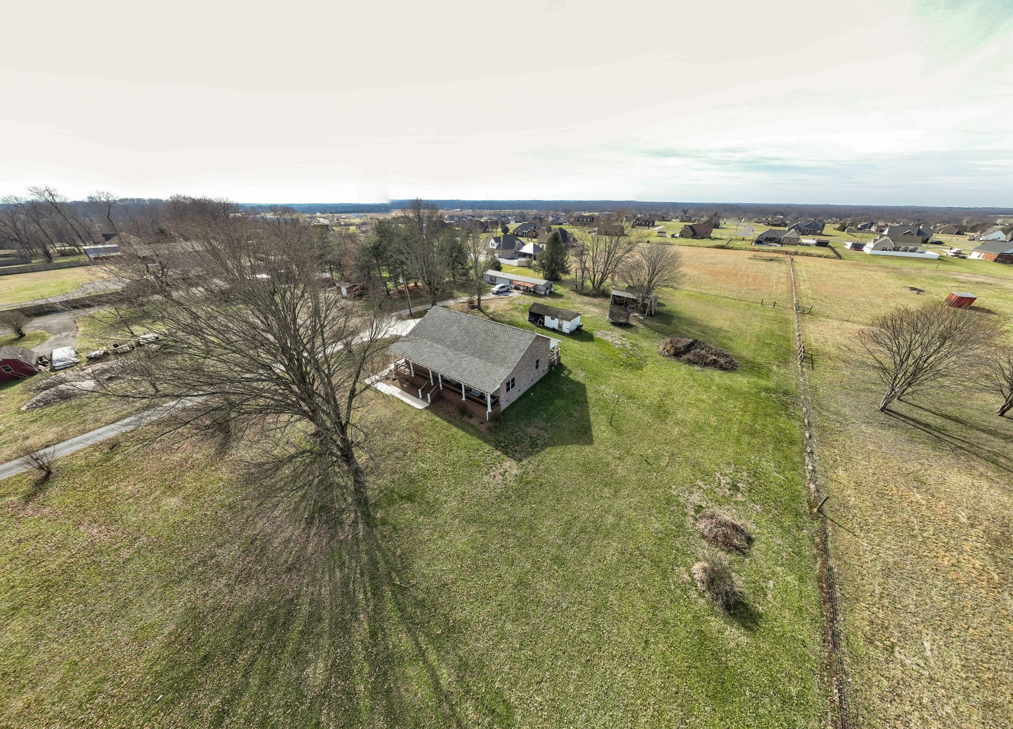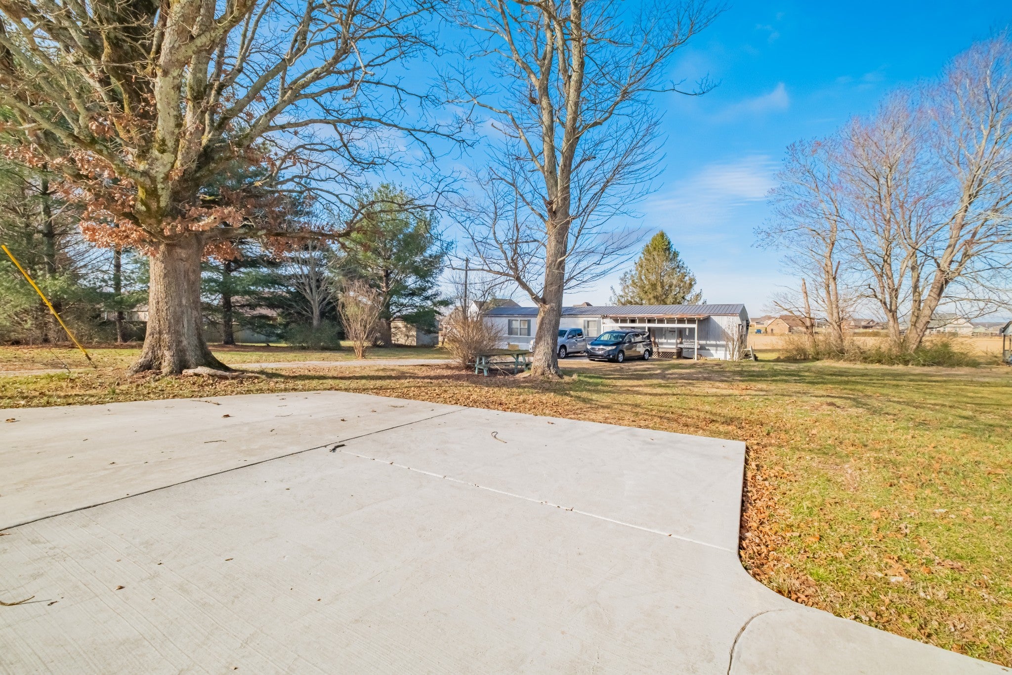 Two living spaces. Nearly five acres. One incredible opportunity. LOCATION LOCATION LOCATION! Nestled in the highly desirable New Union area, this beautiful property offers the perfect mix of peaceful country living with everyday convenience to schools, grocery shopping, the fire hall, emergency medical service, and a tight knit community you will love being part of. This newer 2023 home features over 2,100 sq ft of one level living with a popular split bedroom design, 3 spacious bedrooms, and 2 full baths. The open layout is ideal for gatherings, the separate laundry room adds extra convenience, and the circulating hot water system provides instant hot water at every interior faucet. Step onto the covered front porch for morning coffee and enjoy evenings on the back deck overlooking 4.82 acres of gorgeous pasture land. With low county only taxes, a paved driveway, concrete parking areas, and both front and back sidewalks, this property checks all the boxes. You will appreciate the oversized attached garage, floored attic storage, concrete building with concrete floor, three bay pole barn, and storage building with porch for all your equipment and hobbies. The home is on city water with a well on the property not currently in use, plus a Totten Pest Control termite contract for added peace of mind. And the cherry on top… an additional 1,152 sq ft mobile home provides a second living space for guests, extended family, rental income, or multigenerational living.