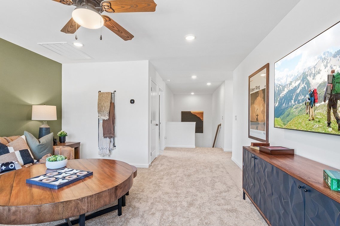 Introducing the Atlas floor plan at Canebrake at Hickory Hills in Old Hickory, TN—where comfort meets contemporary design. Designed for flexible living, the main floor begins with a guest bedroom, offering an ideal setup for visitors, multigenerational living, or a private workspace. The foyer also features a convenient full bath, along with a linen and storage closet for added functionality. Beyond the foyer, the open-concept layout reveals a welcoming great room that seamlessly transitions into a casual dining area. The kitchen, equipped with ample counter space and a spacious walk-in pantry, also includes an additional closet for extra storage. Head upstairs to discover a generous loft, perfect for family activities or relaxation, alongside two well-sized secondary bedrooms. The tranquil owner’s suite is thoughtfully situated on its own side of the house, offering a peaceful retreat separate from the loft area.