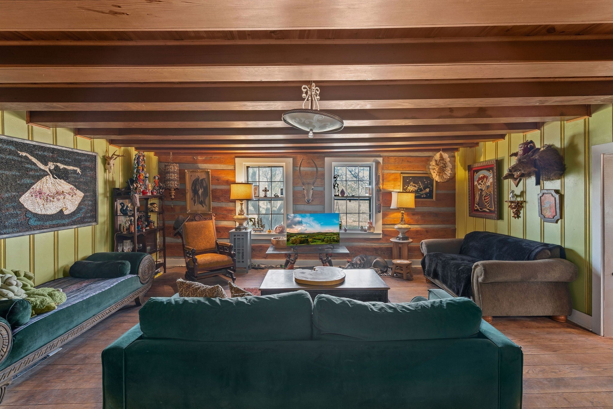 This historic Tennessee chestnut log cabin Homestead circa,1797 set on 47 pristine acres in Williamson county is a private paradise perfect for the equestrian lifestyle, regenerative farming, Eco resort and Nashville creative living at its finest. Only 25 minutes to downtown Nashville. This holistic hideaway is overflowing with endless opportunities for development and monetization. Voted the #1 Hipcamp.com glamping site in Tennessee in 2025. This stunning property has been the setting for multiple Grammy nominated Nashville, artist’s music videos and is featured on HGTV and in billboard magazine, gaining international attention for its artistic collaborations and lifestyle branding. An inspirational location with excellent investment and portfolio building opportunities for future equity growth, it can be subdivided into three separate lots for further development. We invite you to visit this organic equestrian farm surrounded by three creeks, with blend of hardwood forest, usable tillable garden, orchard and pasture for livestock. The farm sits on a small plateau offering a broad view, beautiful sunsets and starry night skis. The creeks add an element of privacy and adventure. This property has lots of water, with an ole timey spring house, protecting a cool water spring, a well, creeks and small pond. The current owners have developed as a family compound with RV hook-ups. It's a comforting and relaxing setting with barn, chicken coop, duck and goose run with water, a pole barn, fenced pasture and several fenced paddocks; you could literally live off this land. The land, house, buildings, green house, creeks, trees make a quintessential rolling hill farm. The farm has been involved with the farm to table renaissance, taking advantage of the highly active and successful farmer markets in Nashville and Franklin.