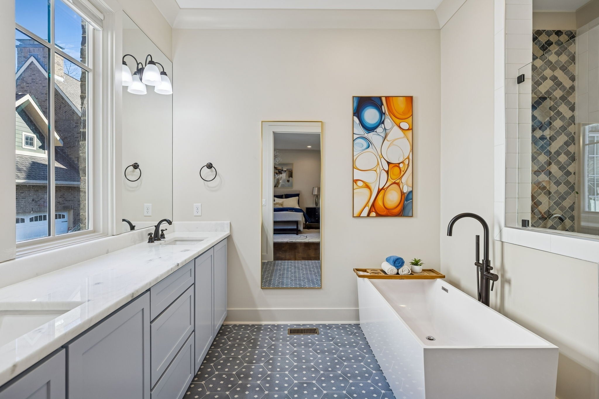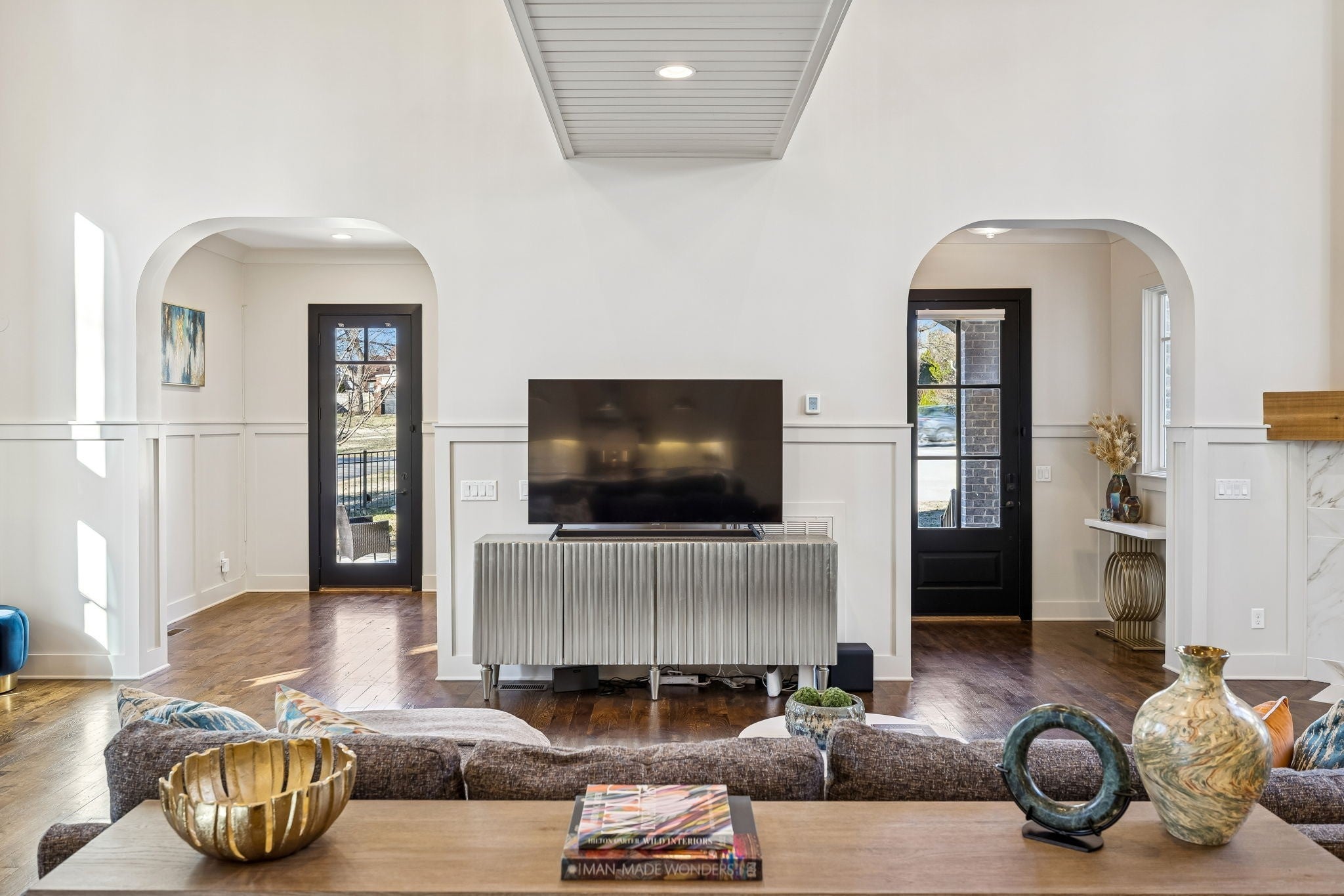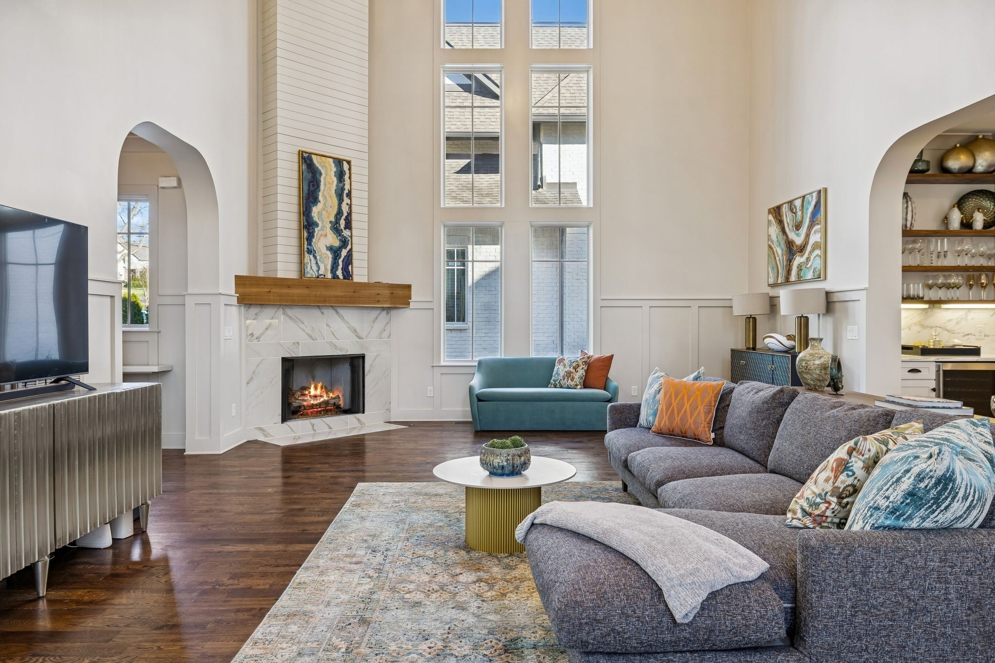 Open House scheduled for Saturday 2/21 12-2 CANCELLED. Welcome to this stunning modern Tudor offering 4,694 sq ft in one of Nashville’s most walkable and desirable locations! Just 0.3 miles to Sevier Park—featuring playgrounds, community center, gym and farmer's market—and only 0.6 miles to the vibrant energy of 12 South- where yoga studios, coffee shops, boutique shopping, and award-winning restaurants create an unmatched lifestyle. This is more than a home—it’s a way of living. This luxury residence feels brand new with fresh paint throughout, beautiful hardwood floors, designer lighting and all-new quartz kitchen countertops and backsplash. Every bathroom has been thoughtfully updated with new tile and quartz surfaces. The striking design opens to an expansive great room with soaring 34-foot ceilings, a dramatic two-story gas fireplace and abundant natural light. The gourmet kitchen is a true showstopper featuring high-end appliances, an oversized quartz center island, wine bar, coffee station, expansive walk-in pantry, new quartz countertops and backsplash—perfect for everyday living and entertaining alike. The main level also includes a dedicated office with built-in desk and shelving, a planning nook, laundry room, and ample storage. The main-level primary suite offers dual walk-in closets and a spa-like bath. Upstairs you’ll find three generously sized bedrooms (one currently used as a media room), two full bathrooms, spacious bonus room and an additional flex space ideal for a home gym or work-from-home setup. Enjoy outdoor living on the screened porch overlooking a fenced yard with irrigation. A two-car attached rear garage plus additional parking pads add convenience, and there are no HOA fees. The location truly sets this home apart—walk to 12 South, and enjoy quick access to Belmont, Vanderbilt, Green Hills, downtown Nashville, and BNA. The HPR is attached only along the garage wall. Must see in person! Move In Ready and All Furnishings Negotiable!