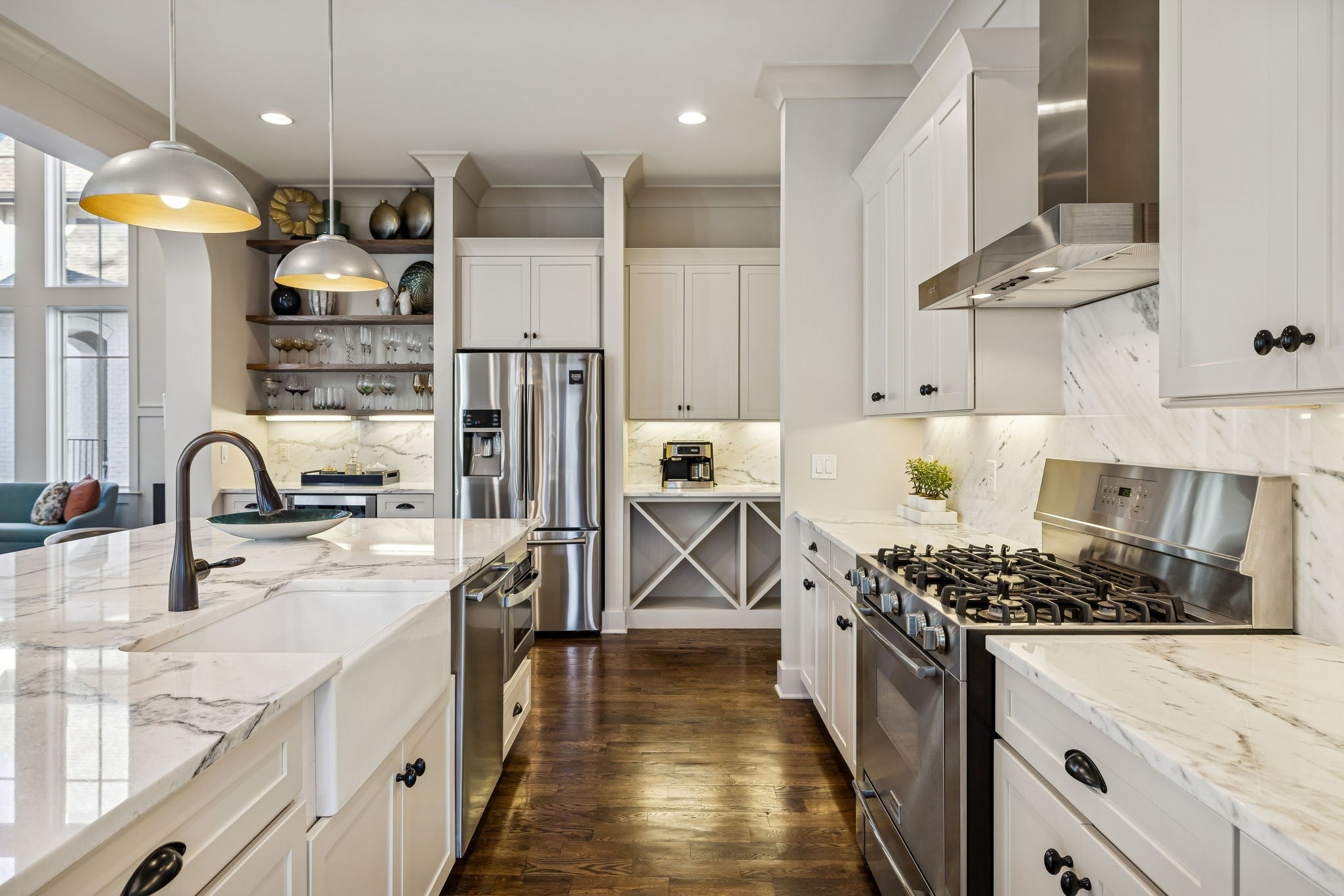 - Built-In Gas Oven, Gas Range, Dishwasher, Disposal, Microwave, Refrigerator