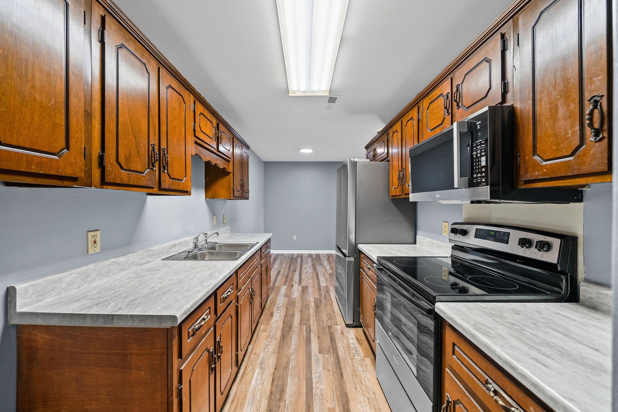 Check out this newly renovated 2 bedroom 1 bathroom apartment. This unit comes with brand new stainless steel appliances, fresh paint throughout, new laminate and carpet, and brand new bathroom fixtures. Lawncare is provided for your convenience. This is conveniently located to downtown Hopkinsville and the hospital.