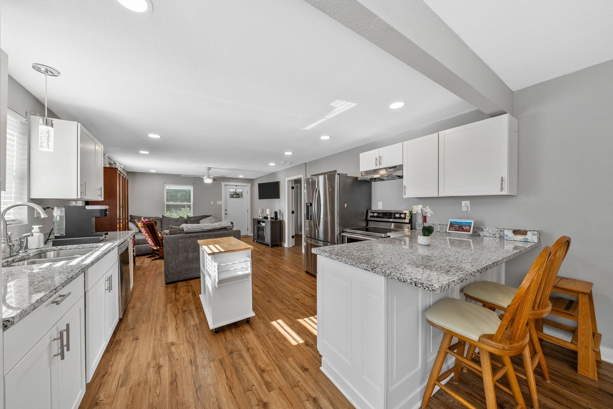 Beautifully renovated 3 bedroom, 1.5 bath home in the heart of Clarksville! This move-in-ready property was completely updated just two years ago with a new roof, vinyl siding, windows, trim, soffits, exterior and interior doors, new electrical wiring with service breaker, new plumbing lines, HVAC, and water heater. Inside you’ll find all new drywall, fresh paint, LVP flooring with new subfloor and joists where needed, plus a stunning kitchen featuring top-of-the-line stainless steel appliances including a double oven, granite countertops, new cabinets, sinks, faucets, and fixtures. The bathrooms have been fully updated with new vanities, bathtub, shower tile, and plumbing fixtures, while modern lighting brightens every room. A brand-new side deck adds the perfect outdoor space for entertaining. Conveniently located near downtown, shopping, dining, and schools, this home offers modern comfort, low maintenance, and total peace of mind.