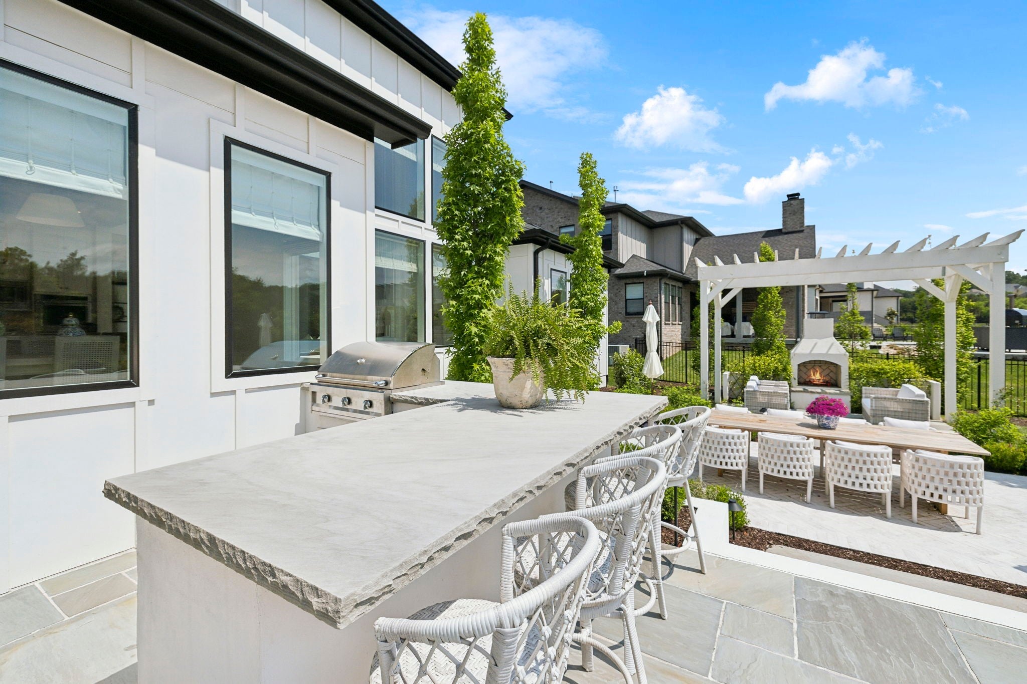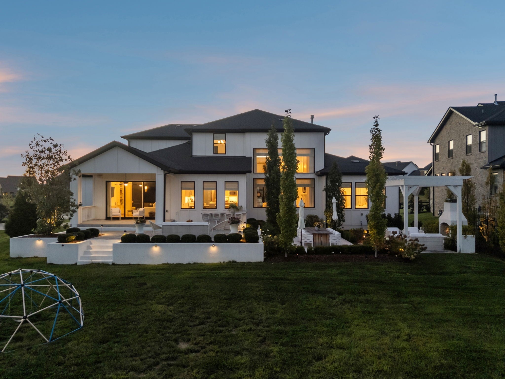 Looking for a luxury home that feels calm, polished, and intentional—without leaving Nolensville? This five-bedroom, five-and-a-half-bath modern estate sits on a rare 0.62-acre lot in the Annecy community, offering space, privacy, and refined design just minutes from daily conveniences. Natural light pours through floor-to-ceiling windows, setting a peaceful tone from morning to night. The open layout flows effortlessly, anchored by a custom chef’s kitchen with high-end appliances, statement lighting, and more than $475,000 in designer upgrades throughout. Every finish feels considered, elevated, and timeless. Outdoor living is a true highlight. A covered patio and built-in cooking area create the perfect setting for sunset dinners and relaxed entertaining with views and privacy. Inside, five spacious bedroom suites, flexible bonus rooms, and a three-car garage support both family life and hosting. Annecy residents enjoy a pool, clubhouse, playground, top Nolensville schools, and easy access to I-65 and Wilson Pike.