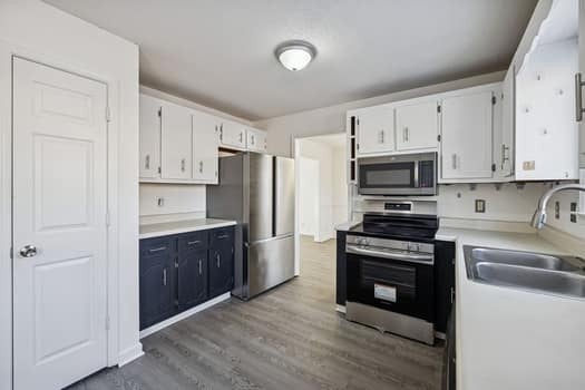 - Electric Oven, Electric Range, Dishwasher, Microwave, Refrigerator, Stainless Steel Appliance(s)