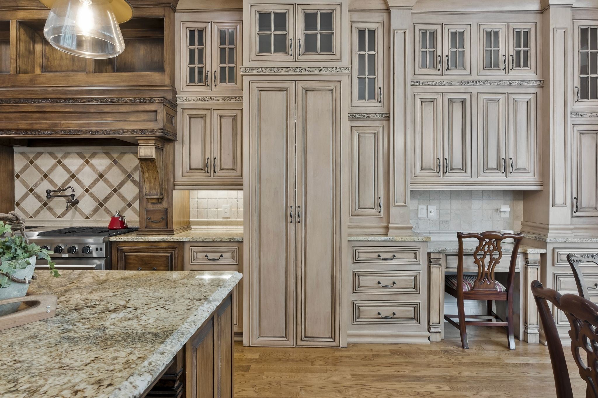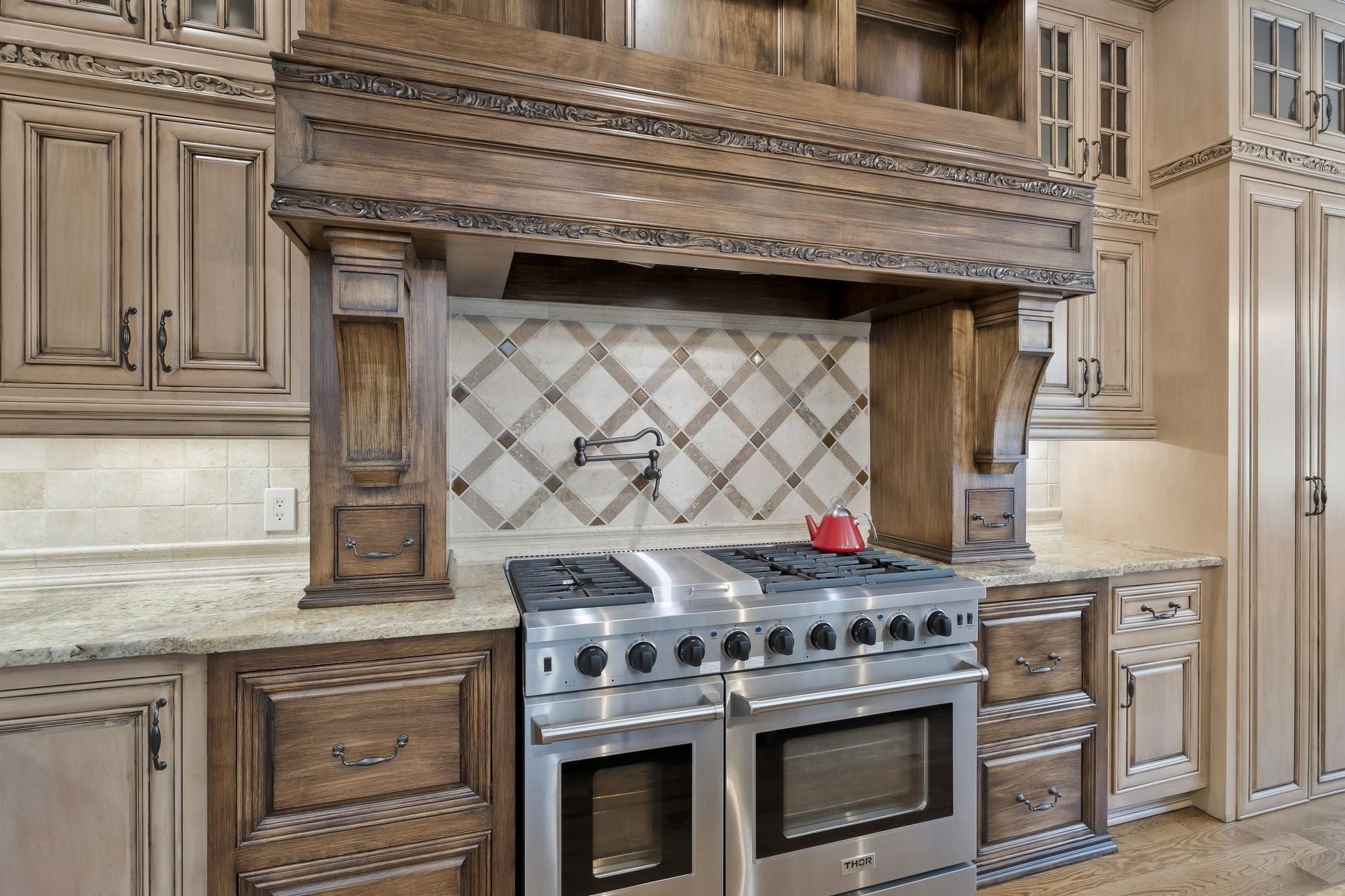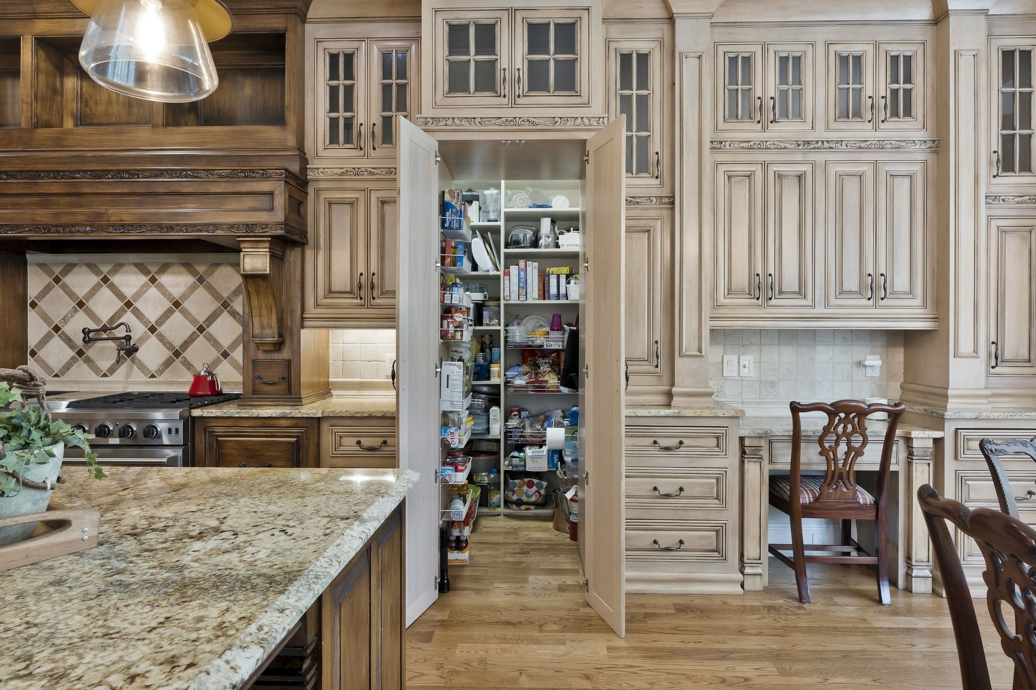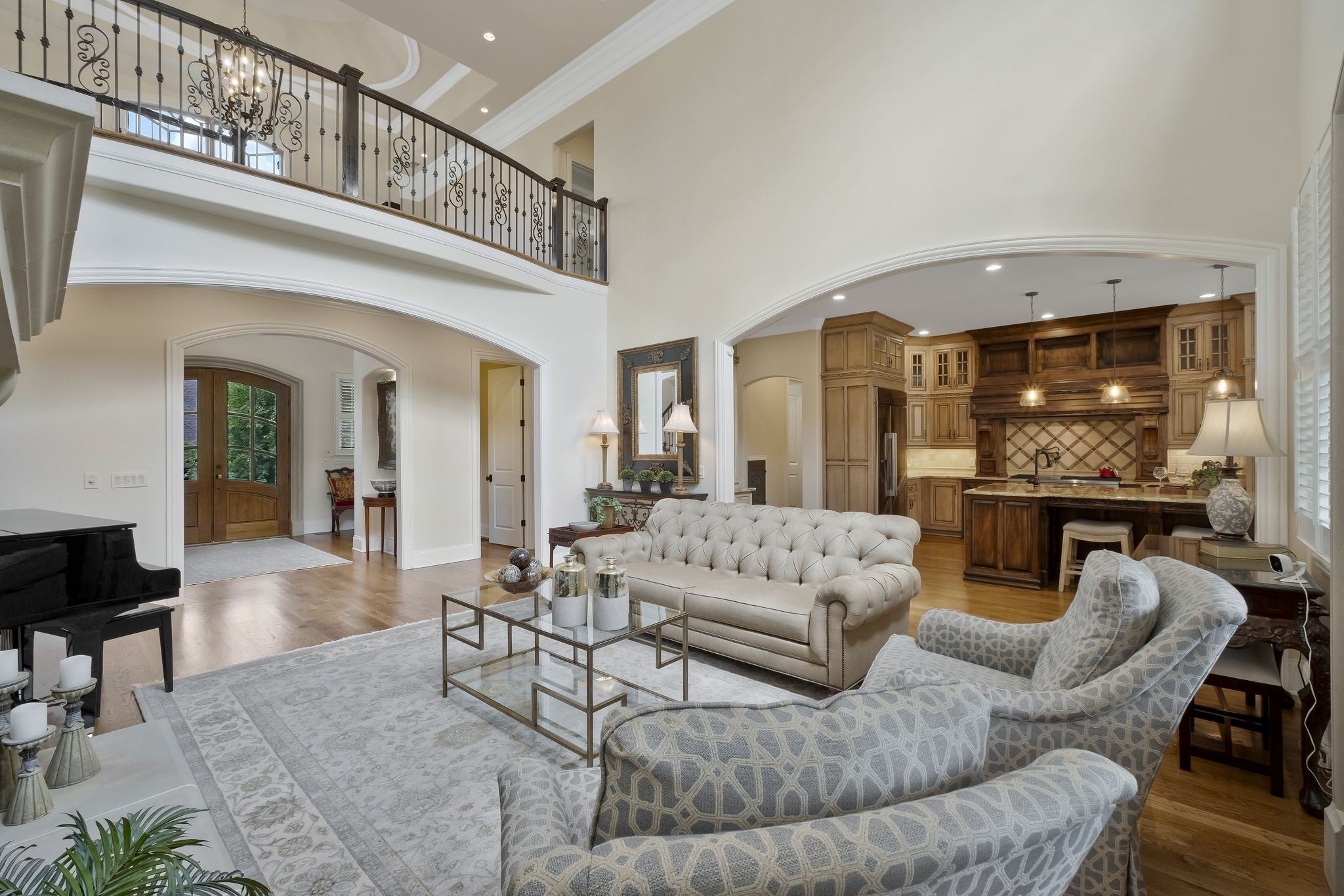 Experience refined living in this former Parade of Homes residence, located within the gated section of The Hunt Club. Upon entering the elegant double-door foyer, you are welcomed by intricate moldings and a grand staircase reminiscent of classic architectural design. As you move throughout the home, the exceptional craftsmanship and meticulous attention to detail reflect a time when quality and artistry were paramount. This estate home boasts a true gourmet kitchen equipped with premium THOR appliances, a six-burner gas cooktop, double ovens, a walk-in pantry, and solid wood custom cabinetry. The living room features soaring ceilings and a striking stone mantel surrounding a wood-burning fireplace, creating a warm and inviting atmosphere. The expansive 31 x 16 primary suite is privately situated on its own wing of the home, offering a peaceful retreat separate from the secondary bedrooms. The suite includes private access to the outdoor living area, which features a covered patio and an outdoor fireplace. Four additional bedrooms and three full bathrooms are located on the upper level. A spacious bonus room with a wet bar and fireplace is positioned above the three-car garage. The garage is equipped with built-in cabinetry, an additional storage closet, and a durable epoxy floor. For added convenience, the home offers multiple laundry rooms on both the main and upper levels, enhancing functionality and ease of daily living.