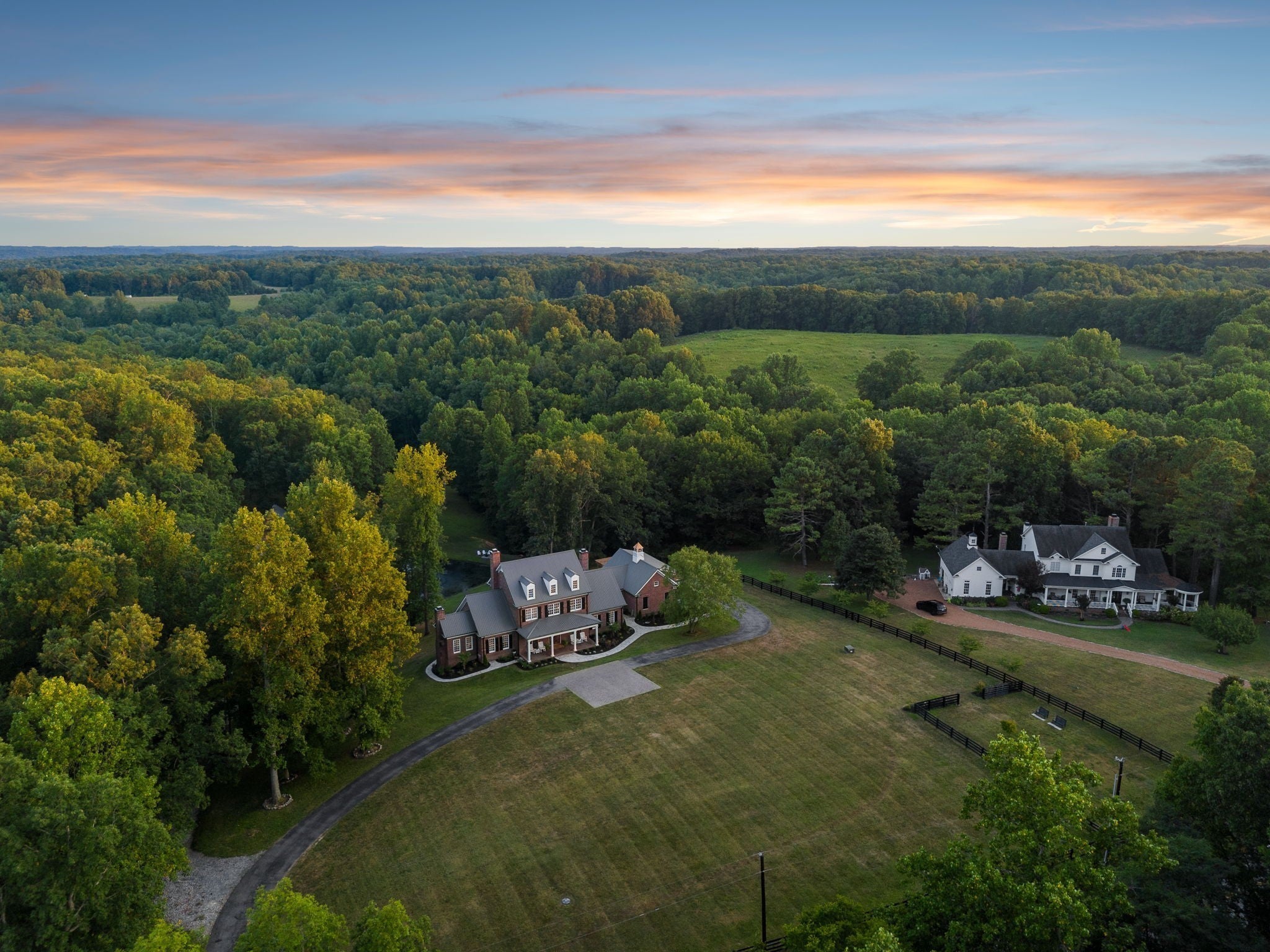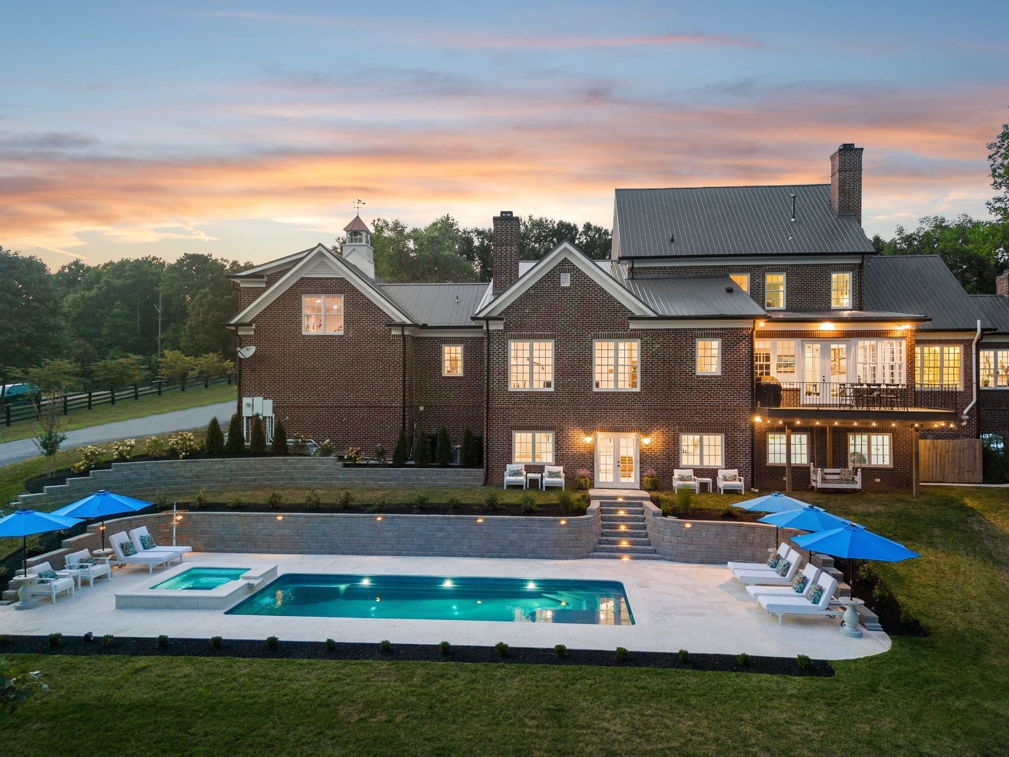 Nestled on 7 acres of rolling hills in Leipers Fork, this beautifully renovated brick home offers a perfect blend of luxury and comfort. The property features a serene pond, sparkling pool and spa, and a barn, ideal for both relaxation and entertaining. The main level includes a spacious primary suite with a private sitting room and fireplace with a plaster feature wall, plus a luxurious bath with a zero-entry shower, dual vanities, and an indulgent soaking tub. The open-concept living area is designed for entertaining, with a formal dining room, casual dining space, and a large kitchen with island seating. A bright sunroom overlooks the back, while the living room offers sweeping views and a stately plaster fireplace. A convenient office, full bath, and friend’s entry near the laundry room and drop zone complete the main floor. Upstairs, a private bonus area over the garage includes 3 guest bedrooms, a full bath, private living room and a second primary ensuite. The basement offers additional living space with a kitchenette, powder room, pool deck access, and a flex room perfect for a home gym or entertainment area. Other features of the home include a new metal roof in 2024, a sealed crawlspace, attached 3 car garage and a tankless water heater. This exceptional property offers a unique opportunity for a secondary dwelling, with the county already approving a 3-bedroom septic system—perfect for a guest house or party barn. There is fiber internet up the road.