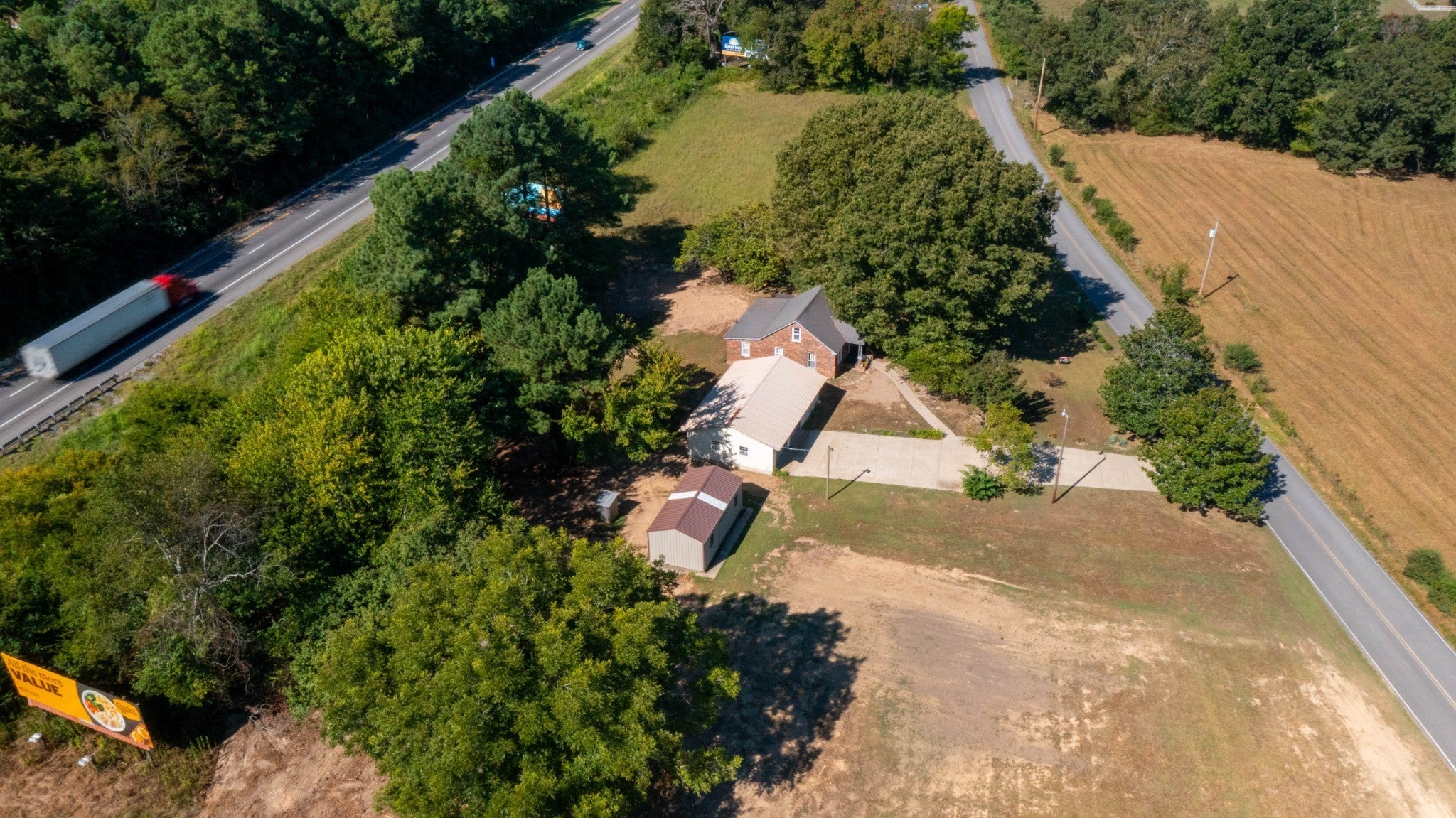 11 acres of level, usable land in Burns with approximately 1,461 feet of road frontage. Possible to subdivide into 1.5 acre lots. CITY SEWER IS COMING - estimated by the end of this year. Ignite Broadband Internet powered by Dickson Electric. City gas. City water & well water (well needs new pump). Gas Generac Generator. 3 income producing Interstate 40 billboards on property; billboard contracts can be terminated if buyer wants them removed. Charming 3 bedroom brick home with metal roof and beautiful shaded yard. Concrete driveway and sidewalk. 24x28 two car detached garage with electric, concrete floor and finished room with windows. 24x12 storage building with windows. Pond. 2 nice garden spots. Sold As-Is. Also listed in Land - MLS 3122725
