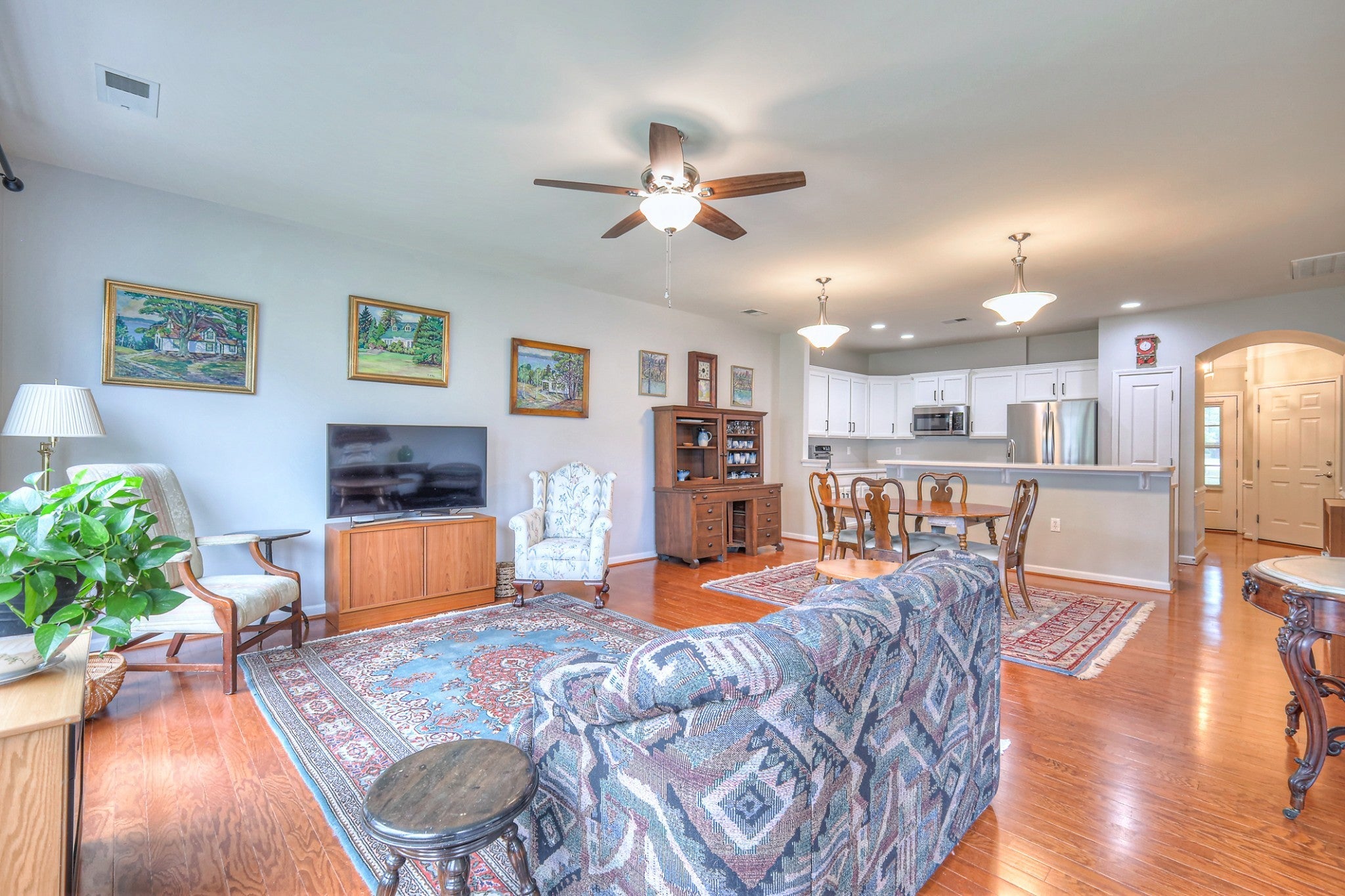 Enjoy the perfect blend of comfort, style, and location in this move-in ready Lakeshore villa, ideally situated directly across from the community lake in the sought-after 55+ Del Webb Lake Providence neighborhood. From your front porch, take in peaceful water views and the convenience of nearby visitor parking. Inside, the open floor plan is filled with natural light and features hardwood flooring in the main living areas. The updated kitchen showcases crisp white cabinetry, a brand-new refrigerator, dishwasher, and stove—ready for your culinary creations. The home has been updated with a 2022 dual-fuel HVAC system for year-round efficiency and comfort, and most of the interior has been freshly painted in a neutral palette to complement any style. Retreat to the spacious primary suite, where the walk-in closet doubles as a FEMA-rated storm shelter for added peace of mind. A new metal pulldown staircase was just installed too! The HOA fee for the Villas includes things like: lawncare, amenities, termite coverage, insurance of the structure, roof replacement, gutter/downspout replacement, exterior painting, and more. Located in one of Mount Juliet’s premier active adult communities, you’ll enjoy resort-style amenities including a clubhouse, indoor/outdoor pools, fitness center, walking trails, and a full calendar of social activities—all just steps from your door.