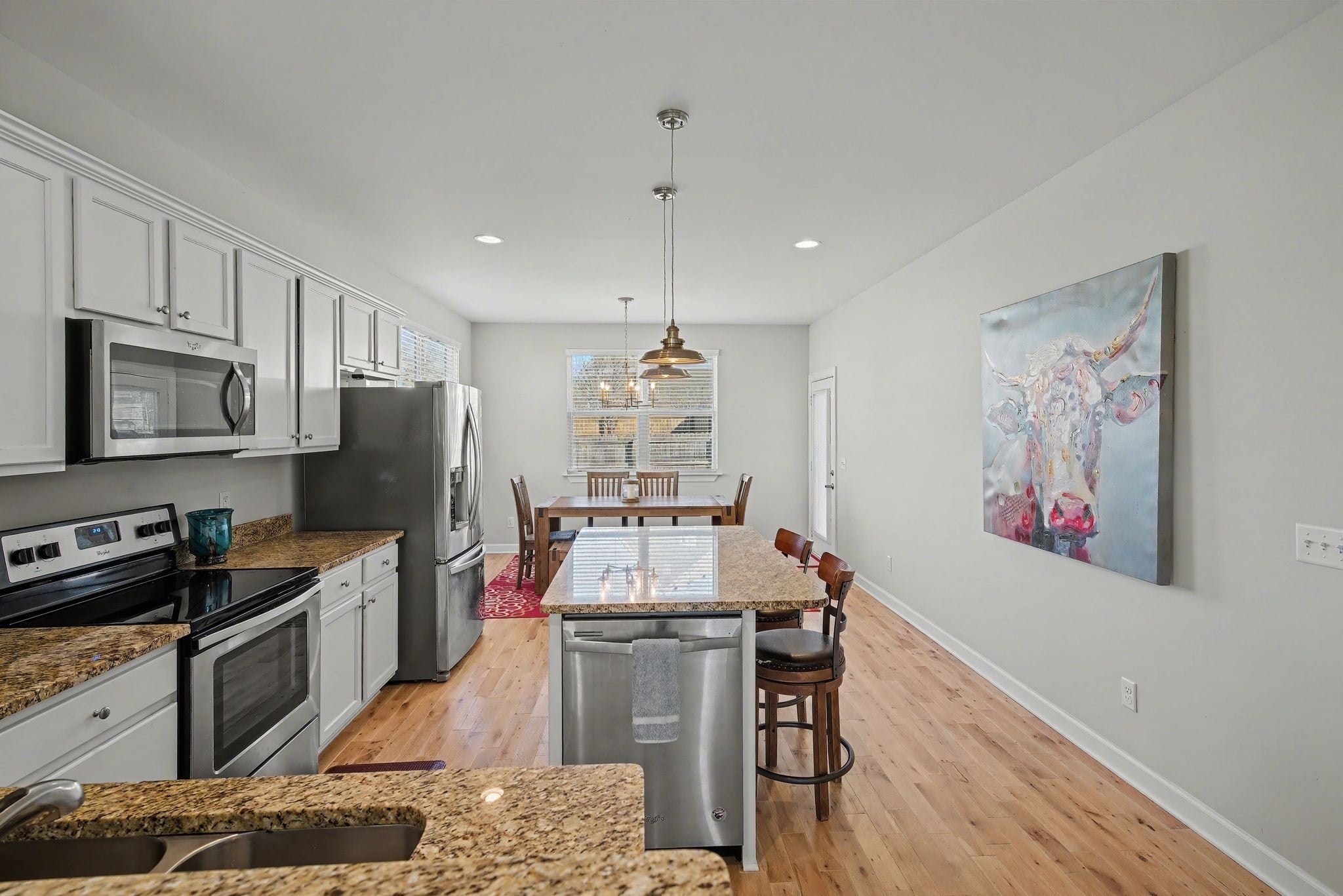 - Built-In Electric Range, Dishwasher, Dryer, Freezer, Microwave, Refrigerator, Stainless Steel Appliance(s), Washer