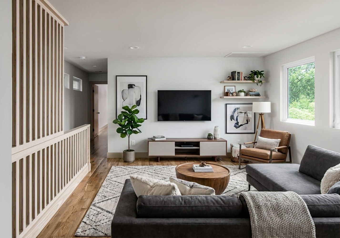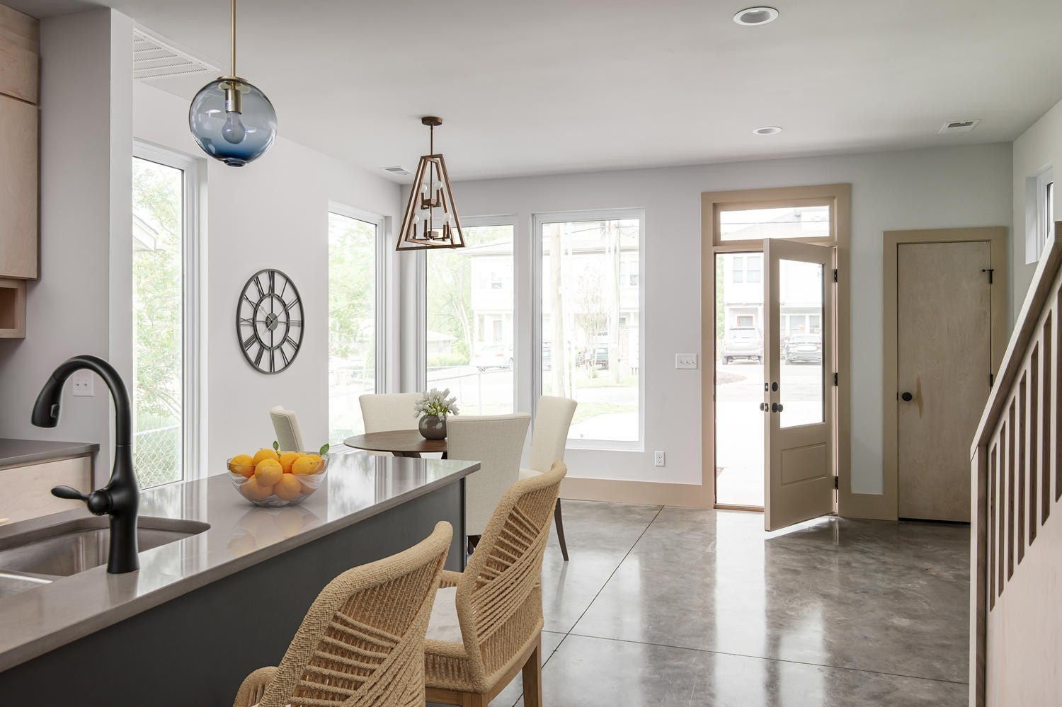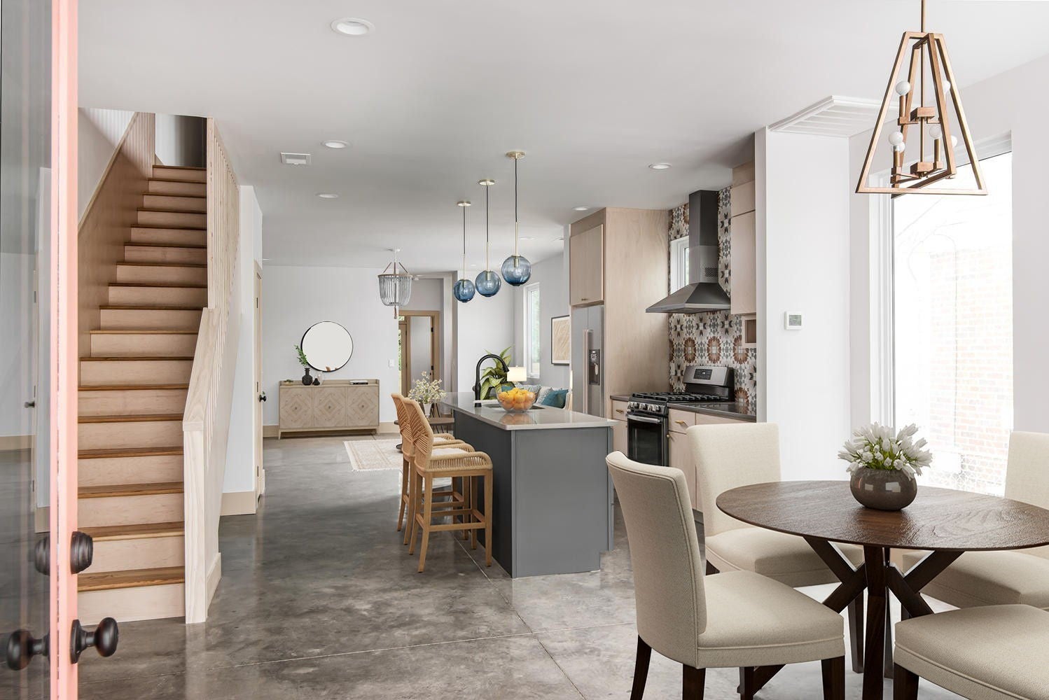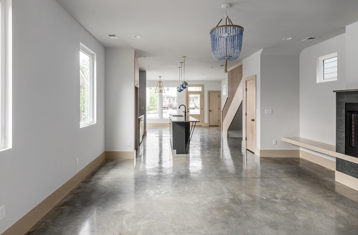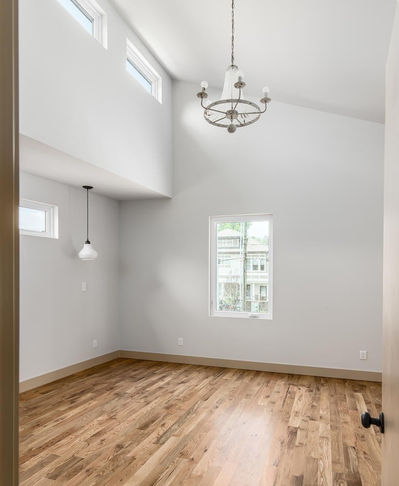 This contemporary home built in 2020 in East Nashville offers 3 bedrooms, 3 bathrooms, and 2,144 square feet of well designed living space. The open layout is filled with natural light and features concrete and hardwood floors, quartz and concrete countertops, and wood accent walls throughout. A custom wood staircase serves as a standout architectural feature. The kitchen includes a gas range, stainless appliances, and a reverse osmosis water filtration system, opening seamlessly to a café style dining area and living room with a gas fireplace. Automatic roller shades are included in the living and dining area. The main level includes a bedroom that works well as a home office or guest room. Upstairs you will find the primary suite, one additional bedroom and bath, and a bonus space perfect for a media room. The primary suite features vaulted ceilings, a private balcony, a large walk in closet, and a bathroom with double vanity and walk in shower. The fully fenced backyard includes a rear deck and garden shed. A clean, modern home in one of Nashville's most sought after neighborhoods. Home is eligible for 100% financing with no mortgage insurance for qualified buyers. Contact listing agent for details.