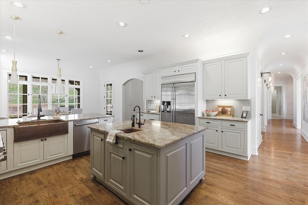 Nestled within an exclusive gated community between Forest Hills and the heart of Brentwood, this incredible estate offers privacy, space, and timeless appeal. Set on 3.4 picturesque acres, the five-bedroom home is thoughtfully designed for both everyday comfort and elegant entertaining. Highlights include a chef's kitchen, multiple inviting living areas, and a serene main-level primary suite. Step outside to a spacious screened-in porch overlooking a fully wooded backdrop, providing complete privacy and a peaceful retreat year-round.