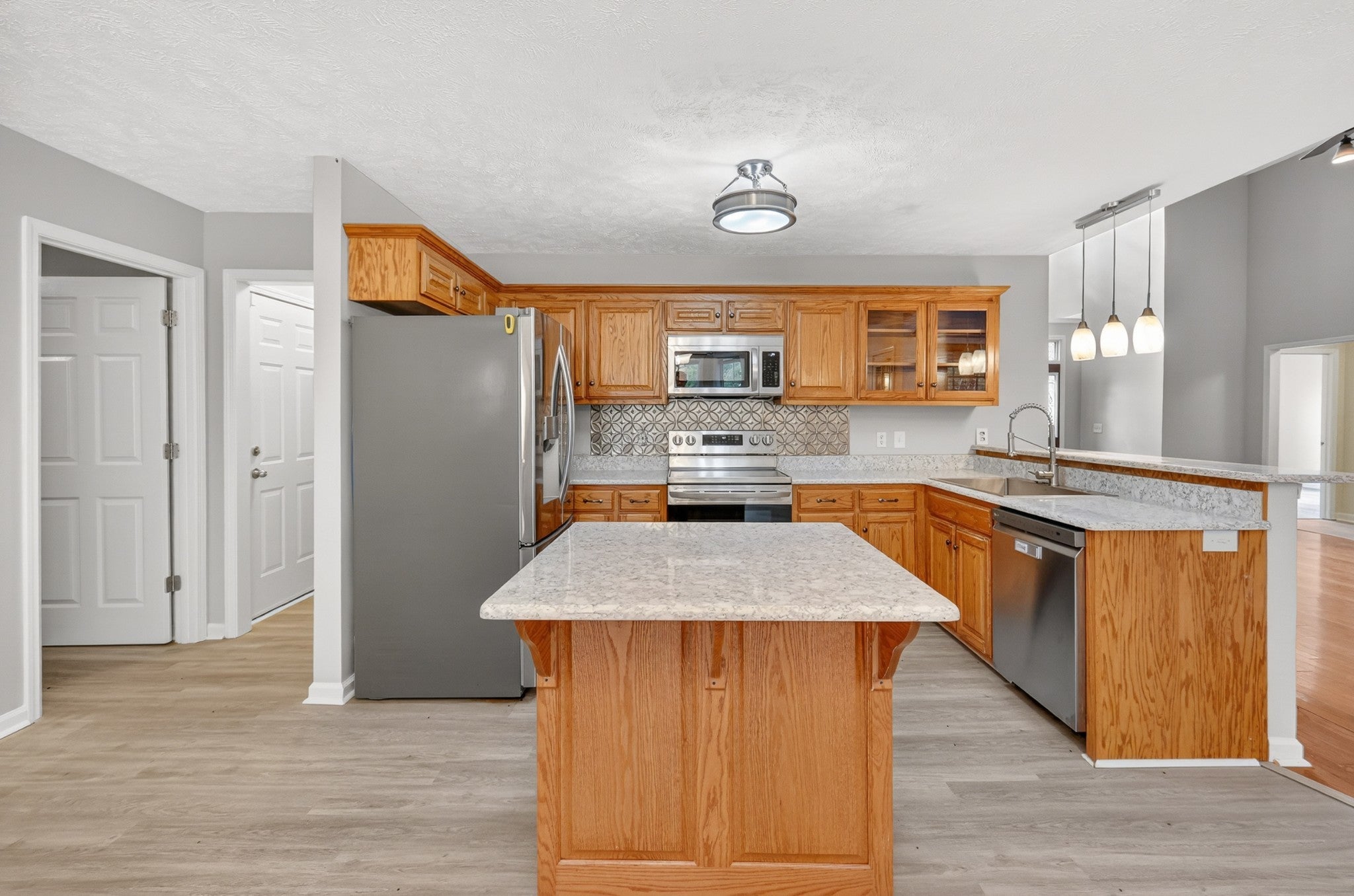 - Electric Range, Dishwasher, Microwave, Refrigerator