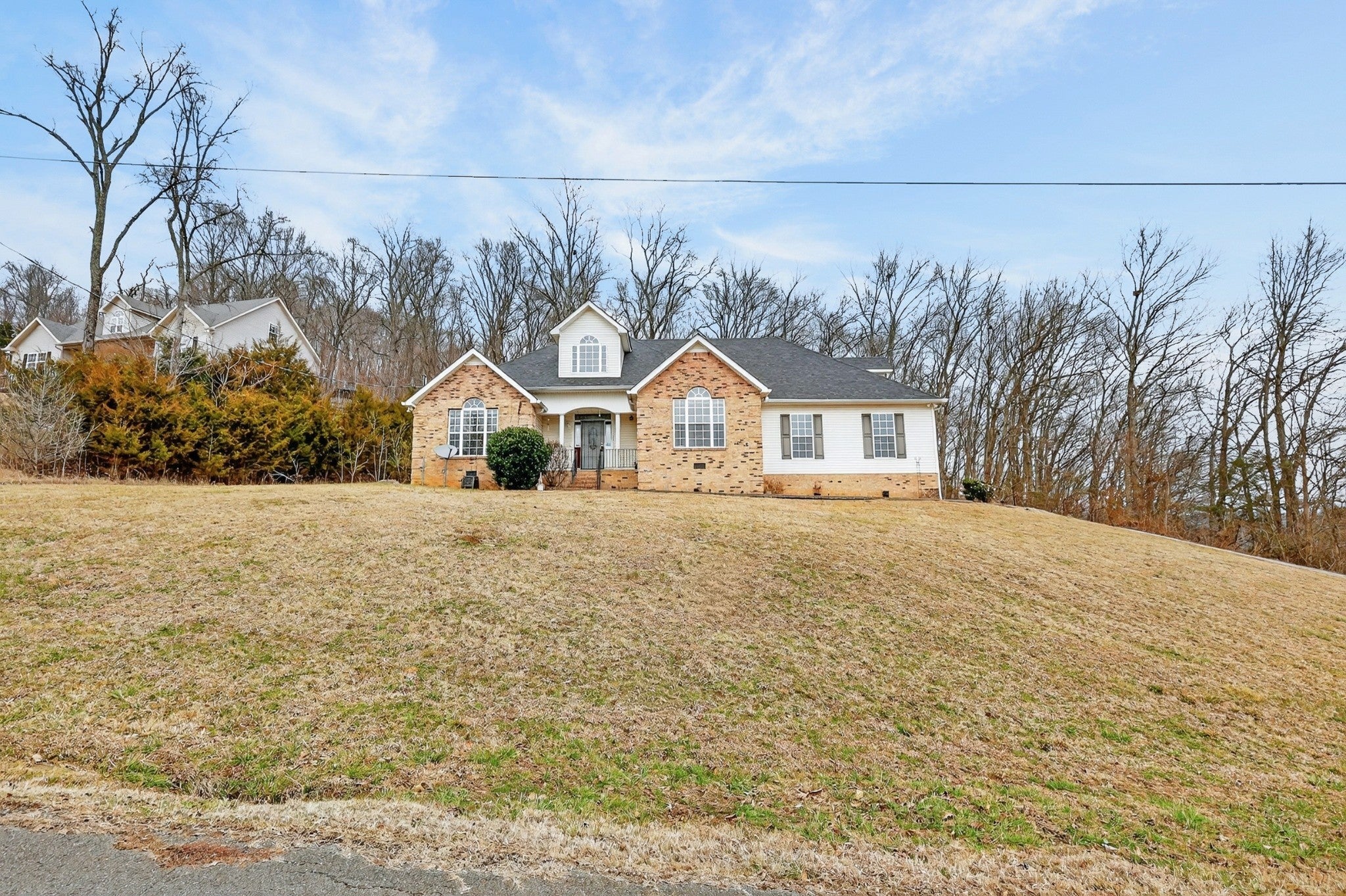 Beautiful hilltop home with scenic views! This 3-bedroom, 2-bath home offers convenient main-level living with a spacious bonus room upstairs and an attached 2-car garage. Situated on 1.11 acres in desirable Covered Bridge Estates, the property provides privacy and peaceful surroundings. Inside, you’ll find hardwood floors, cathedral ceilings, and a cozy wood-burning fireplace. Enjoy relaxing or entertaining on the large screened-in porch while taking in the sights and sounds of nature. Private backyard with natural views from both the front and back of the home. All appliances remain.