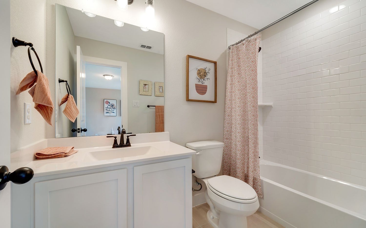 The Concho is a beautifully designed five-bedroom home offering exceptional space, flexibility, and refined comfort. A welcoming foyer opens to a private main-level bedroom, while the light-filled two-story family room anchors the open-concept layout and flows seamlessly into the oversized kitchen with granite countertops, island, and breakfast area. The main-level primary suite provides a private retreat with a spa-inspired bath, separate tub and shower, and expansive walk-in closet. Upstairs features three additional bedrooms, two full baths, and a generous game room—perfect for entertaining or everyday living. A standard three-car garage and optional covered patio complete this thoughtfully crafted home.