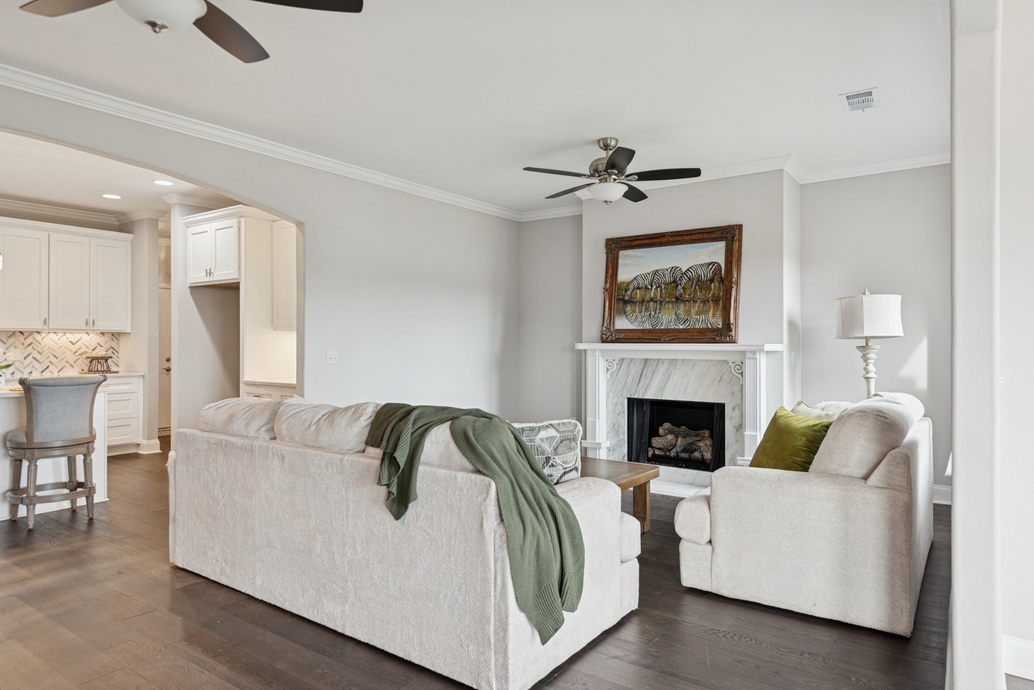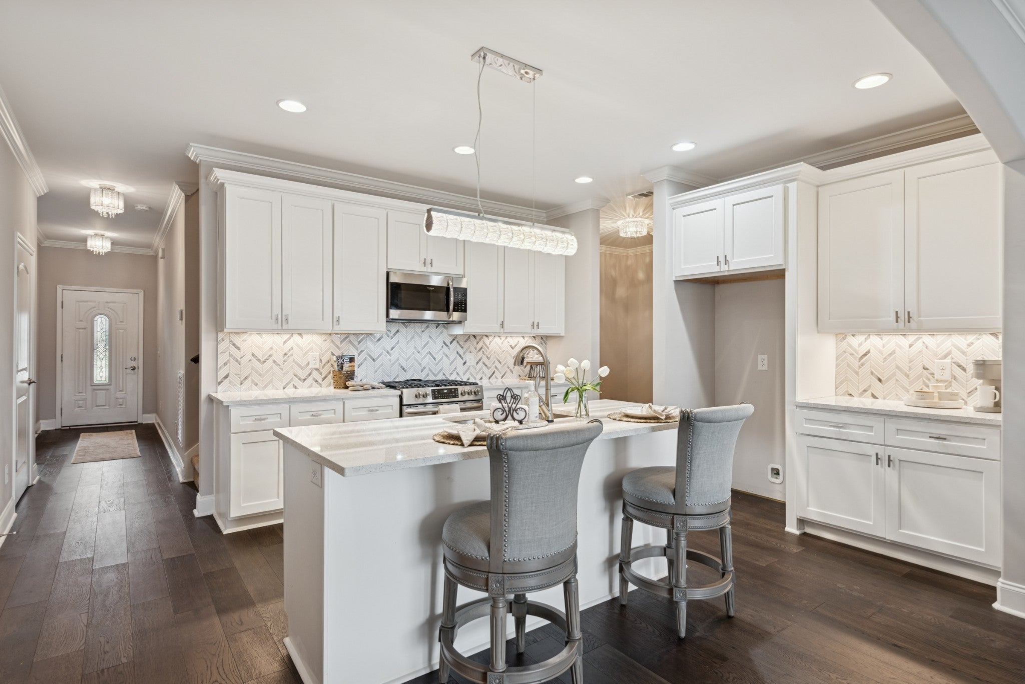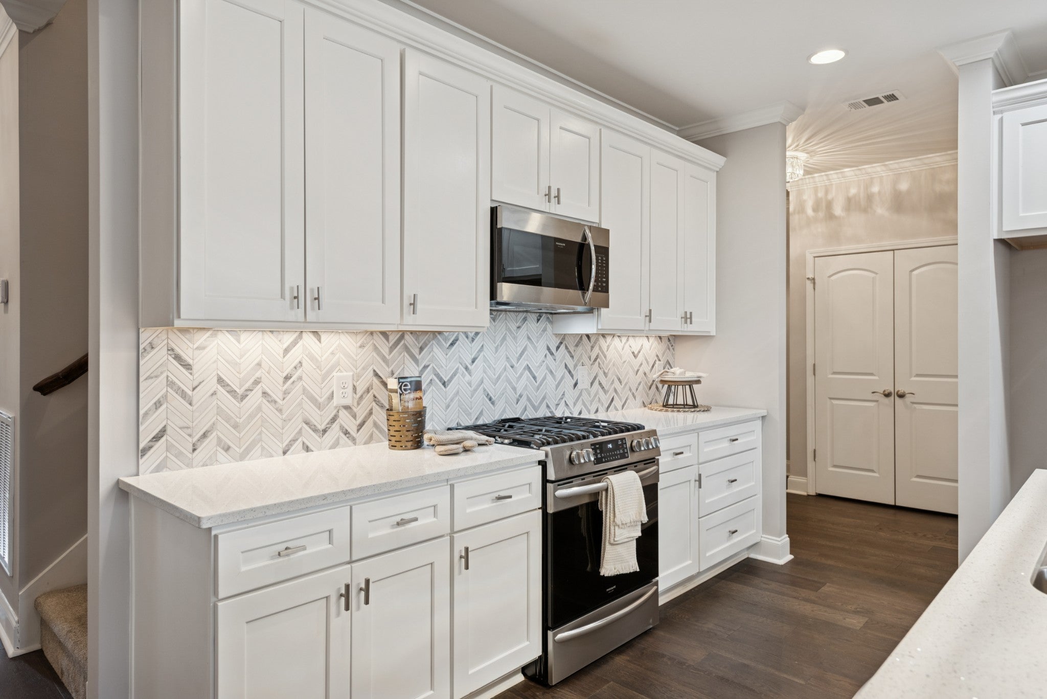 This beautiful villa features hardwood floors, quartz countertops in the kitchen, a gas stove, and crisp white cabinetry. The spacious primary suite includes a large bedroom, an oversized walk-in closet, and a tile shower with quartz countertops in the primary bath. Two bedrooms are conveniently located on the main level. Situated on a quiet cul-de-sac lot, the home also offers a large patio perfect for entertaining while enjoying beautiful views. The HOA covers all landscaping and exterior maintenance, providing a truly low-maintenance lifestyle. Residents also enjoy neighborhood amenities such as a pool, clubhouse, and sidewalk-lined streets perfect for walking and relaxation.