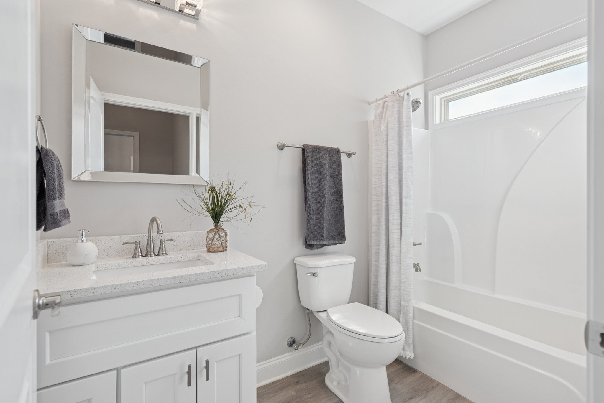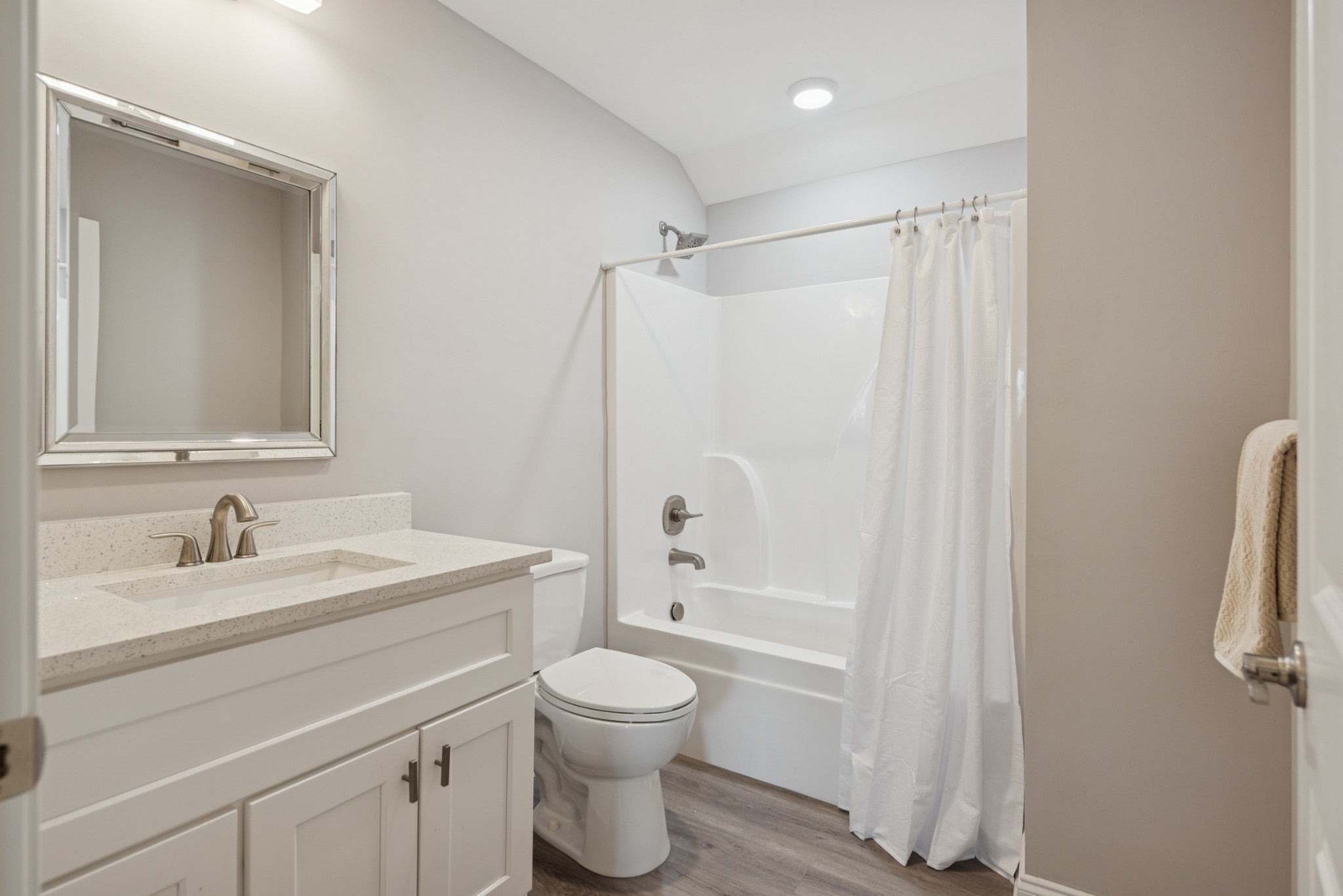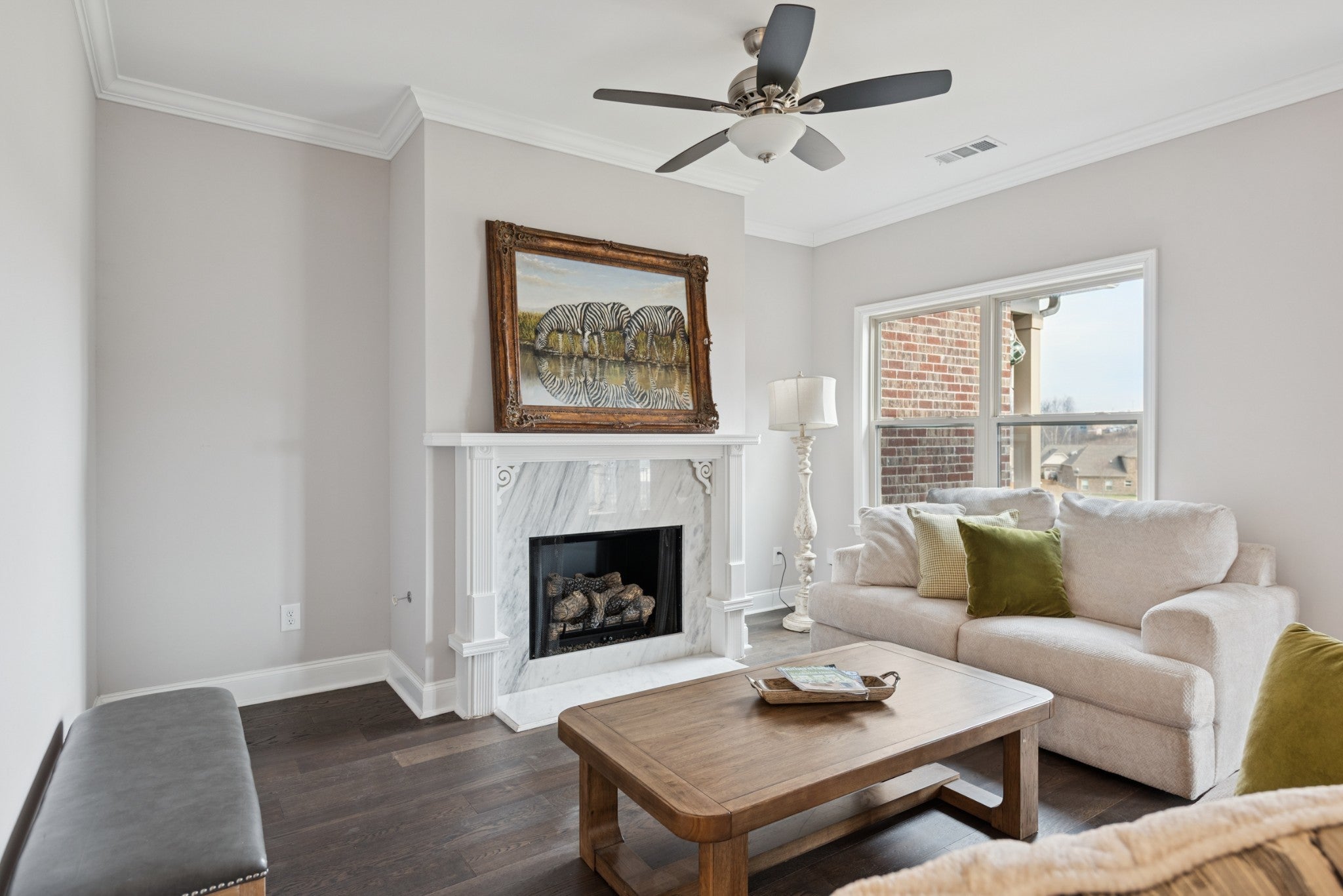 This beautiful villa features hardwood floors, quartz countertops in the kitchen, a gas stove, and crisp white cabinetry. The spacious primary suite includes a large bedroom, an oversized walk-in closet, and a tile shower with quartz countertops in the primary bath. Two bedrooms are conveniently located on the main level. Situated on a quiet cul-de-sac lot, the home also offers a large patio perfect for entertaining while enjoying beautiful views. The HOA covers all landscaping and exterior maintenance, providing a truly low-maintenance lifestyle. Residents also enjoy neighborhood amenities such as a pool, clubhouse, and sidewalk-lined streets perfect for walking and relaxation.