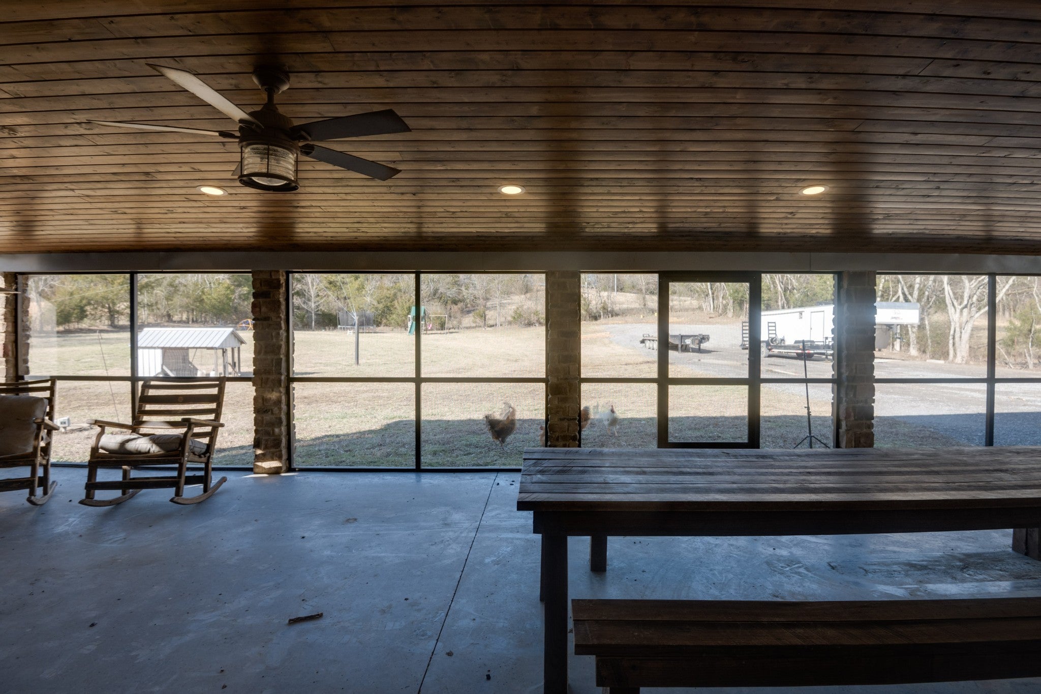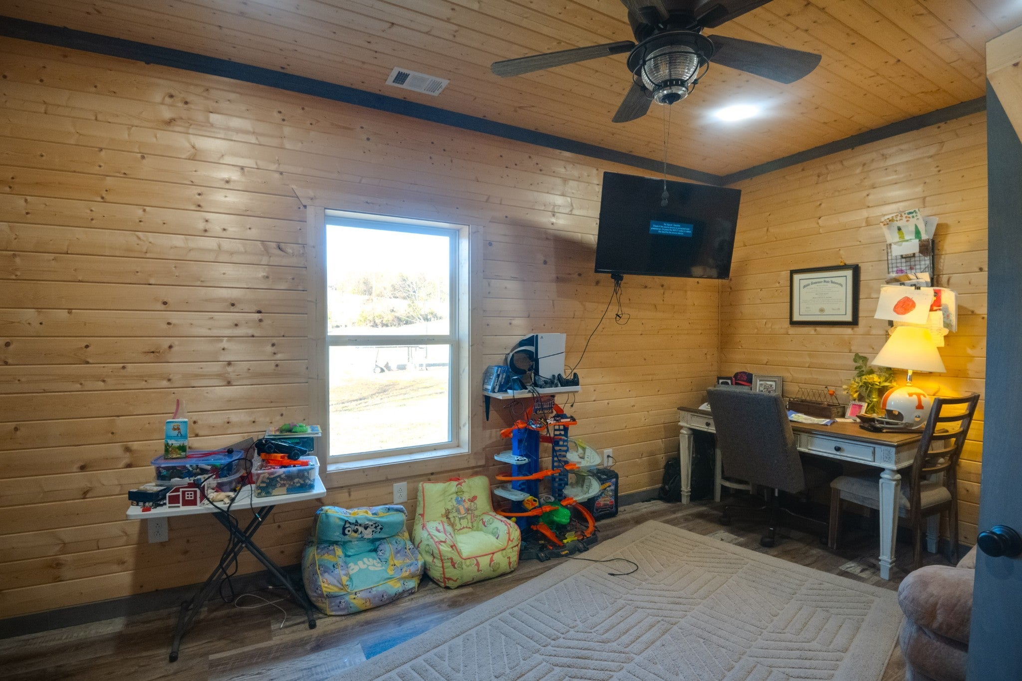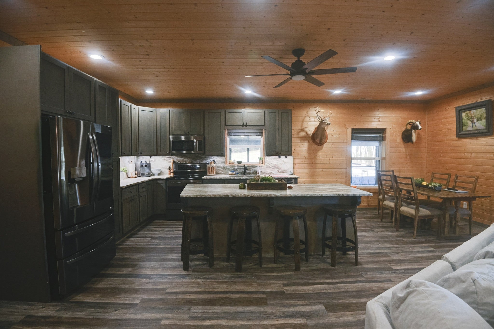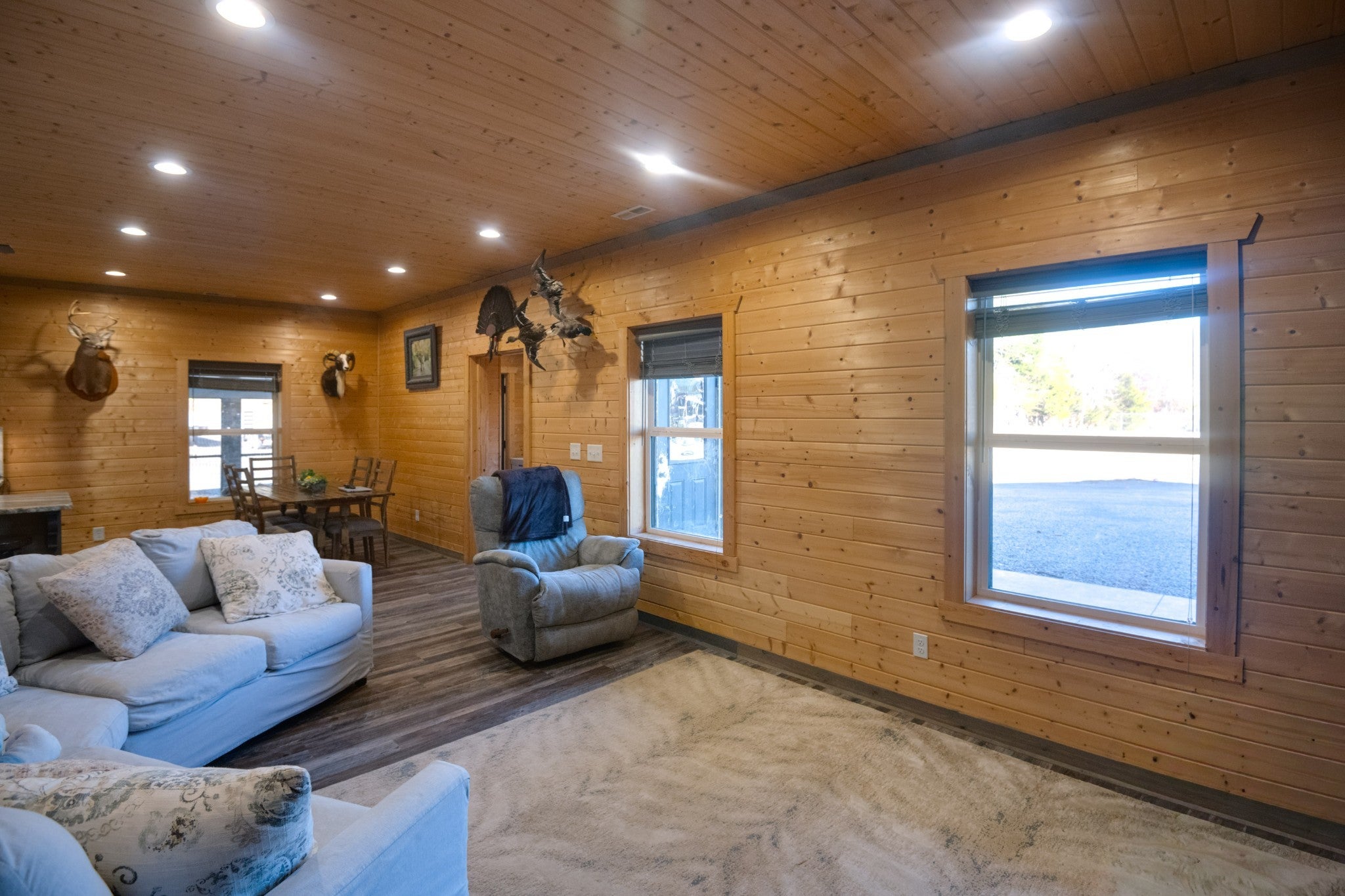 This stunning barndominium blends rustic charm with modern luxury on 2.35 private acres, offering over 2,800 sq ft of thoughtfully designed living space. The 5-bedroom home features tongue-and-groove walls and ceilings, a chef’s kitchen with leathered granite countertops, walk-in pantry, mud room, and tankless water heater. Enjoy three fireplaces, including a wood-burning fireplace on the screened-in porch/garage, plus a dedicated home office for work or creative space. The primary suite includes a safe room and spa-style tiled shower with dual shower heads, while a second master suite is perfect for guests or multi-generational living. The showstopper is the nearly 4,000 sq ft heated and cooled shop, fully spray-foam insulated with a loft, full bathroom, and expansive space ideal for vehicles, hobbies, or a home-based business. A rare property that delivers space, comfort, and versatility—this barndominium is more than a home, it’s a lifestyle.