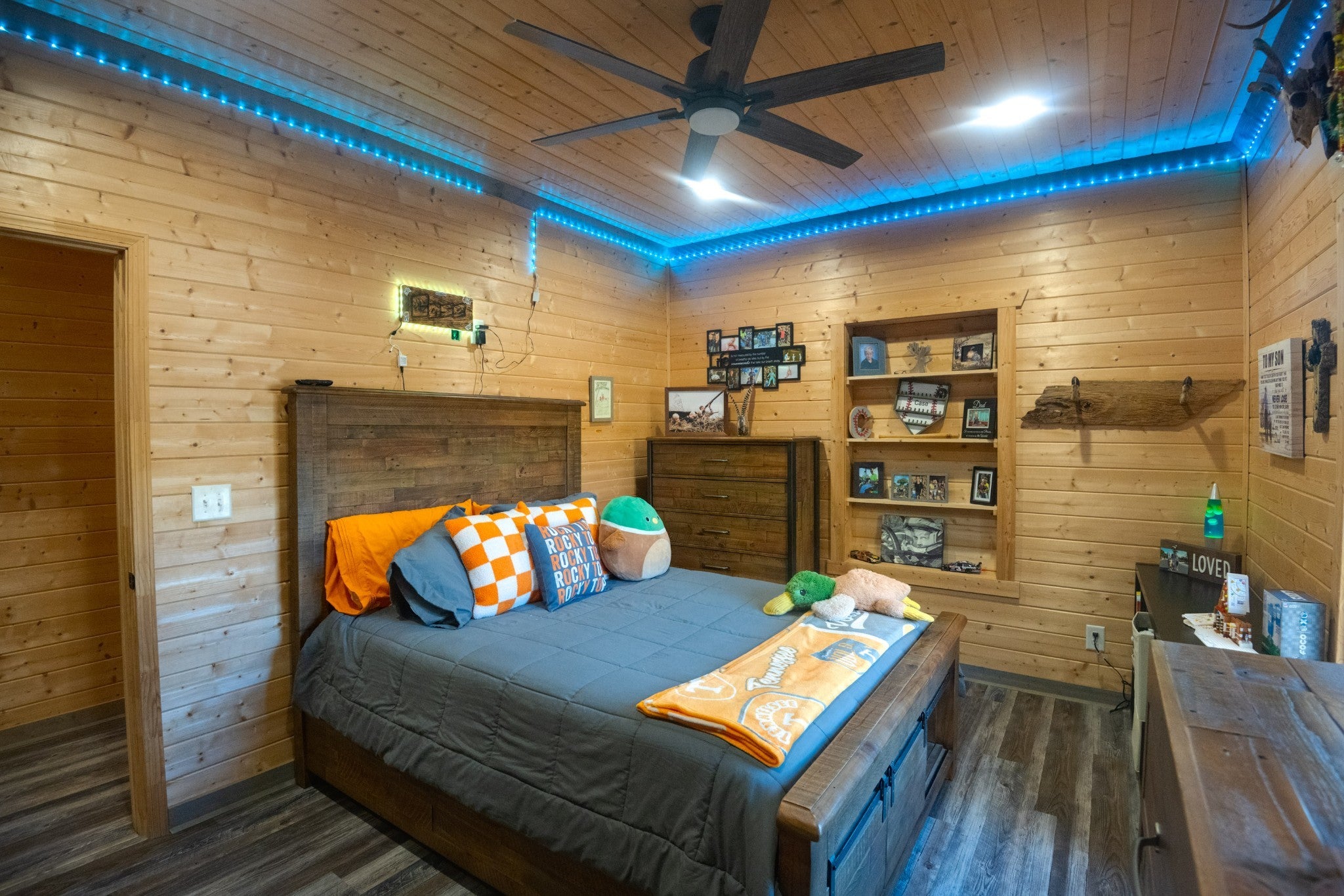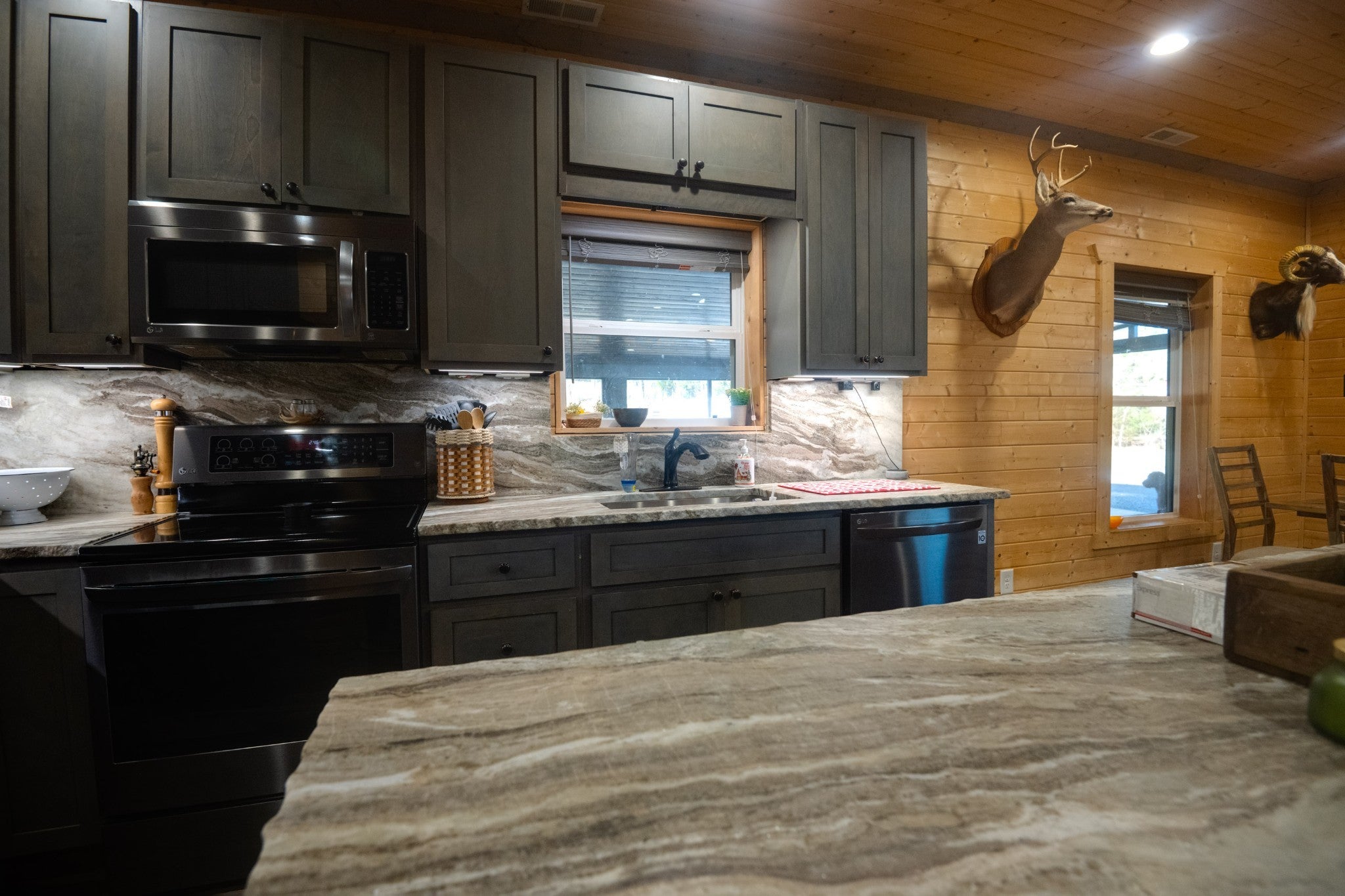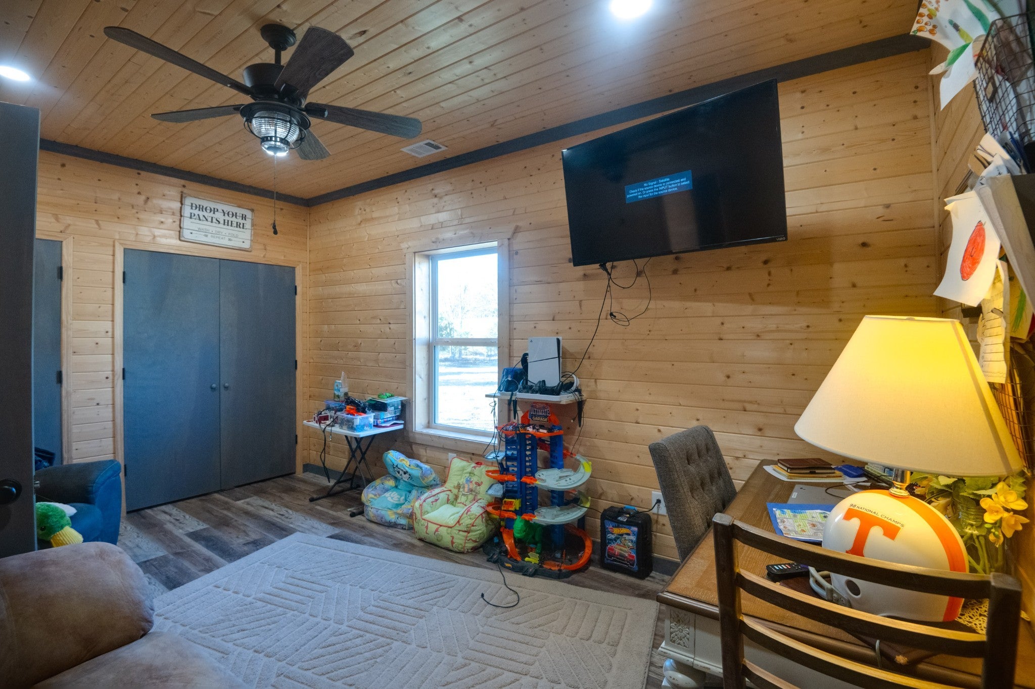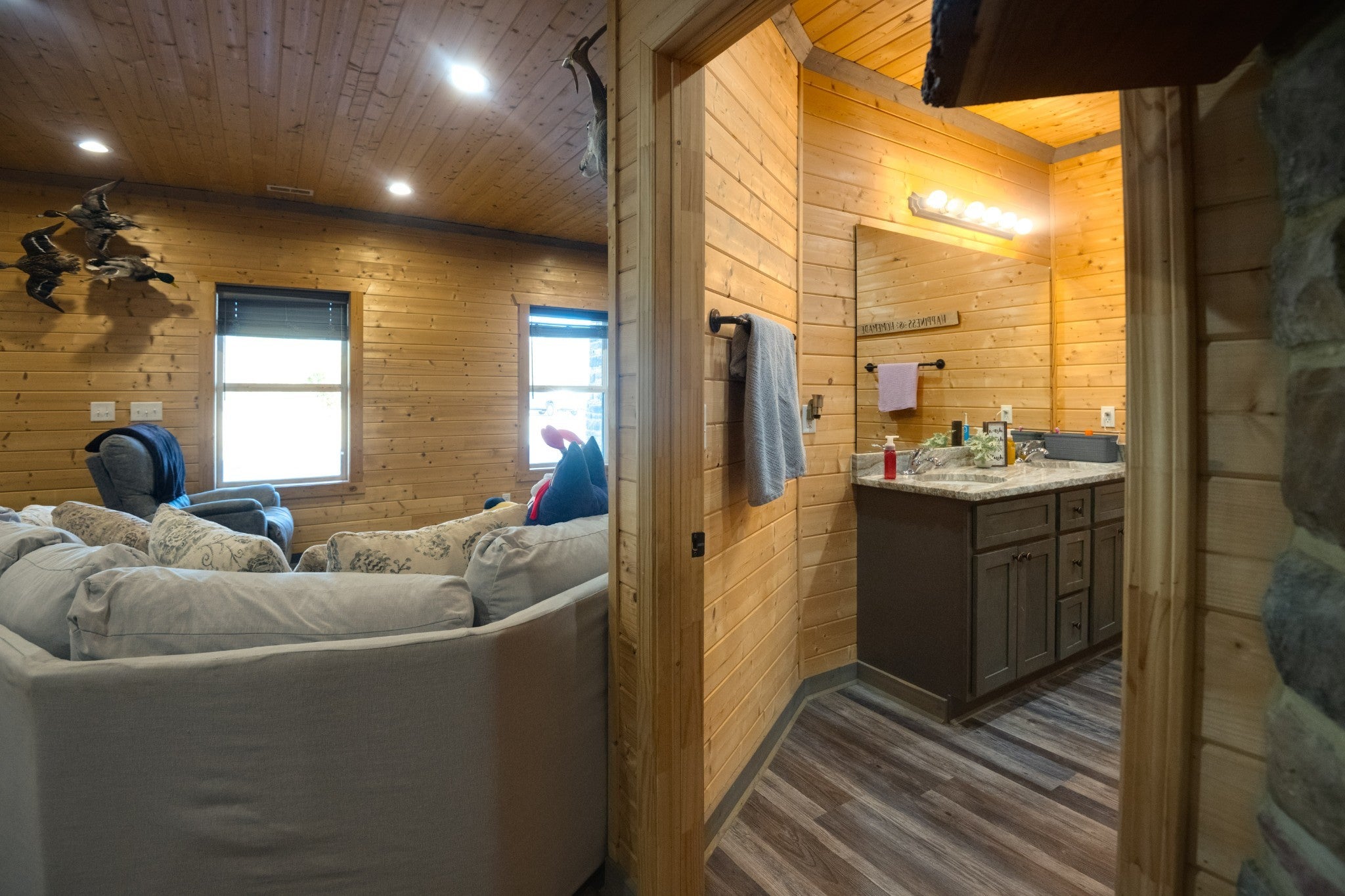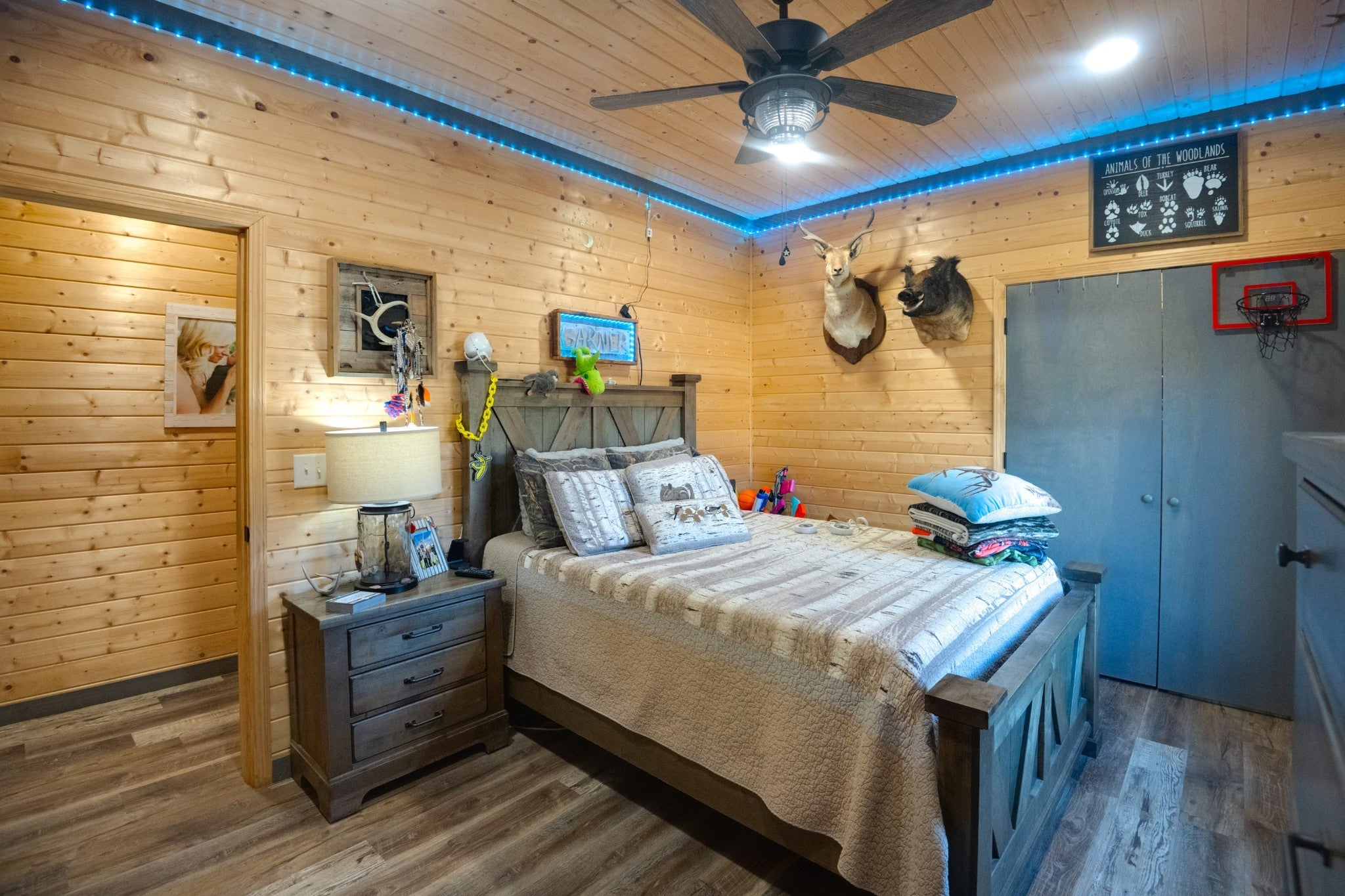 This stunning barndominium blends rustic charm with modern luxury on 2.35 private acres, offering over 2,800 sq ft of thoughtfully designed living space. The 5-bedroom home features tongue-and-groove walls and ceilings, a chef’s kitchen with leathered granite countertops, walk-in pantry, mud room, and tankless water heater. Enjoy three fireplaces, including a wood-burning fireplace on the screened-in porch/garage, plus a dedicated home office for work or creative space. The primary suite includes a safe room and spa-style tiled shower with dual shower heads, while a second master suite is perfect for guests or multi-generational living. The showstopper is the nearly 4,000 sq ft heated and cooled shop, fully spray-foam insulated with a loft, full bathroom, and expansive space ideal for vehicles, hobbies, or a home-based business. A rare property that delivers space, comfort, and versatility—this barndominium is more than a home, it’s a lifestyle.