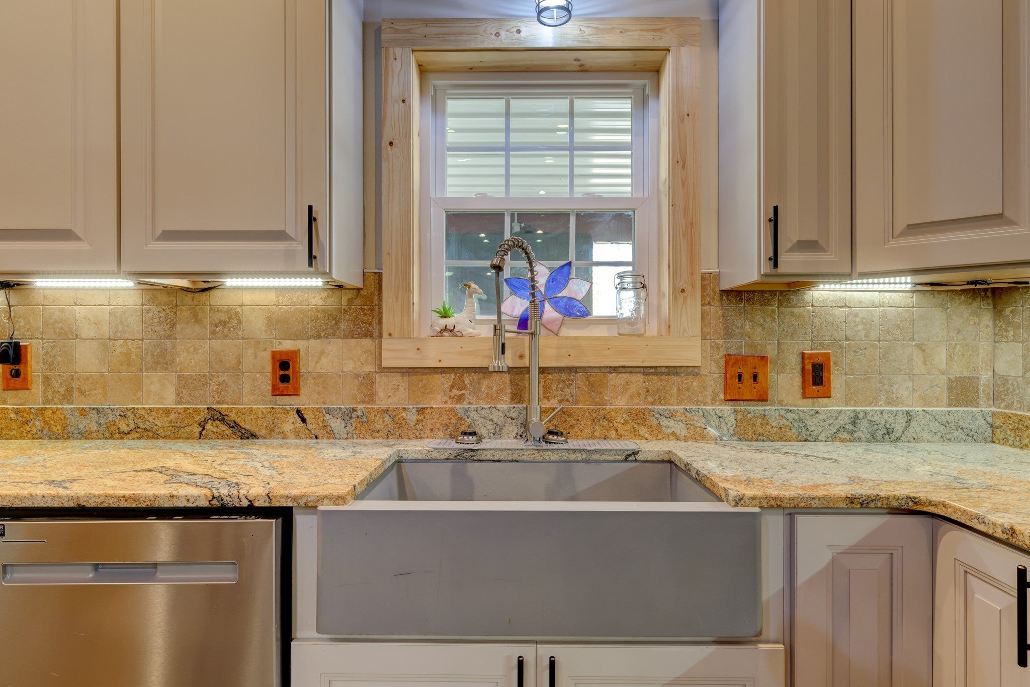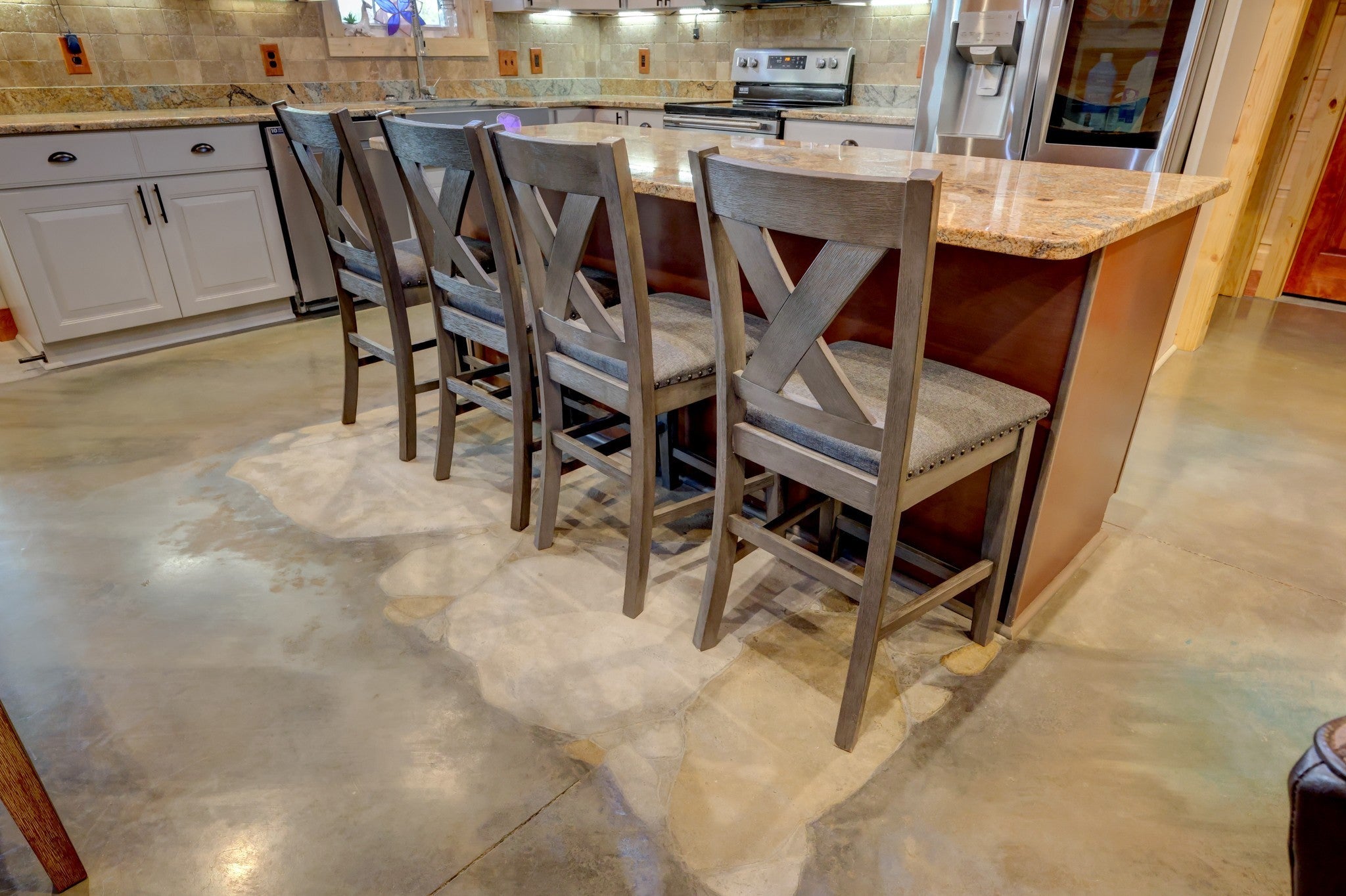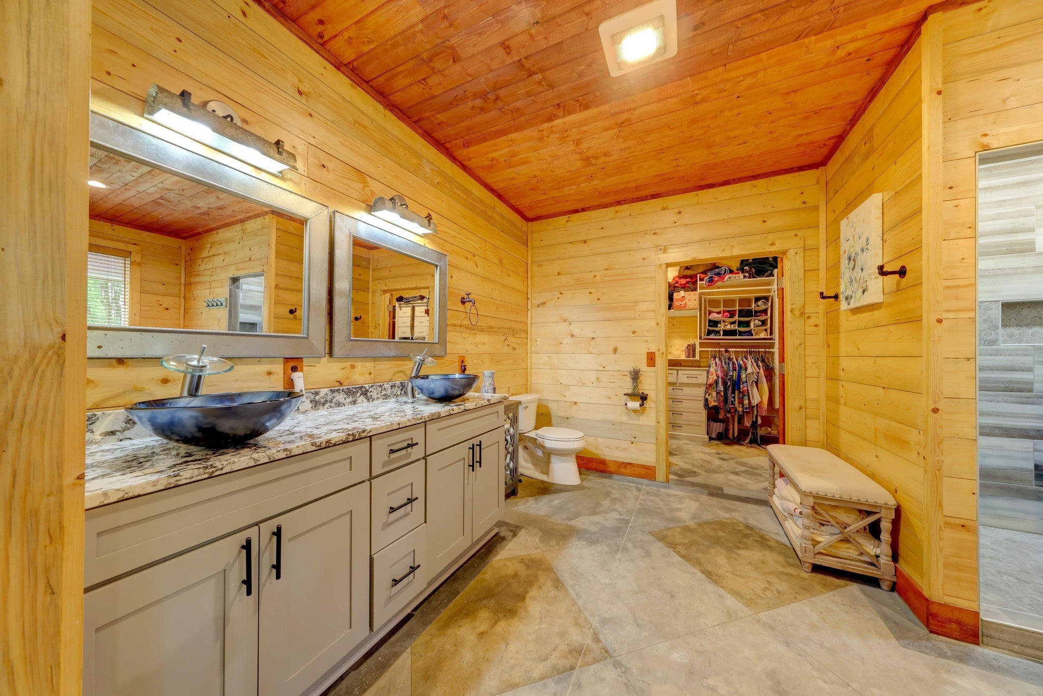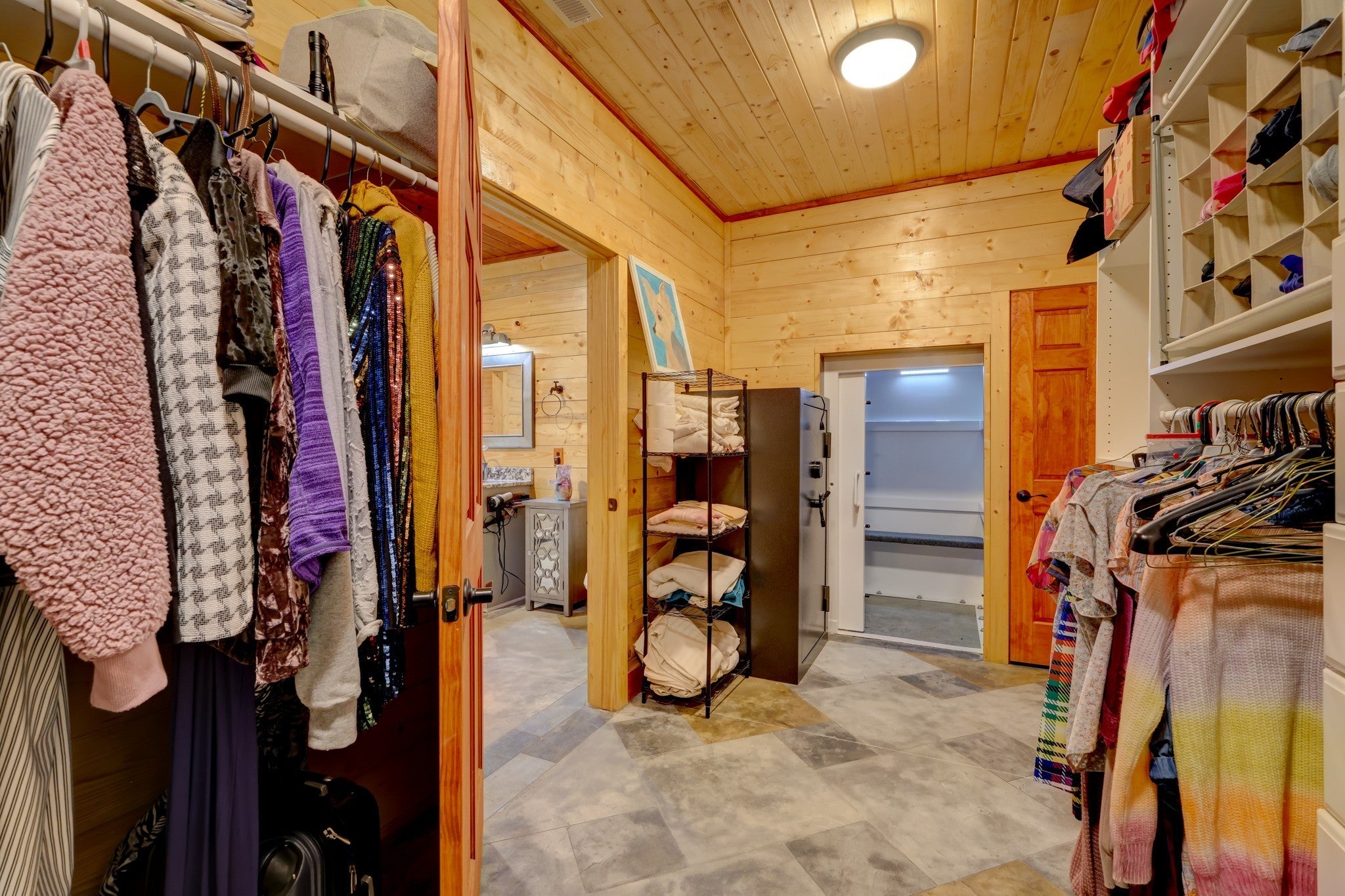 Welcome home to this breathtaking barndominium, where quality craftsmanship meets country serenity. Nestled on 4 private acres, this corrugated metal-constructed home with a durable metal roof (complete with leaf guard) was built with exceptional attention to detail and energy efficiency in mind—featuring spray foam insulation throughout the entire structure, 4” to 6” thick, keeping the home comfortable year-round. Step through the grand 8-foot solid pecan wood double doors into a bright, open-concept living space. Beautiful floors flow throughout, leading to a spectacular vented propane fireplace—the perfect centerpiece for cozy evenings. The custom kitchen is a chef’s dream, featuring marble countertops, a farmhouse sink, custom cabinetry, stainless steel appliances and a spacious open pantry. The primary suite is a peaceful retreat, wrapped in warm pine wood walls with solid wood blinds that convey. Continue into the luxurious primary bath, where you’ll find a clawfoot tub, custom cabinetry and a gorgeous walk-in shower—a true spa-like escape. The primary closet offers generous space and includes a walk-in storm shelter certified for Category 4 winds and equipped with an automatic light. Once you’ve made it through the rest of this beauty and all that it has to offer, step out back through the double French doors to your private oasis. Enjoy the covered back patio with cement overlay floors designed to look like wood, dual ceiling fans, a designated space pre-wired for a hot tub and a fire pit area — all with no view of neighbors for ultimate privacy. Every inch of this home was thoughtfully designed, from the foam-insulated garage to the portable generator hookup outside the property, ensuring comfort and peace of mind in any season. If you’ve been searching for the perfect mix of rustic elegance, privacy and practicality—this one-of-a-kind barndominium is it.
