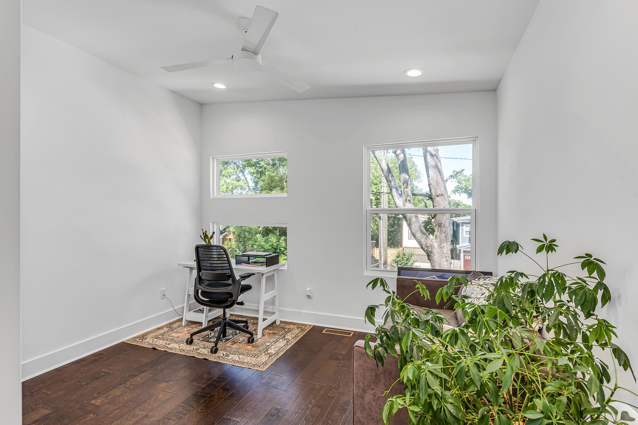 Open concept, sleek finishes, rich natural light, a fenced yard and an incredible primary suite. This home is less than 5 minutes to Germantown and Downtown and walking distance to the bustling Buchanan Strip. Parking is easy on the private parking pad, equipped with EV charging, and there's plenty of room for pets and entertaining at the fully-fenced back yard and covered patio. The first floor enjoys cool, polished concrete floors, quartz countertops, dedicated dining space and a spacious pantry. Upstairs features 3 bedrooms, all with real hardwood floors and large closets. The primary suite, located at the rear side of the 2nd floor for better quiet and privacy, features vaulted ceilings, amazing windows, double vanities and a roomy shower. Laundry included! 2.5X1 income to rent ratio and 550+ credit score preferred. Pets considered on case by case basis with deposit.