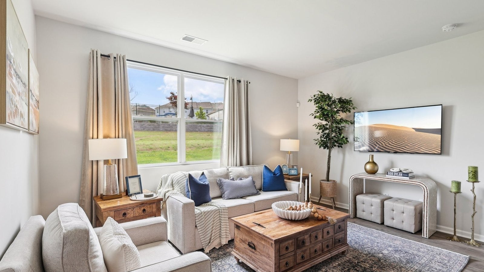 Cali plan- 4 bedrooms, 2 full ba. Ranch home. No REAR Neighbors! Open-concept, 9’ ceilings, quartz countertops in the kitchen and bathrooms, and Whirlpool stainless steel appliances. The kitchen features a large island, walk-in pantry, and ample cabinet space. The dining and living rooms flow seamlessly to a covered porch, ideal for relaxing or entertaining. The private primary suite fits a king bed and includes a double vanity, large walk-in closet, and linen closet. A laundry room and extra storage closet sit off the front hallway near the garage. Smart home features let you control lights, temperature, and more from your device whether home or away. No pricey upgrades, everything is inlcuded!!! No more stairs, all one level! Woodbridge Glen is a quiet beauty with rolling hills and lots of green space. Conveniently located 1 mi from I-40, halfway between both Mt. Juliet and Lebanon. The neighborhood features a beautiful pool, 2 spacious dog parks, playground, and a trail to the natural duck pond and pavilion. Amazing interest rates and incentives! Call today to schedule your visit!