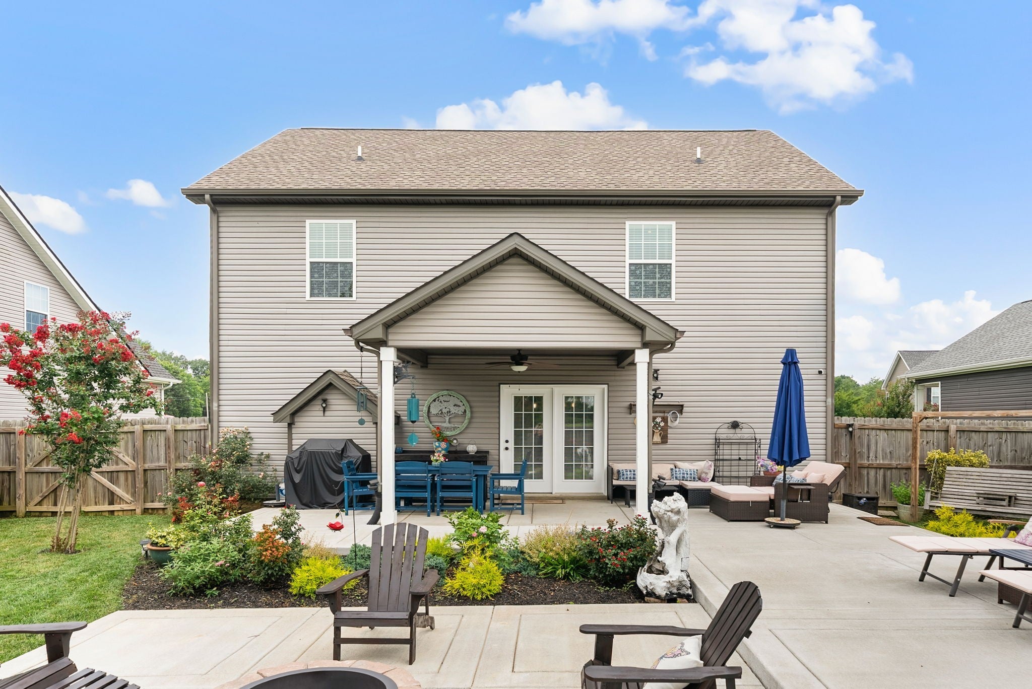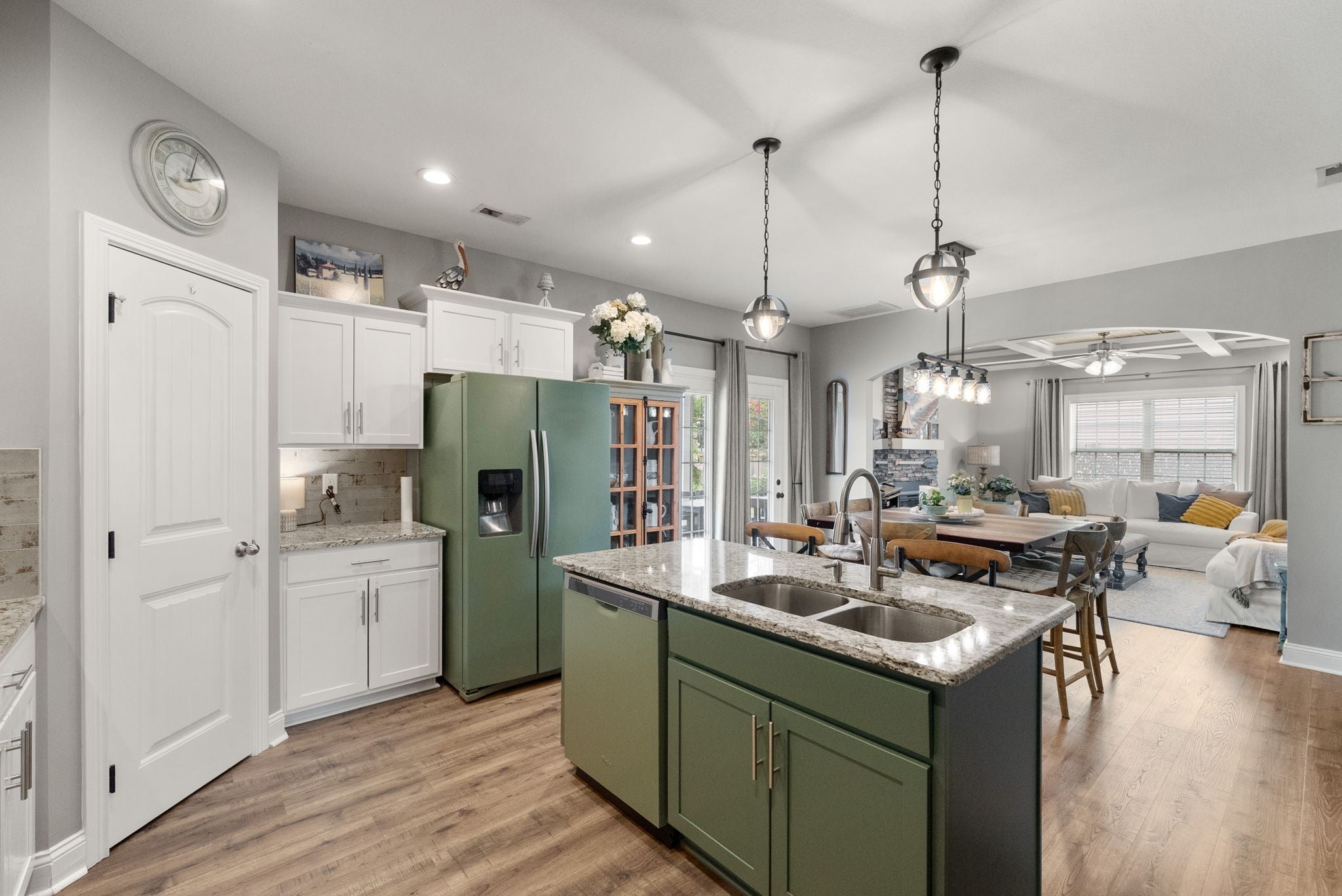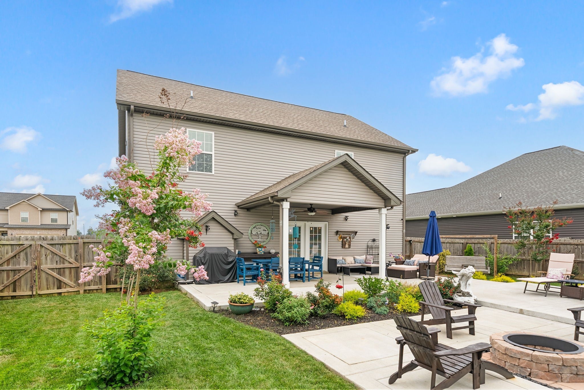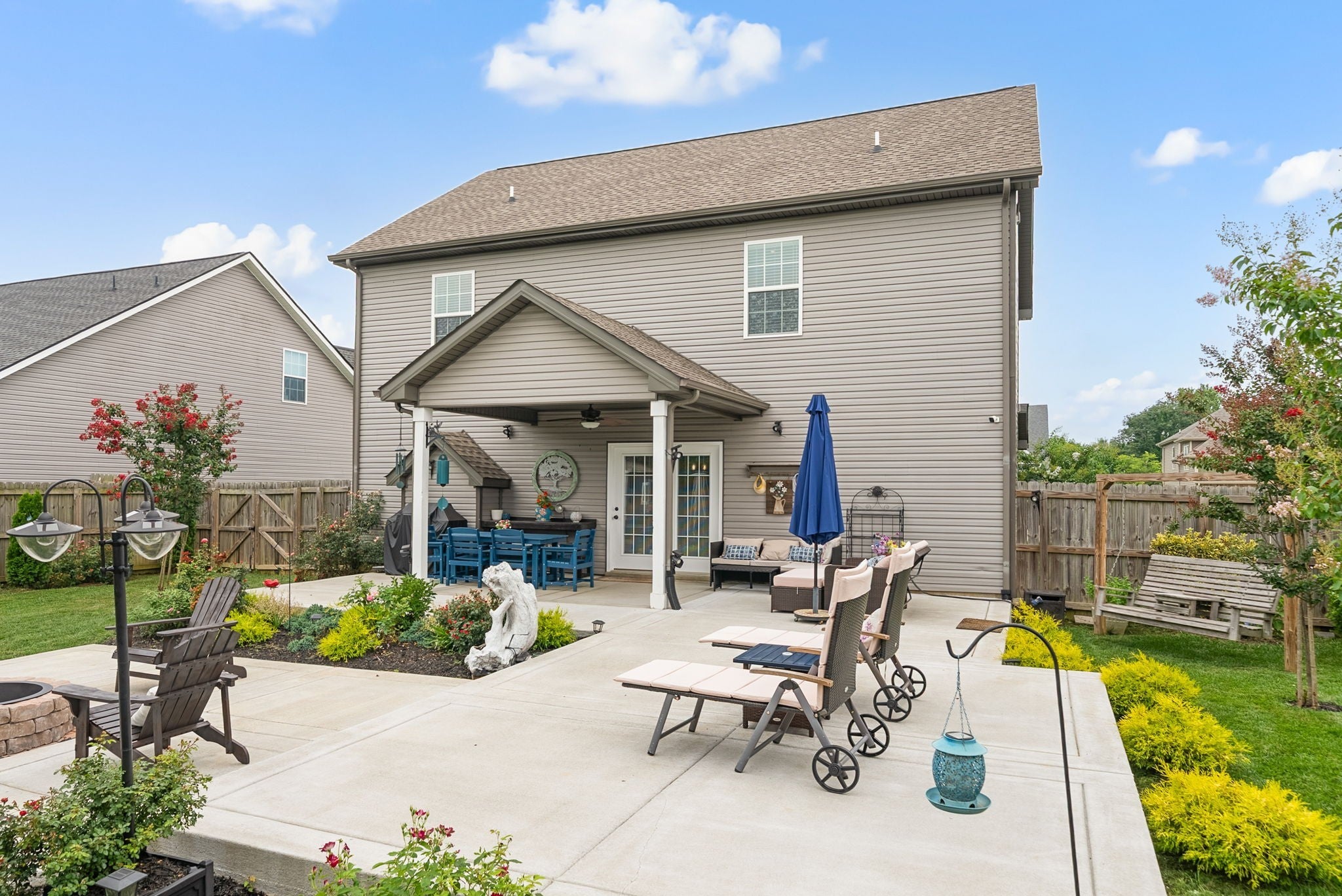 Better than new! This beautifully updated home near Fort Campbell features new flooring, a stylish new backsplash, and fresh paint throughout. The kitchen shines with white cabinets, granite countertops, stainless steel appliances, and a spacious island. A cozy living room with a coffered ceiling and electric fireplace adds warmth, while the formal dining room and eat-in kitchen offer flexible dining options. The master suite boasts a tray ceiling, a luxurious tile walk-in shower, double vanities, and a large walk-in closet. Outside, enjoy a freshly poured concrete patio and fenced backyard. All furniture negotiable!