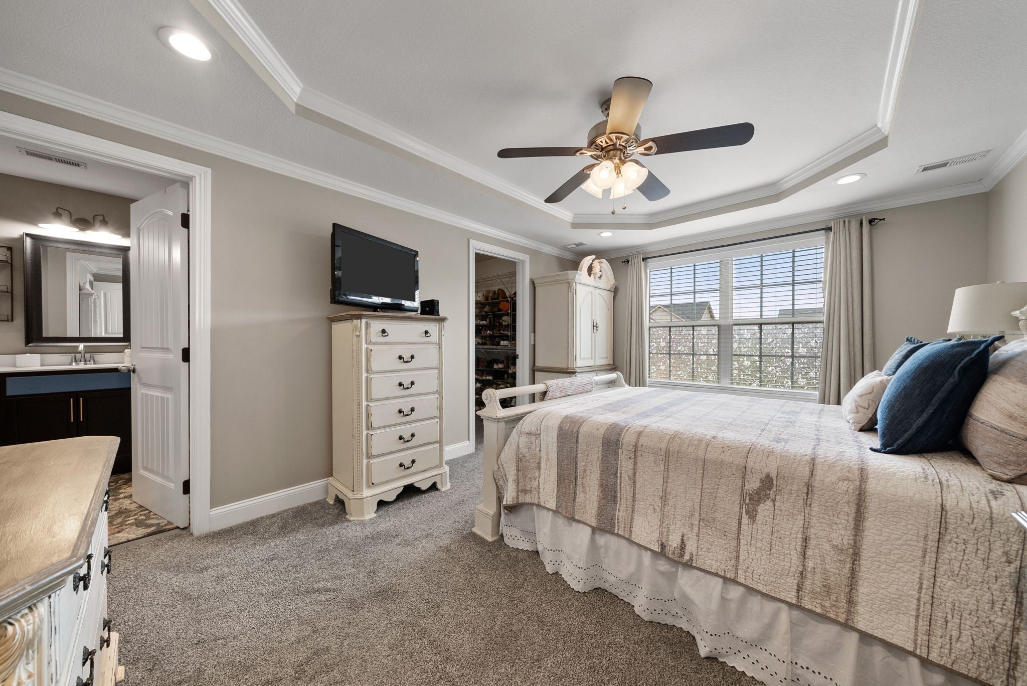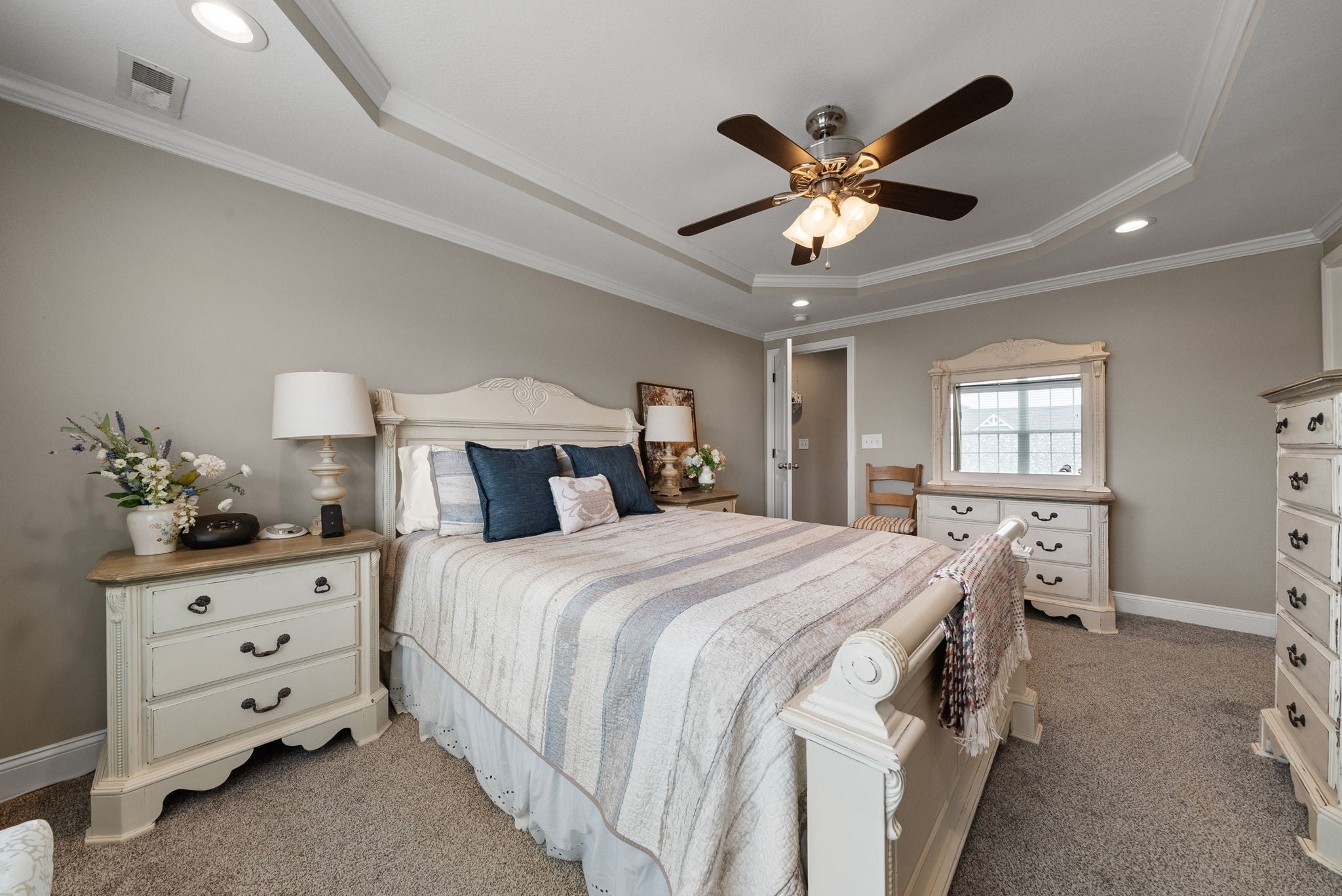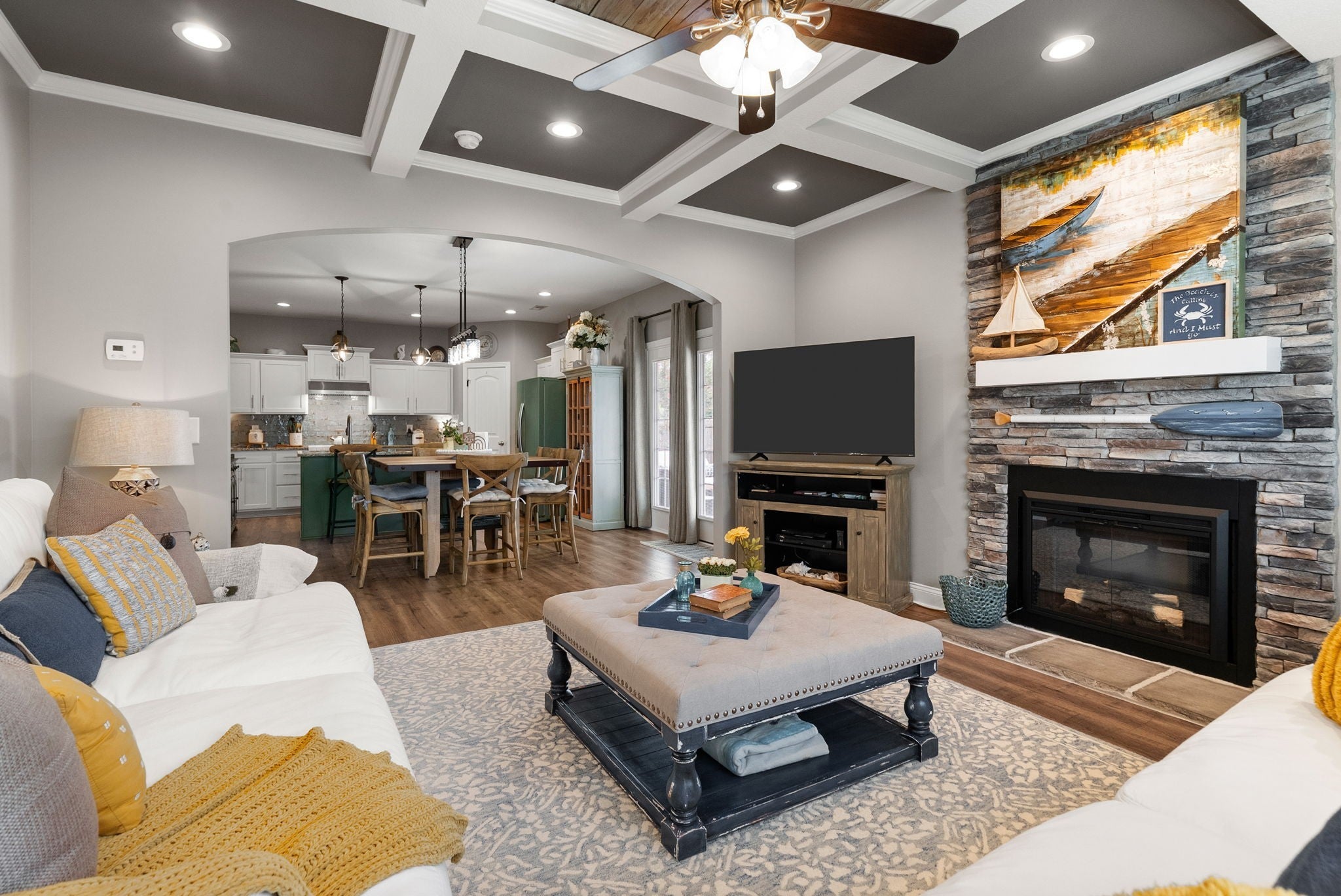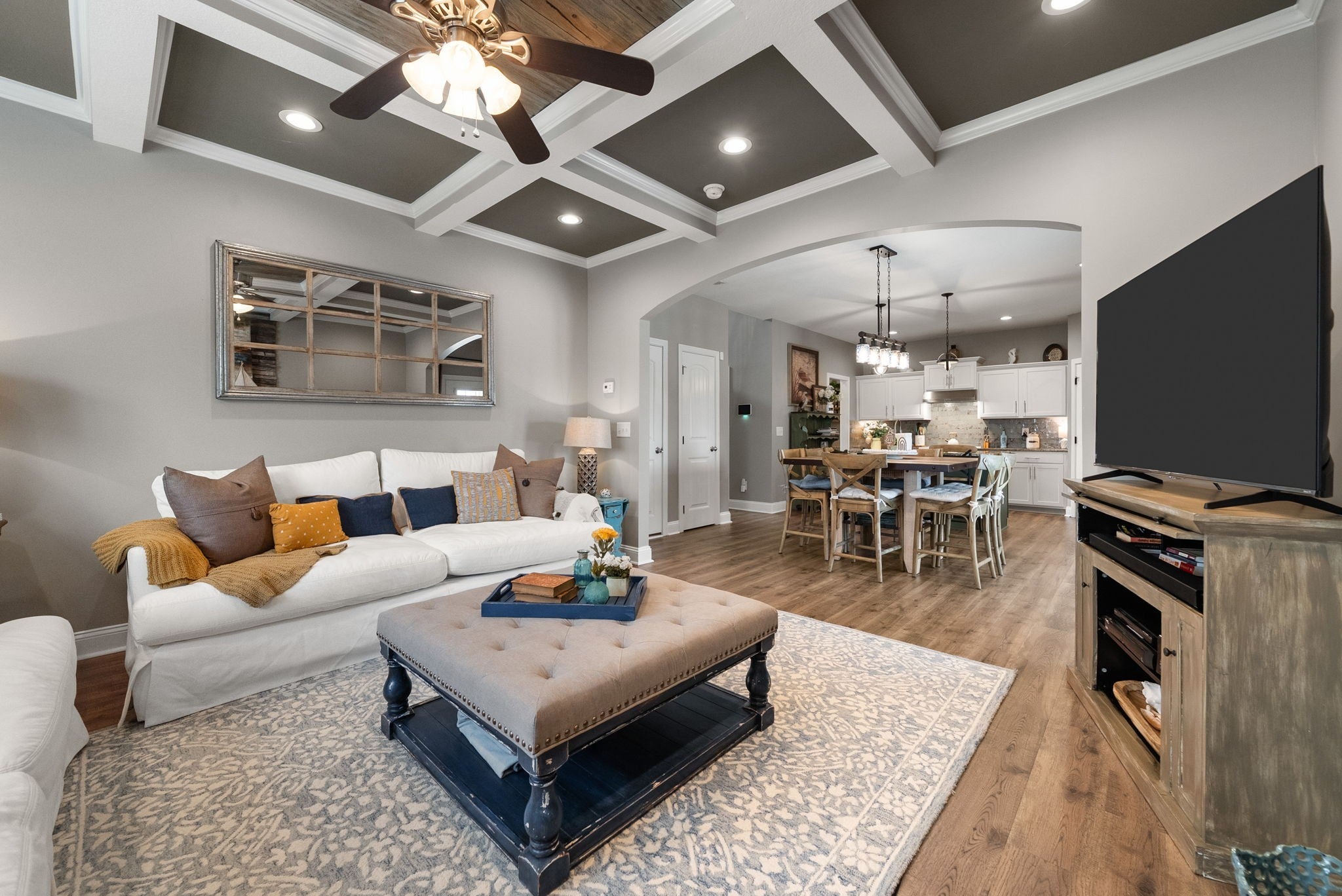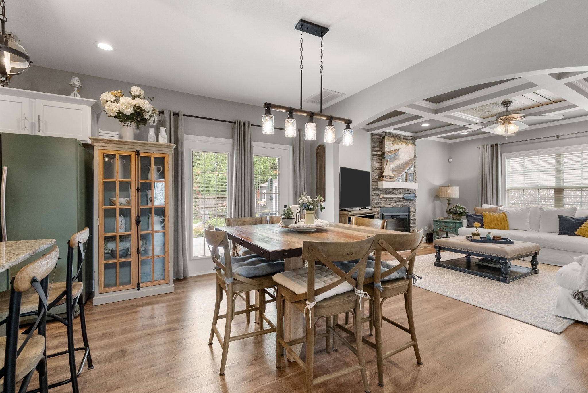 Better than new! This beautifully updated home near Fort Campbell features new flooring, a stylish new backsplash, and fresh paint throughout. The kitchen shines with white cabinets, granite countertops, stainless steel appliances, and a spacious island. A cozy living room with a coffered ceiling and electric fireplace adds warmth, while the formal dining room and eat-in kitchen offer flexible dining options. The master suite boasts a tray ceiling, a luxurious tile walk-in shower, double vanities, and a large walk-in closet. Outside, enjoy a freshly poured concrete patio and fenced backyard. All furniture negotiable!