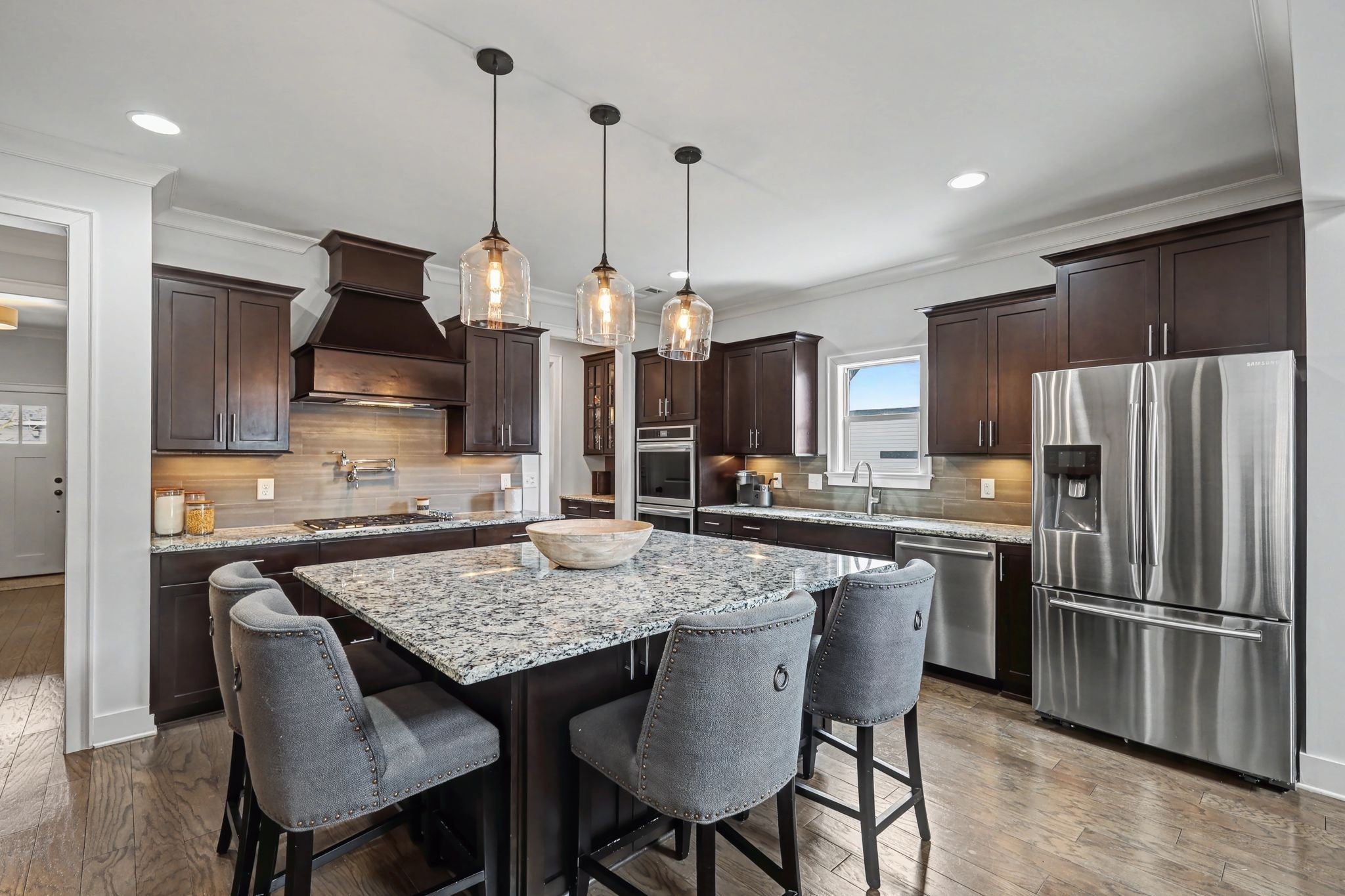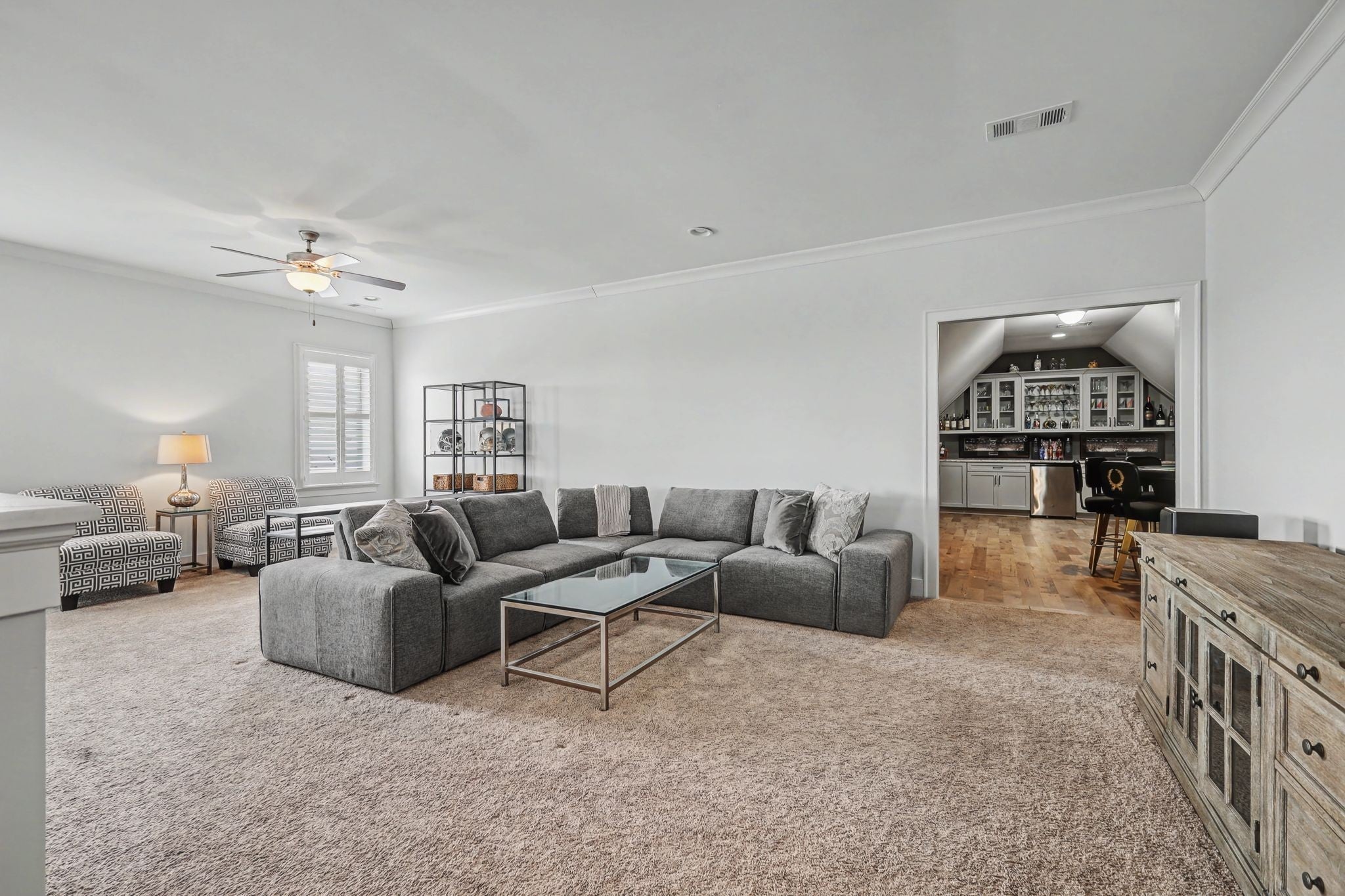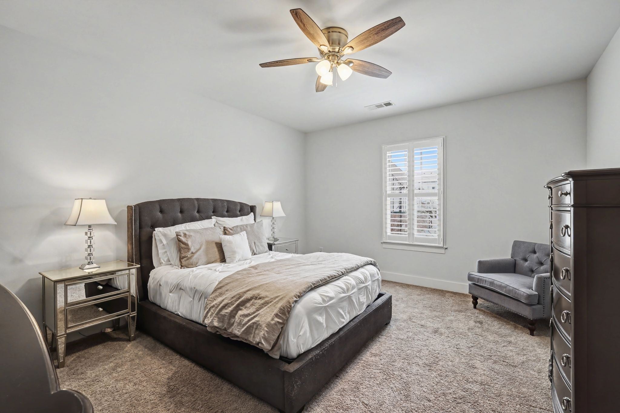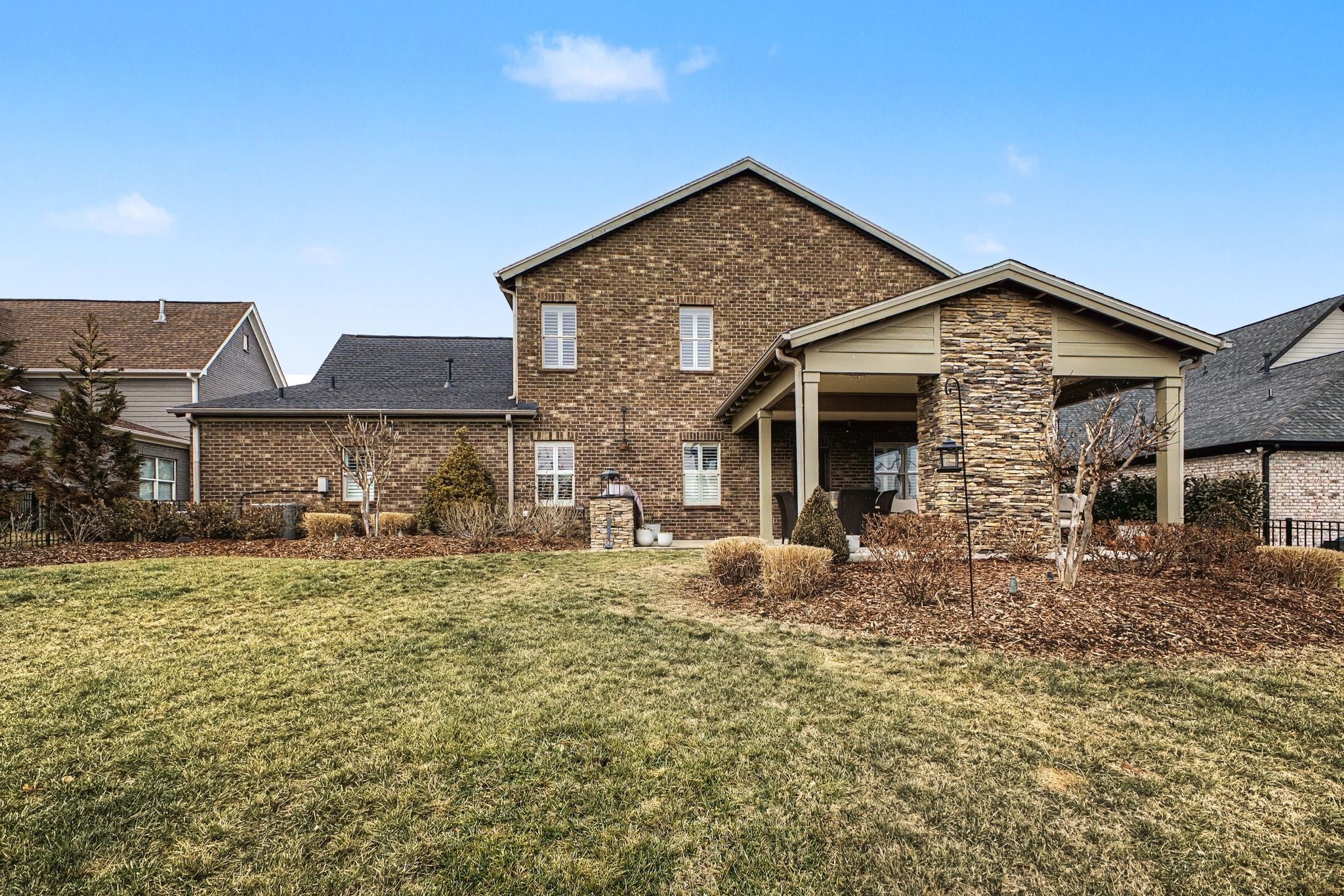 Designed for comfort and effortless living, this beautifully maintained home blends timeless style with modern upgrades, in a desirable location. Enjoy a gourmet kitchen featuring a spacious granite island, double ovens (2024), and a butler's pantry--perfect for everyday convenience. Plantation shutters add classic elegance throughout, while updates include a renovated primary bath, full yard irrigation, outdoor landscaping lighting, a finished-out game room, and a new roof and second-floor HVAC (2025). Your covered patio comes with a cozy gas stone fireplace, grilling station, plus a nicely landscaped fully fenced backyard, great for entertaining. This home offers an ideal balance of Lifestyle, Location, and Lasting Quality!