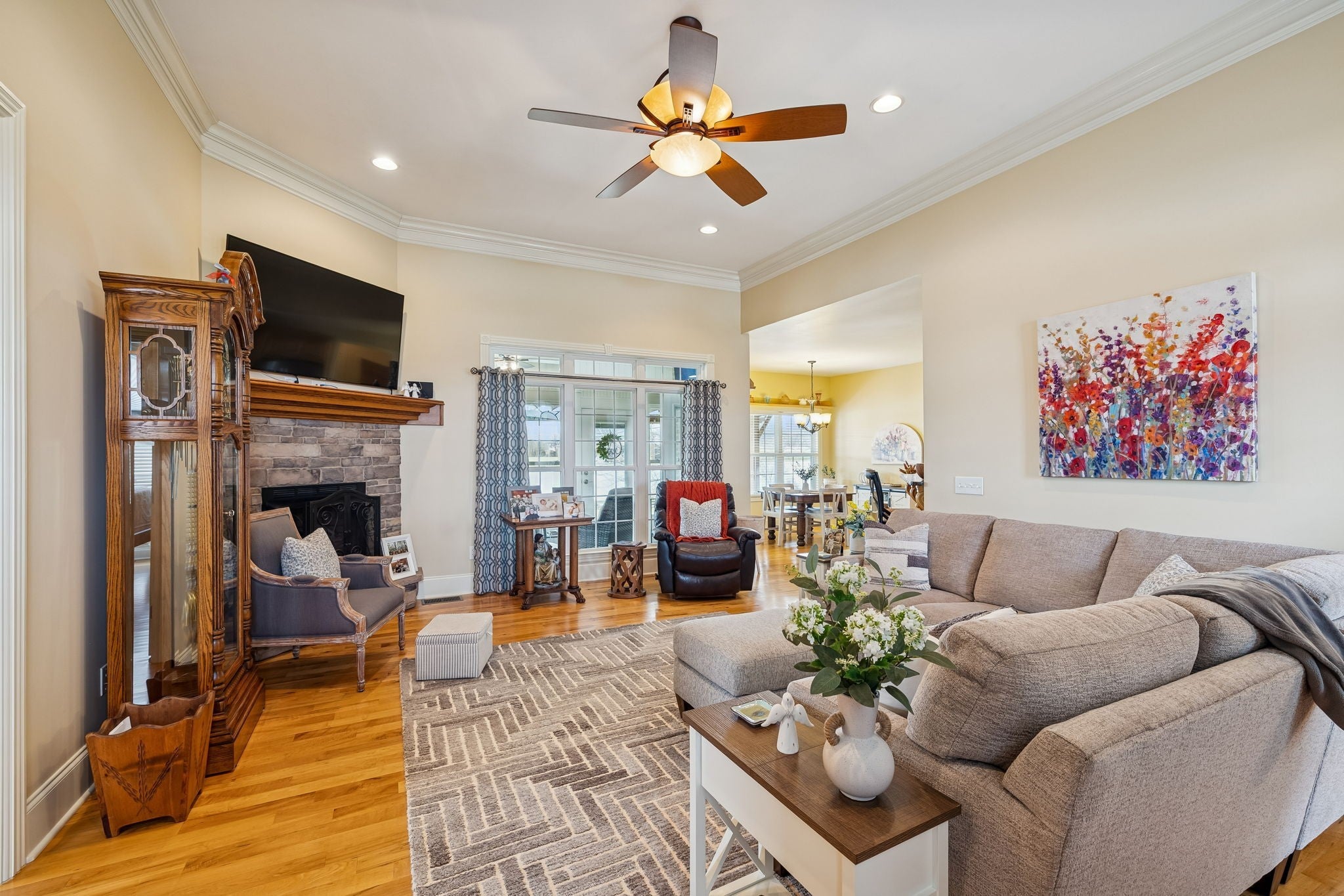 Welcome home to 192 Hills Dr in the quiet Blue Springs Ridge community of Hillsboro! This beautifully maintained brick home offers over 2,600 sq ft of thoughtfully designed living space with hardwood and tile throughout, no carpet. The spacious living room features soaring 11-foot ceilings and a cozy gas fireplace, perfect for relaxing or entertaining. The split floor plan provides privacy, while the kitchen shines with granite countertops, abundant cabinetry, Bosch appliances, a breakfast nook, and a formal dining area. A large bonus room with hardwood floors and a full bath adds flexible living space. Enjoy year-round comfort in the 15x7 sunroom (not included in sq/ft), opening to a large patio with pergola and a privacy-fenced backyard. Located in the Hillsboro Elementary district with quick access to I-24 for easy commutes to Nashville, Murfreesboro, and Chattanooga. Don’t miss this exceptional home, schedule your private showing today!