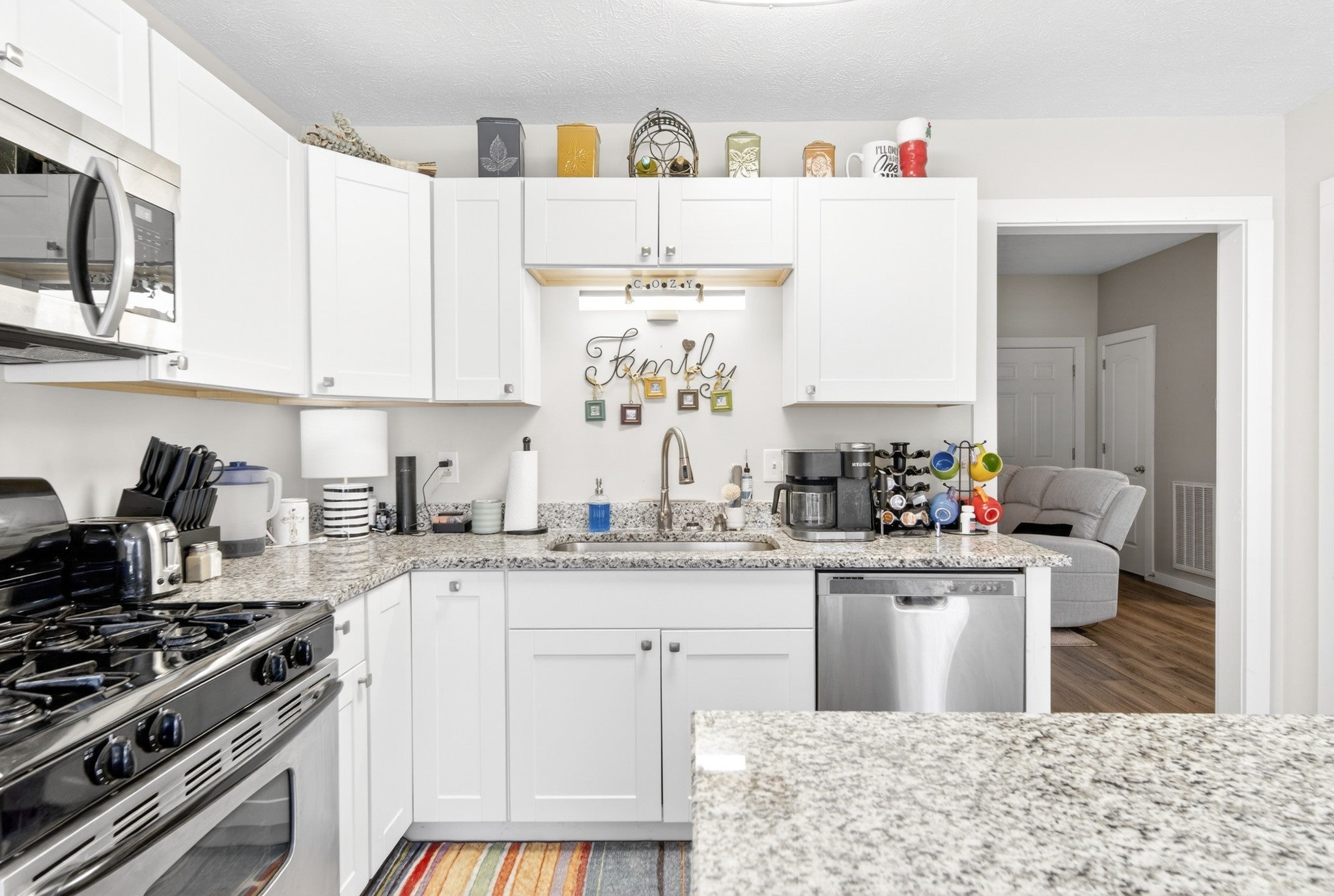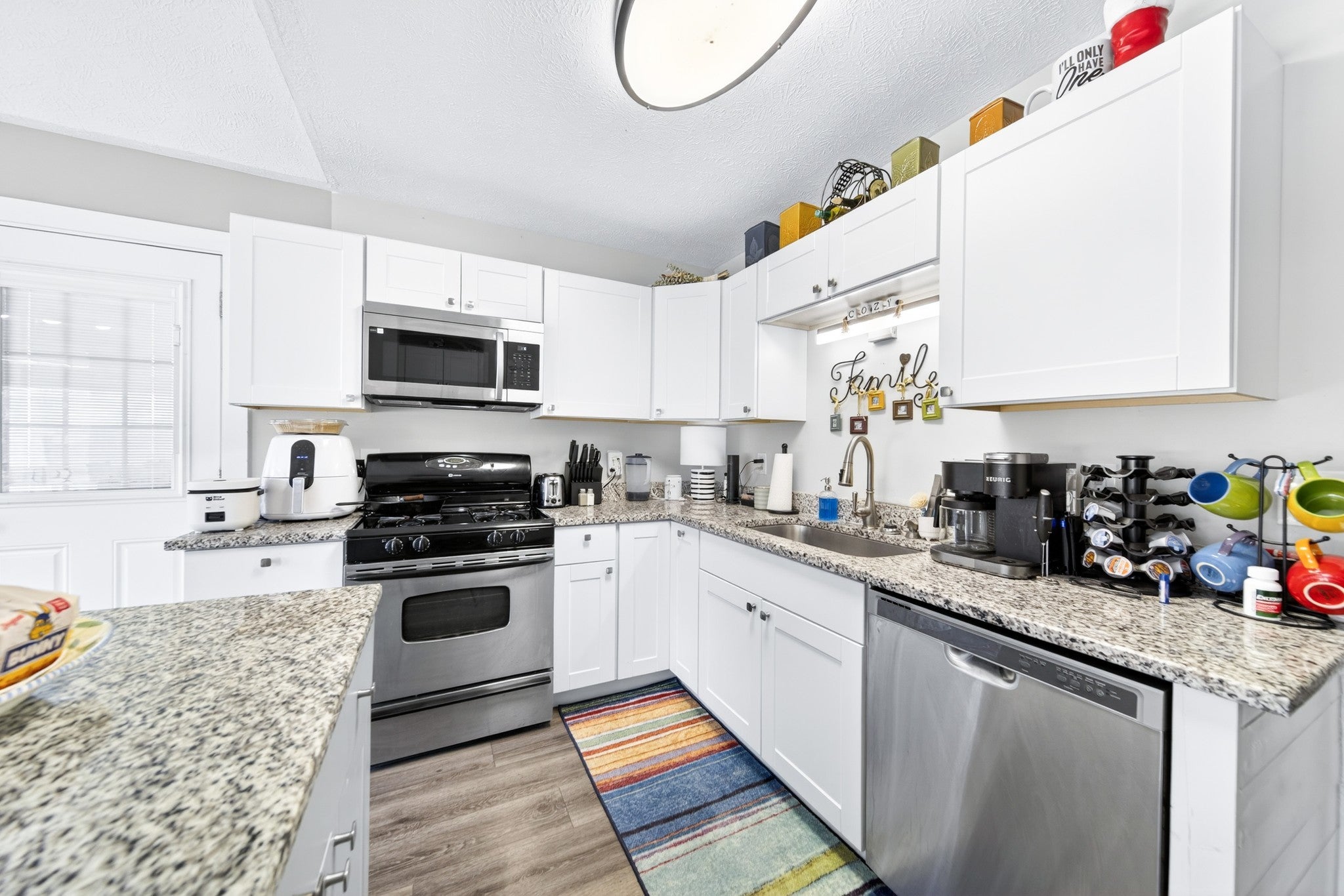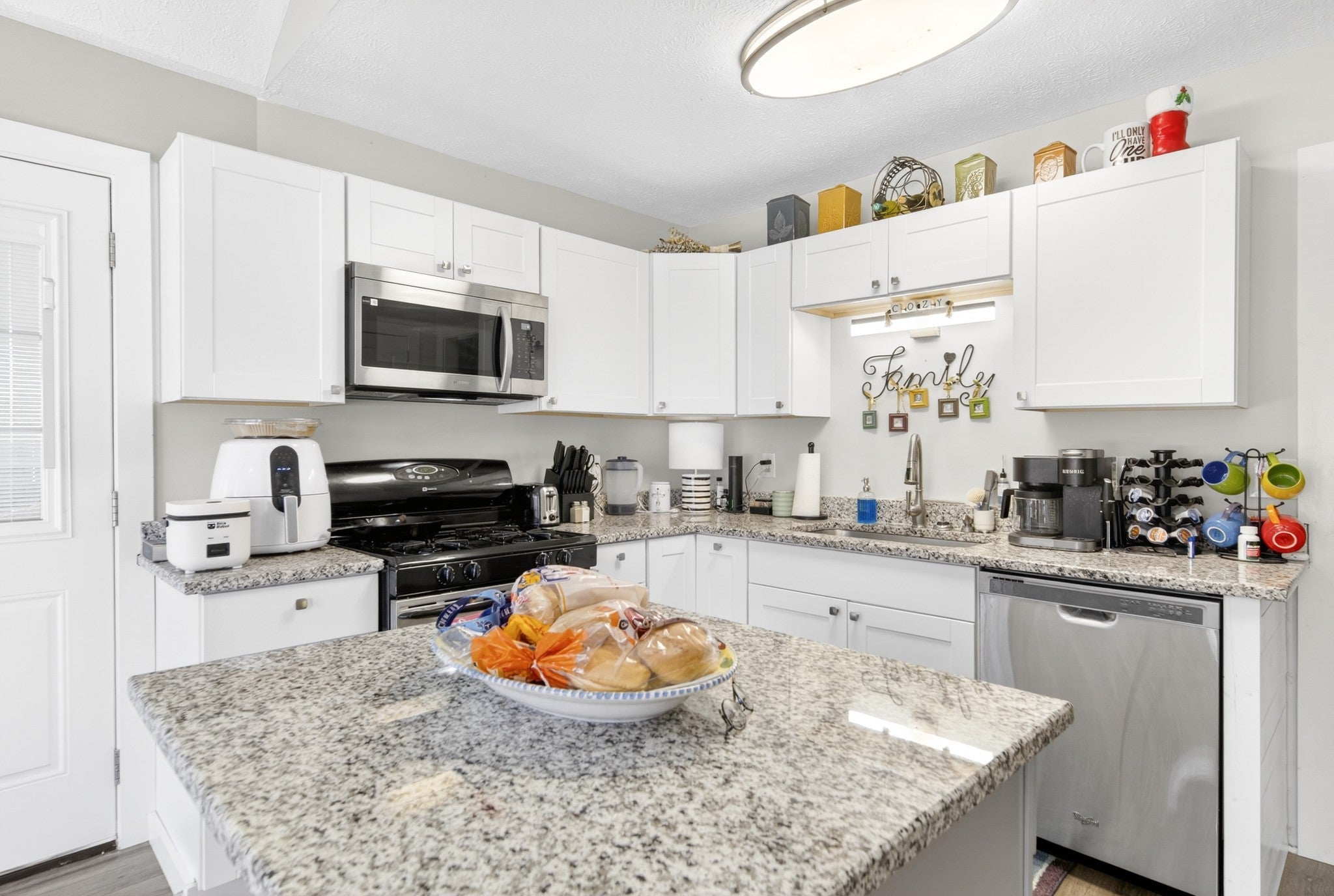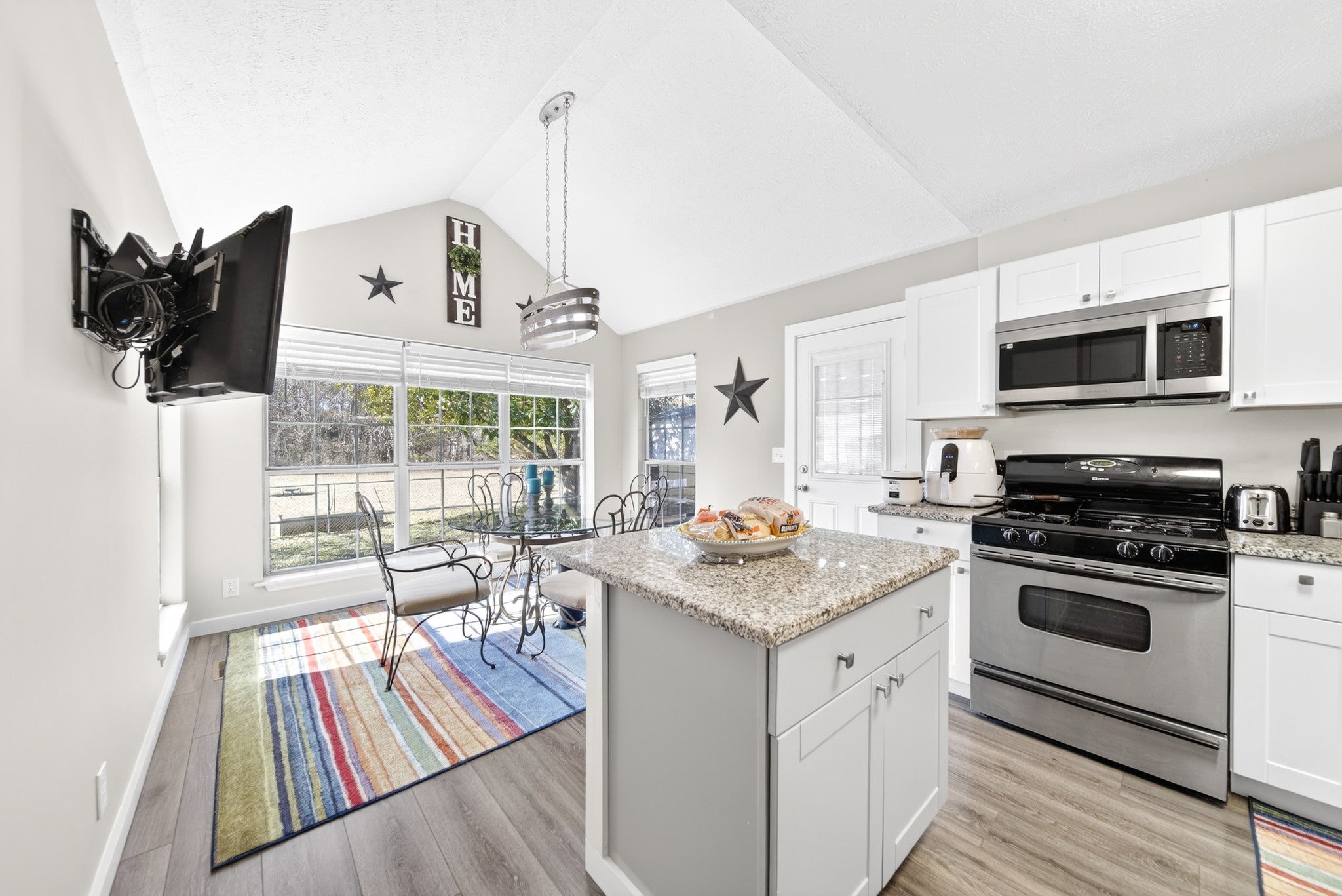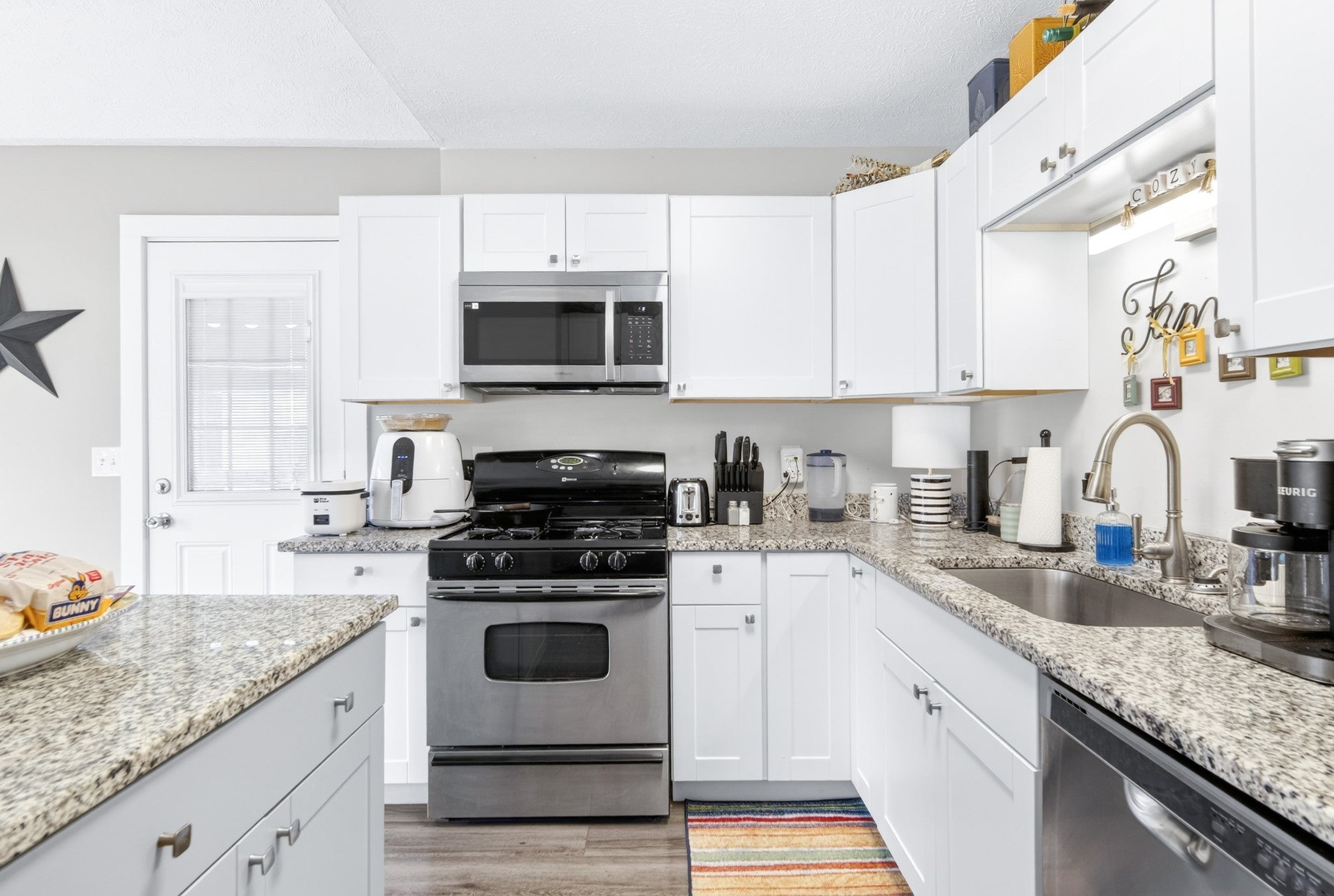 - Gas Range, Dishwasher, Microwave, Refrigerator, Stainless Steel Appliance(s)