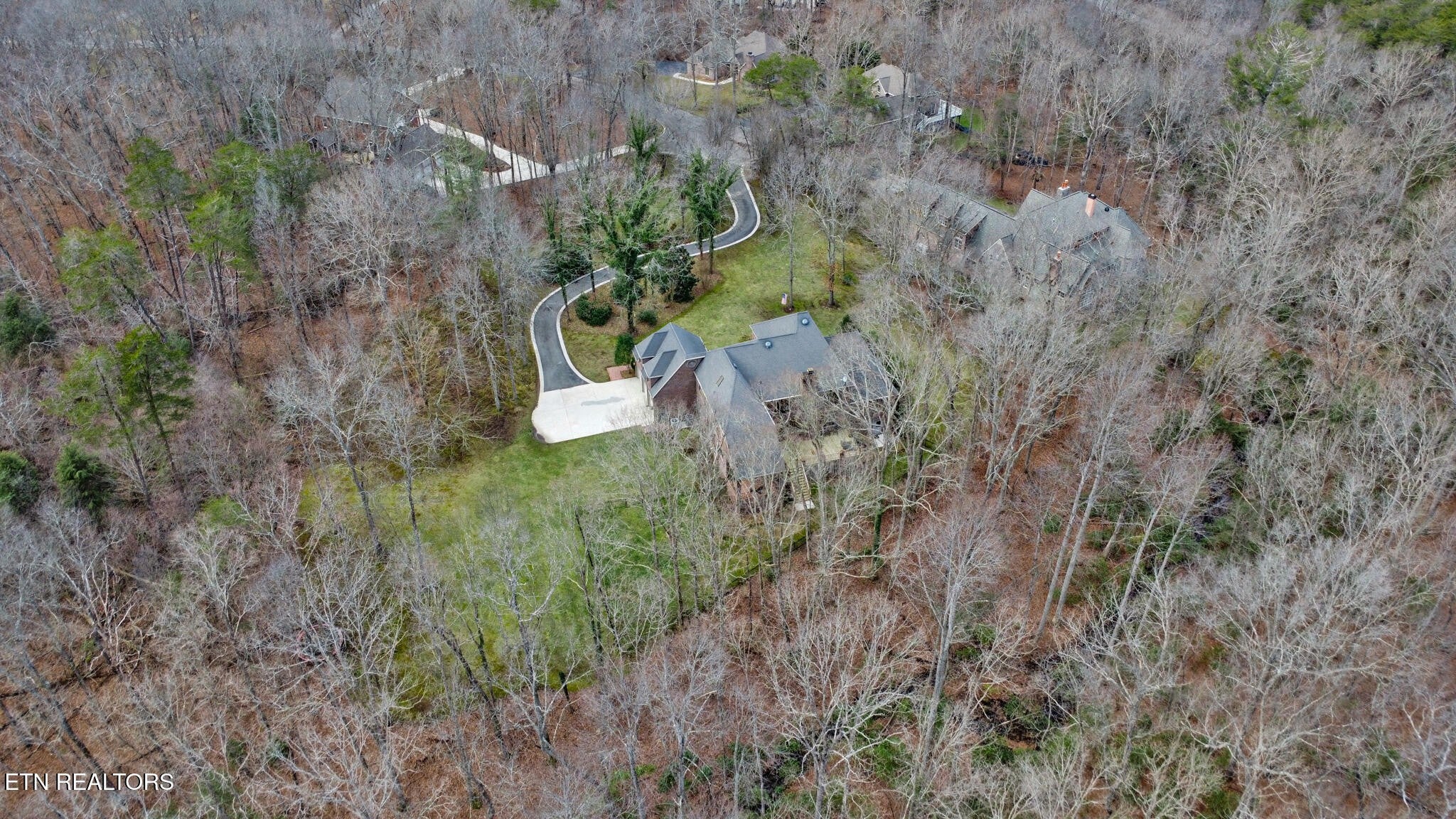 Welcome to this exceptional all-brick estate offering 5,758 square feet of living space, perfectly positioned on 2.4 private acres in a quiet cul-de-sac with no HOA and low property taxes. Designed for both elegance and functionality, the home features a main-level primary suite with 10-foot ceilings, an oversized walk-in closet, and a spa-inspired walk-in shower. The heart of the home is the impressive living room, highlighted by soaring 20-foot ceilings, a gas fireplace, and a built-in entertainment system, creating a dramatic yet inviting space for gatherings. The kitchen offers an abundance of natural light and is complete with a walk-in pantry. A separate laundry room and full bath add convenience and thoughtful design to the main level. Enjoy peaceful wooded views and the sound of the creek from the expansive rear deck, offering exceptional privacy and a true connection to nature. The three-car garage provides ample space for vehicles, storage, and hobbies. Upstairs, you'll find three additional bedrooms, two more full bathrooms, and a secondary entertainment or flex space ideal for a media room, game area, or home office. The finished walk-out basement room offers incredible versatility and doubles as a safe room or storm shelter, providing both comfort and peace of mind. Additional highlights include timeless brick construction and a location that blends luxury living with the lifestyle perks of Tennessee's Golf Capital. Lake Tansi and Fairfield Glade Golf membership lots are available with purchase. This is a rare opportunity to own a private, estate-style home offering space, quality, and freedom without HOA restrictions.