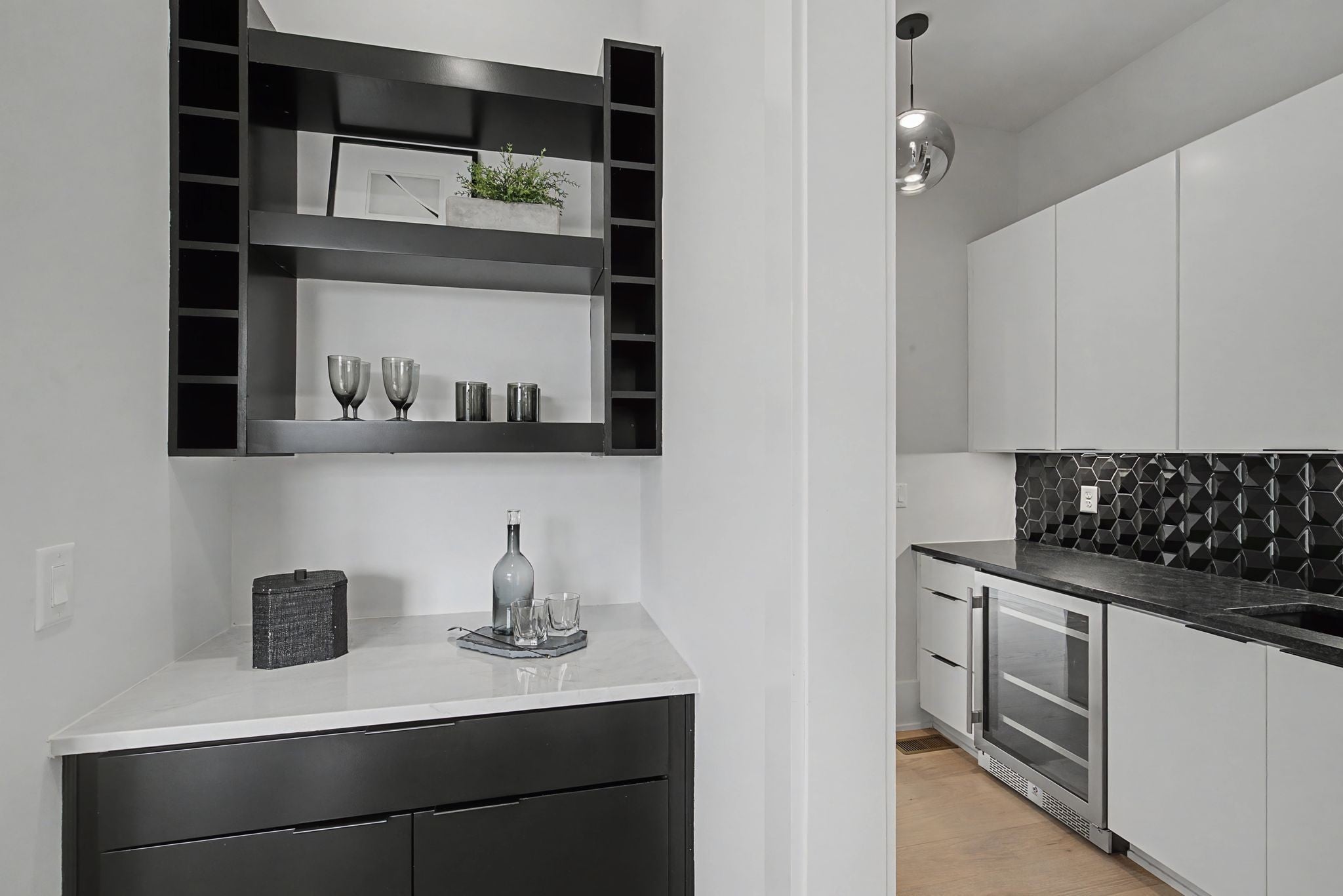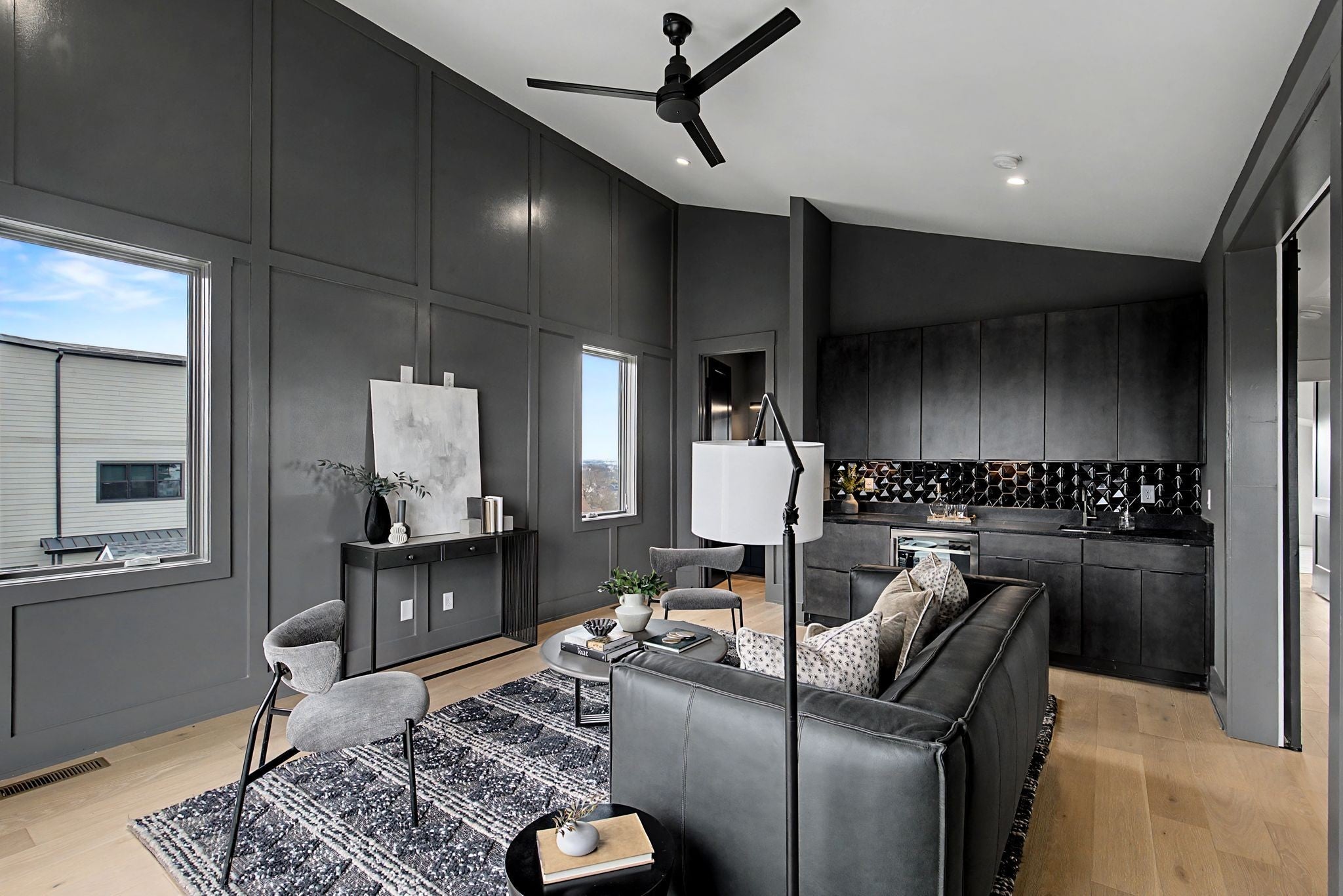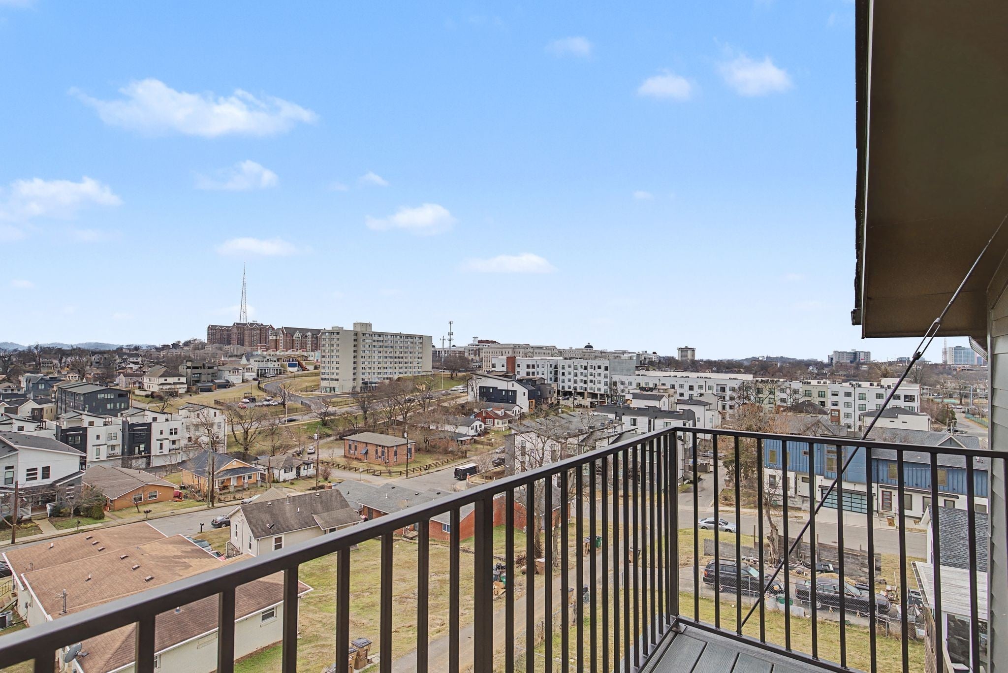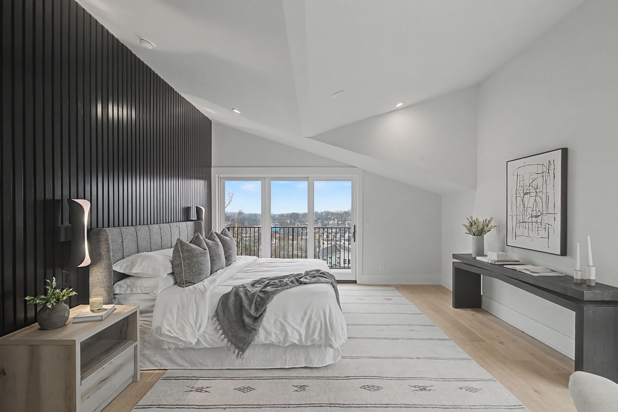 Nestled between coveted 12th South & the Gulch, this modern architectural gem blends luxury finishes w/dramatic city views and rare conveniences. A true showcase of design and function, crafted for discerning buyers seeking elevated Nashville living. Floor-to-ceiling living area windows flood the home with natural light and frame panoramic views of downtown. Gourmet kitchen highlights: granite countertops with matching granite backsplash, waterfall kitchen island with cabinets on the backside for additional storage. Commercial-size stainless steel refrigerator and a 48" range with double ovens elevate the chef’s experience. The first floor living space has 10 and 20 ft ceilings to give great depth and natural light from the windows above the main kitchen area. Expansive butler’s pantry includes a large prep area with sink and wine frig. Covered deck off the main living area extends living space outdoors for al fresco dining and entertaining. A three-stop elevator provides effortless access between floors, combining convenience with modern design. Wet bar with wine fridge in the bonus room creates a flexible entertaining hub. Bonus room features vaulted ceilings and a half bath, making it ideal for media, game nights, or guest stays. Large deck off the bonus room with panoramic downtown views for dramatic sunset moments. Two oversized primary closets with washer/dryer hookups, plus a private deck off the primary suite. Primary bath offers a soaking tub and a rain-head shower feature. Wood plank hardwoods extend throughout the home, adding warmth and continuity. A catwalk on the second floor overlooks the kitchen area, amplifying the sense of space and design cohesion. Designed for ease, luxury, and dramatic city living, this home sits in the heart of Nashville’s most desirable corridor, where lifestyle, dining and culture converge. This is more than a home: it's a statement of modern sophistication with all the conveniences that today's buyers expect.