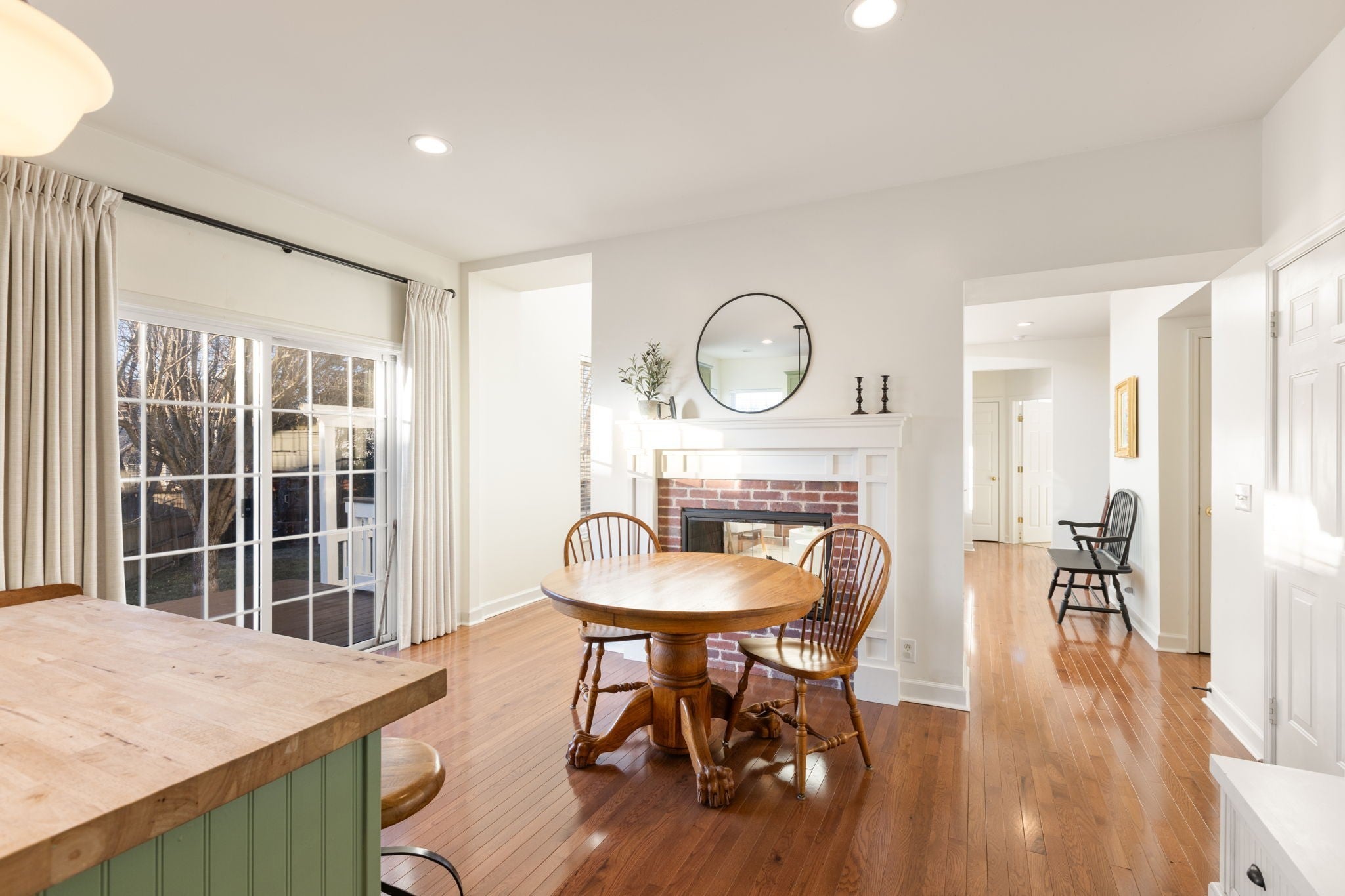 Welcome to this beautifully maintained and updated home located on a quiet cul-de-sac in the desirable Sullivan Farms community. This classic two-story residence offers 4 bedrooms and 3 full bathrooms with a thoughtfully designed floor plan ideal for everyday living and entertaining. The inviting interior features new hardwood flooring on the main level, new oak stair treads (over $18k in flooring), elegant crown molding, and abundant natural light. The updated kitchen showcases marble countertops, painted cabinetry, tiled backsplash, and stainless appliances. The family room is anchored by a beautifully updated stone double sided gas fireplace, creating a warm and welcoming space to gather. The spacious primary suite includes a renovated bathroom with marble tile shower, soaking tub and large double vanity. Outdoor living is enhanced by a large rear deck overlooking the backyard—perfect for grilling, relaxing, or entertaining. Additional highlights include a newer roof, upstairs HVAC replaced in 2018, and an oversized two-car garage with extra storage and attic access. Sullivan Farms is a well-established neighborhood known for its peaceful setting, mature landscaping, pool, club house and sidewalks ideal for walking and biking. The cul-de-sac location offers added privacy while remaining just minutes from Downtown Franklin shopping and dining, Williamson County parks, and top-rated Williamson County schools. A wonderful opportunity to own a move-in-ready home in one of Franklin’s most sought-after areas.