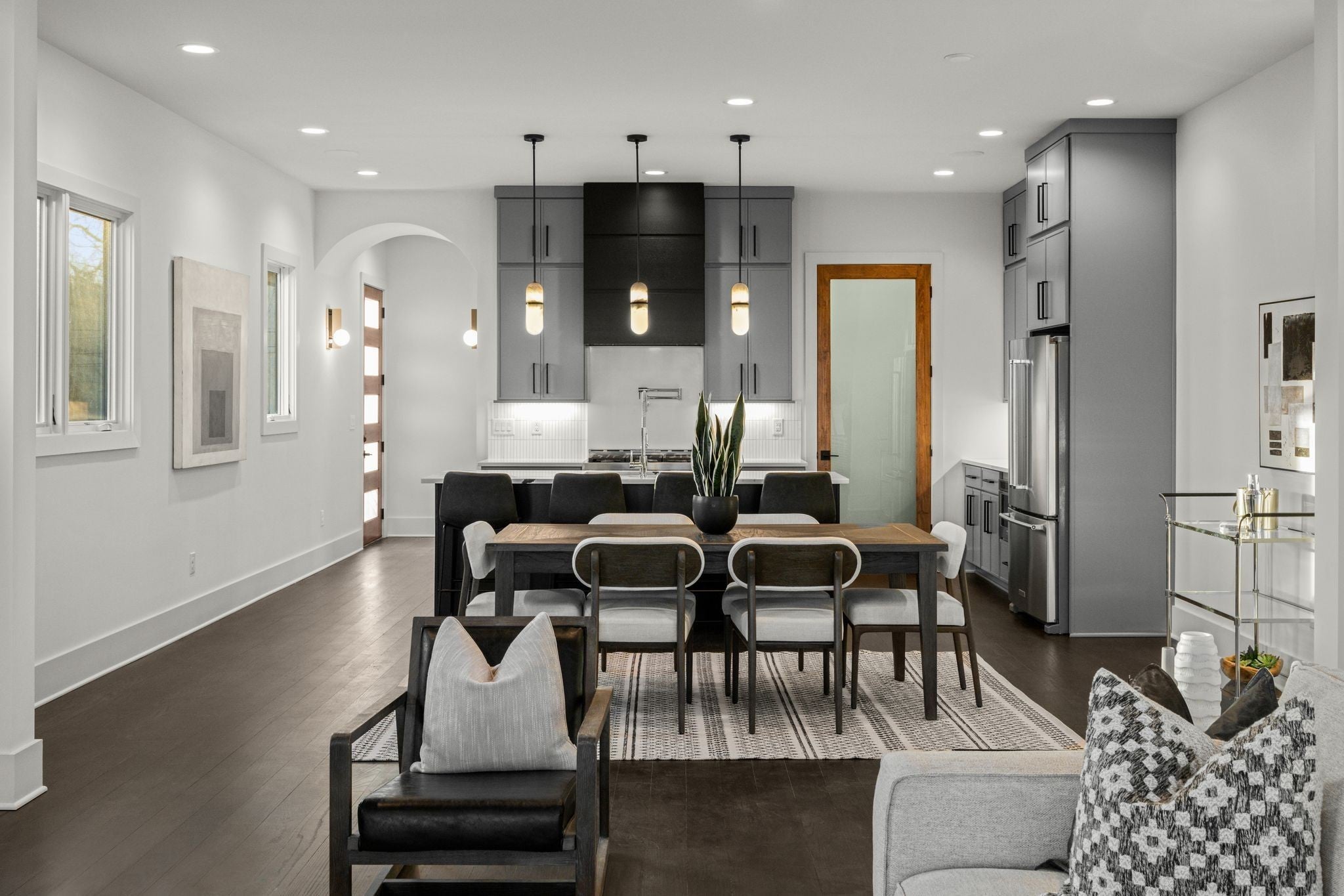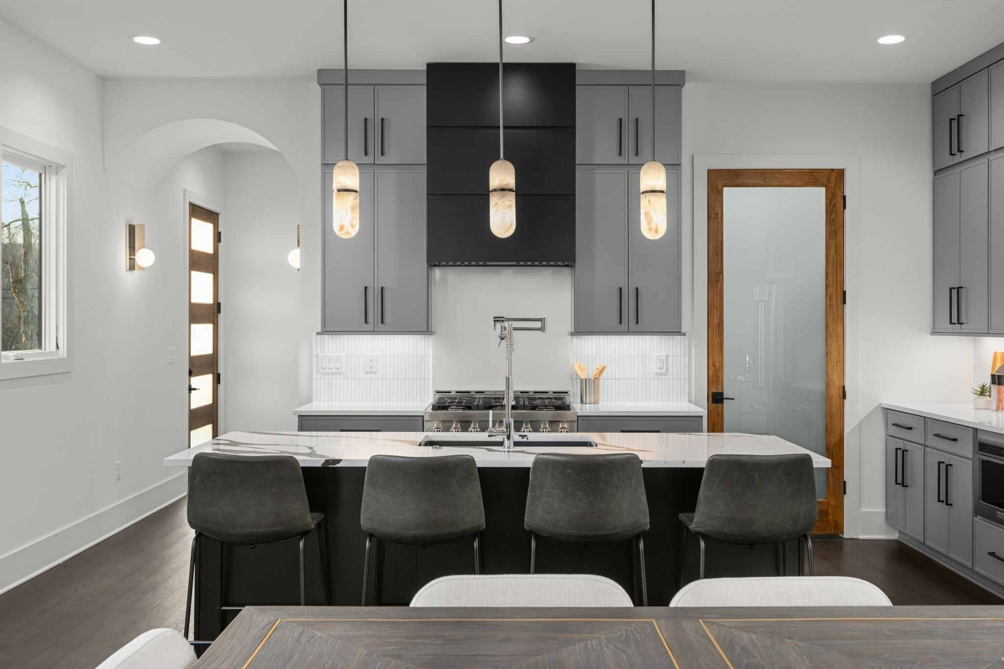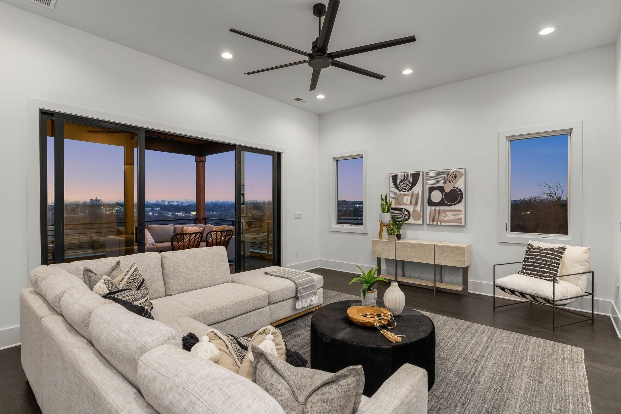Perfectly positioned just minutes from Downtown, Germantown, The Nations, East Nashville, Oracle, and the future Nashville Riverside development, this riverfront residence offers a rare blend of privacy and accessibility in one of Nashville’s fastest-growing corridors. Inside, the home unfolds across multiple levels, each thoughtfully designed to maximize flow, livability, and sweeping skyline and river views. Expansive walls of glass bring downtown Nashville into focus and flood the interiors with natural light, creating a seamless connection between the city and the river below. The home features an elevator, designer finishes throughout, and four private balconies - each positioned to capture breathtaking views. The kitchen anchors the main living space with top-of-the-line appliances, a generous island, walk-in pantry, custom cabinetry, and statement lighting. An open-concept layout enhances both everyday living and effortless entertaining with indoor-outdoor flow. The primary suite is a private retreat with its own balcony, spa-inspired bath, oversized shower, double vanities, and a large walk-in closet. Secondary bedrooms each include en-suite baths, while the fourth bedroom offers flexibility for a home office, guest suite, or in-law quarters. The upper level is completed by a wet bar opening into a media or bonus room, leading out to an oversized balcony with stunning skyline views. Additional highlights include a gated driveway, private fenced backyard, and whole-home audio wiring.