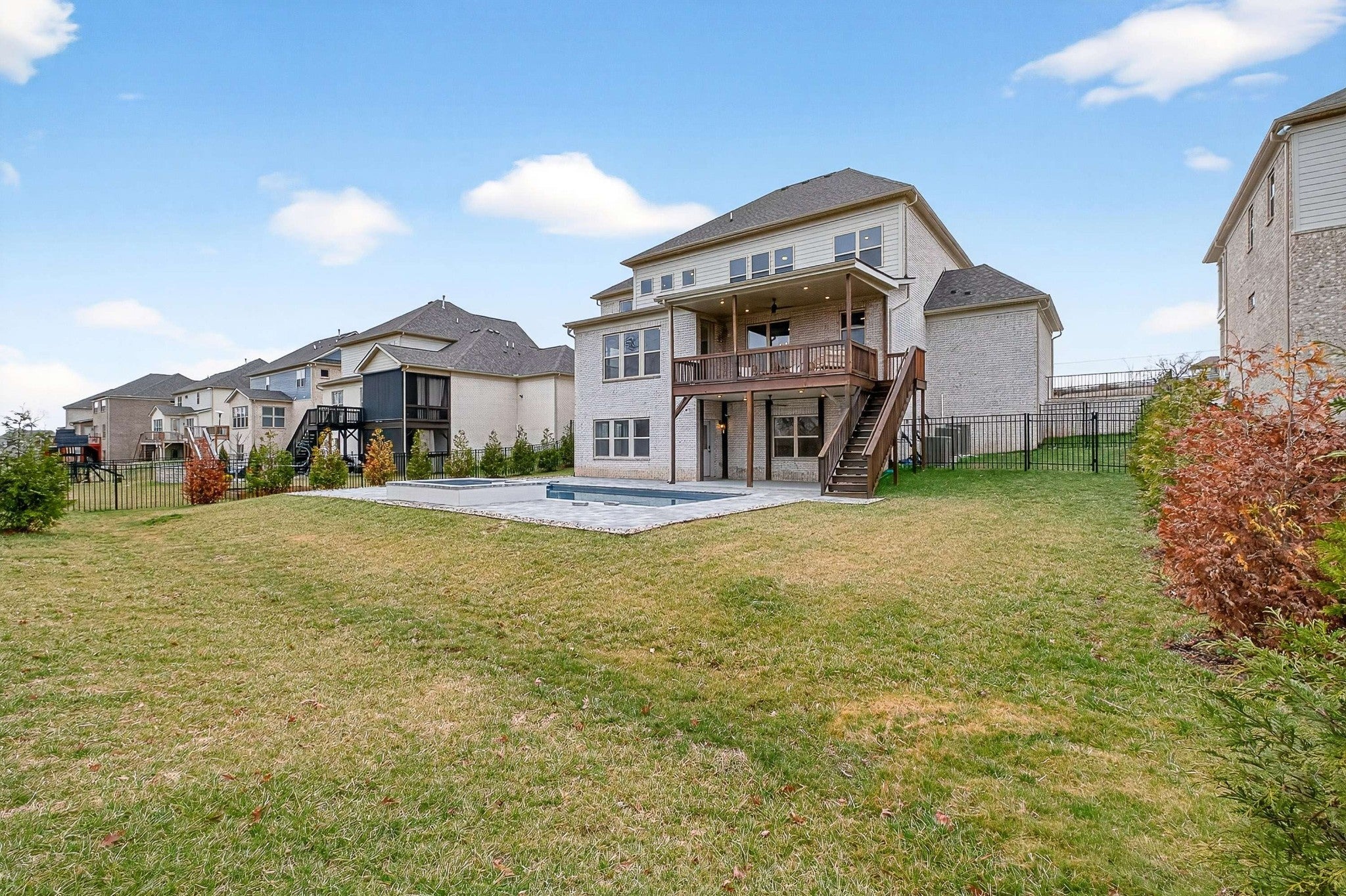 Open Sunday 3/8 2:00-4:00pm. 3544 Barnsley Lane offers exceptional space and comfort for the entire family to relax and enjoy. Highlights of the home include a fully finished, apartment-style terrace level, a saltwater pool and spa, award-winning Williamson County schools, and the privacy of cul-de-sac living on a tree-lined lot backing to common space. The thoughtfully designed layout is both practical and flexible, easily adapting to your family’s needs. The main level features a private office with French doors and custom built-ins, a spacious formal dining room, a guest suite with ensuite bath, powder room, and an oversized laundry room with ample storage. The open living area centers around a gas fireplace and flows seamlessly into the informal dining/breakfast space, secondary home office, pantry, and sunroom, with direct access to covered outdoor living. Upstairs features a spacious primary retreat with multiple closets, a spa-inspired bath, and sweeping views of the rolling hills. The level also includes three additional bedrooms, two full baths, and a versatile upstairs living or recreation area. The terrace level offers exceptional flexibility for independent living — ideal for extended family, an AuPair suite, a home business, or simply extra room for a growing household. This space includes a full kitchen with dining area, second laundry room, exercise or hobby room, comfortable living area, a bedroom with oversized closets, a full bathroom, and a lower-level sunroom that opens to covered outdoor living with pool views. Outside, the residence provides multiple outdoor living and entertaining spaces - centered around the brand new salt-water pool, plus spa, paver patio pool deck, and fenced in backyard. Additional exterior features includes smart whole yard irrigation system, front landscape lighting, and security cameras.