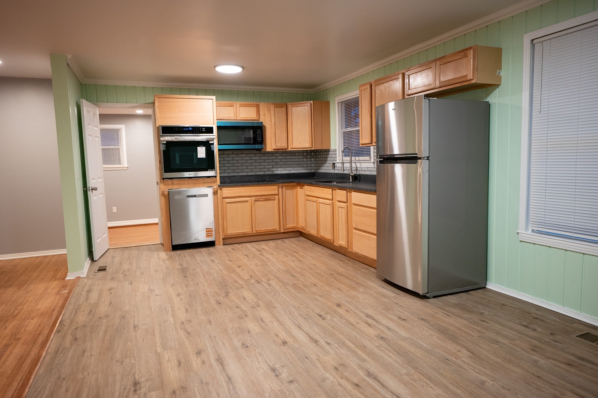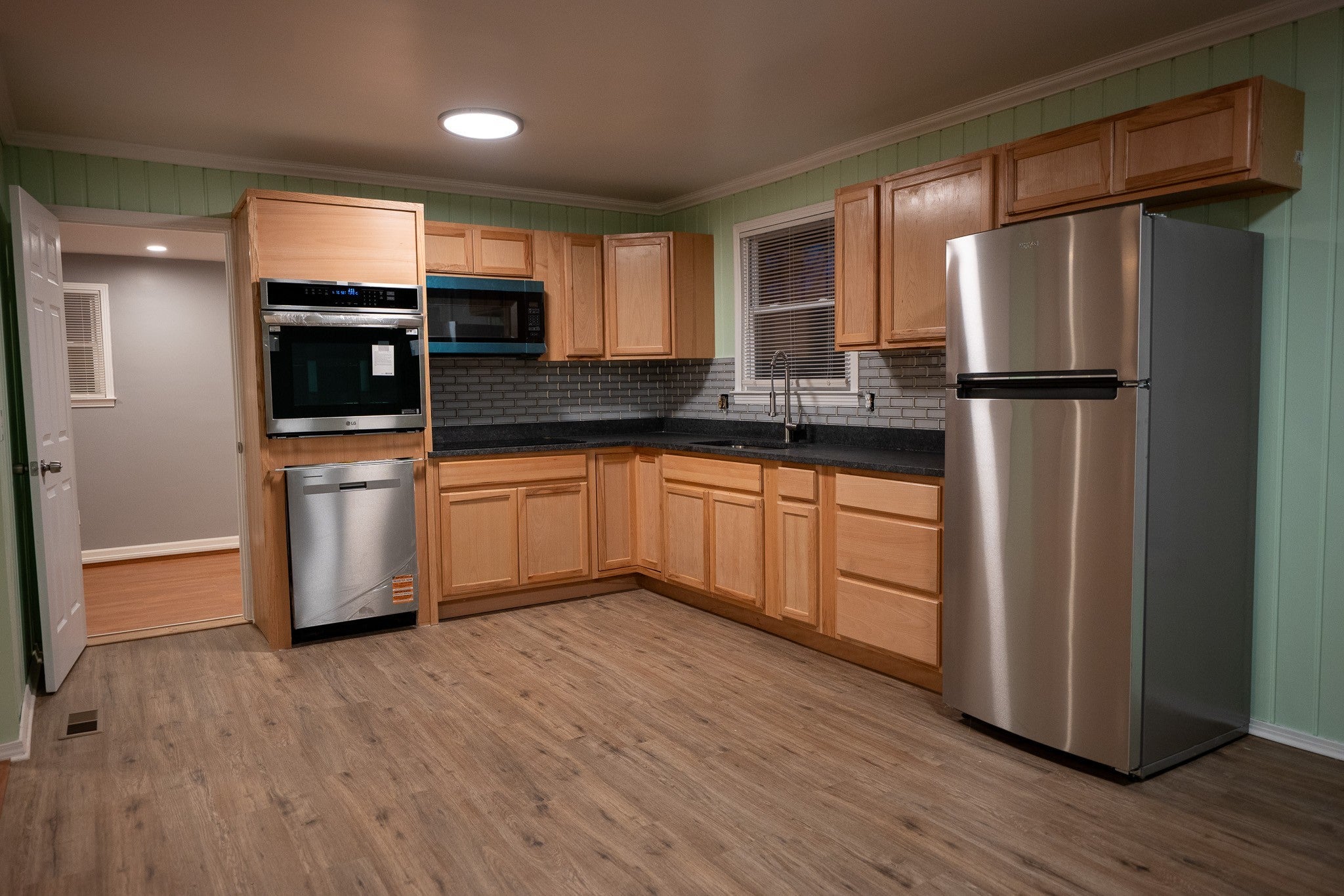- Built-In Electric Oven, Cooktop, Dishwasher, Microwave, Refrigerator
