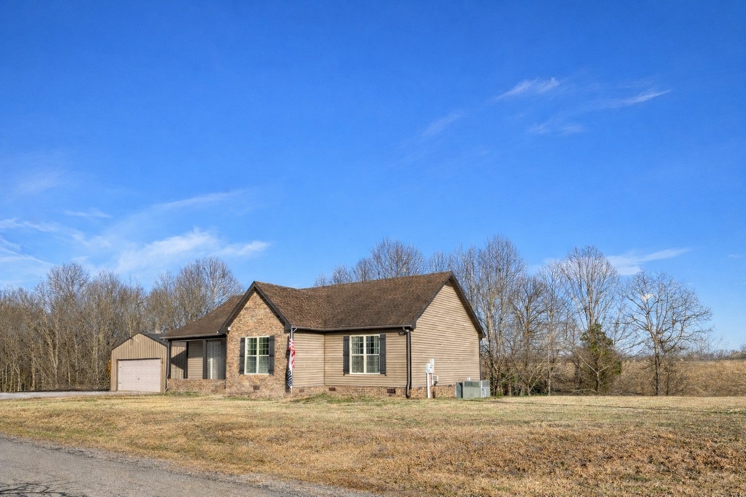 With almost 2 acres, privacy is no problem! This well-maintained 3 bedroom, 2 bath home offers 1,512 sq ft of open-concept living with a layout that feels both functional and inviting. The heart of the home features a spacious kitchen with a large island, perfect for gathering, entertaining, or everyday meals, all flowing seamlessly into the living and dining areas. Generously sized bedrooms include extra-large closets for plenty of storage, while the primary suite offers a double vanity and private bath for added convenience. Step outside and enjoy your own backyard retreat — the pool is thoughtfully positioned for privacy, creating the perfect spot to relax or host summer get-togethers. Need space for projects or storage? The 24x24 detached garage comes complete with electric and a durable epoxy floor, ideal for hobbies, vehicles, or a workshop. If you’re looking for space, functionality, and outdoor enjoyment in a peaceful setting, this one checks all the boxes!
